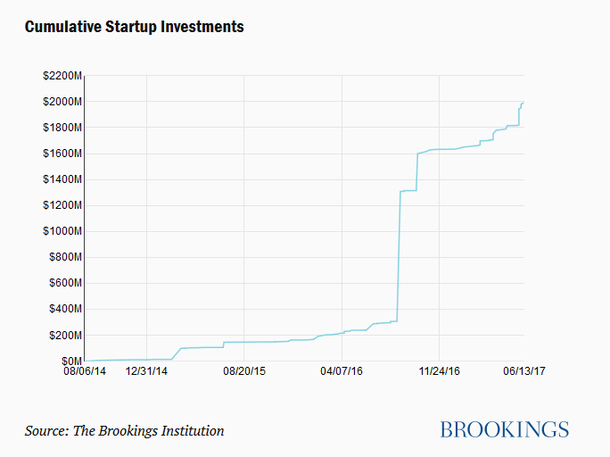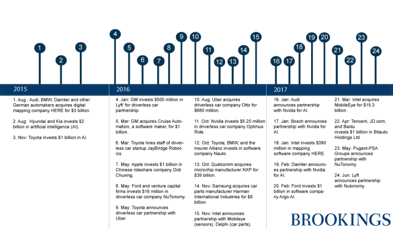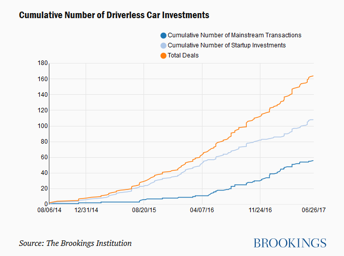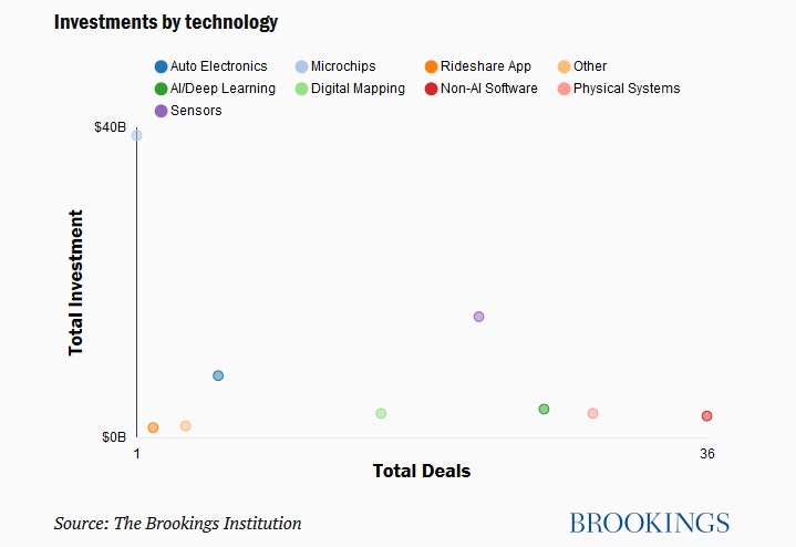 布鲁金斯学会最近总结了近几年自动驾驶汽车领域的投资交易。