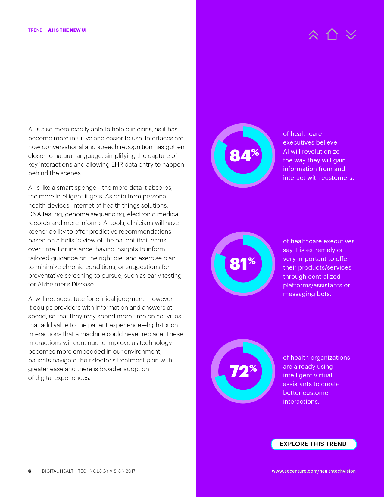 AI的重要性正在不断凸显。调查发现,84%的医疗主管认为,AI将彻底改变获取信息和与消费者互动的方式,而72%的健康机构已经开始使用虚拟助手与消费者进行更好的互动。