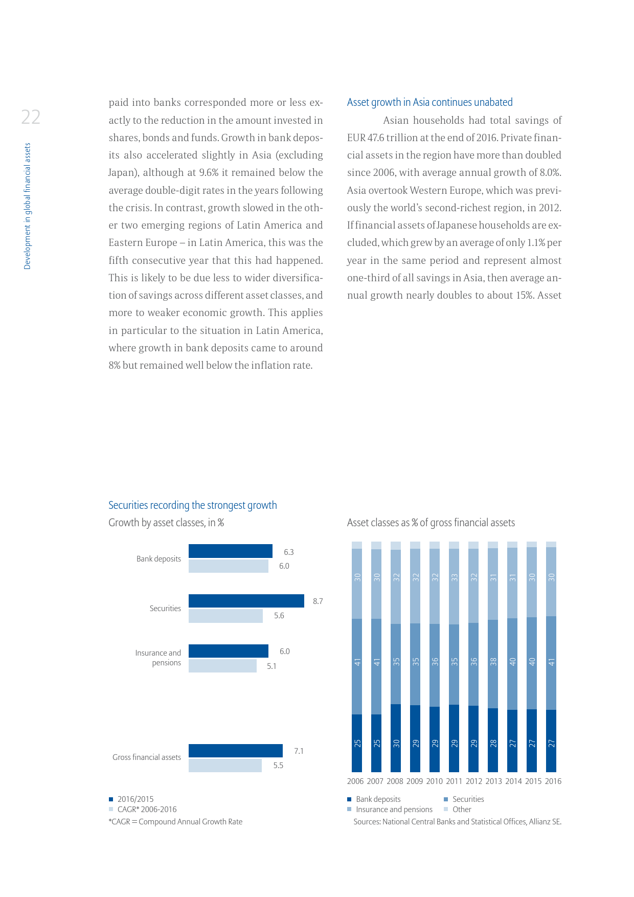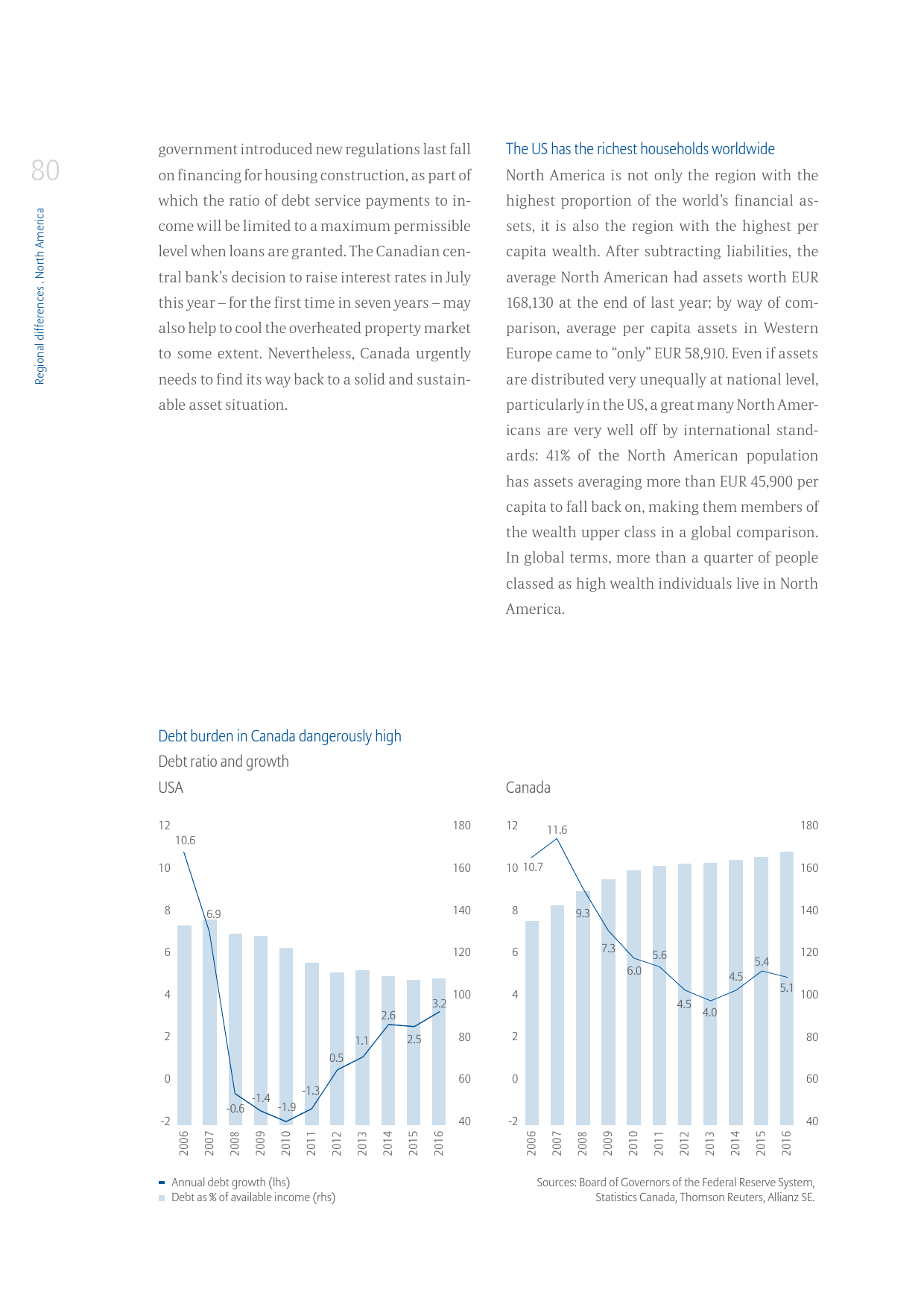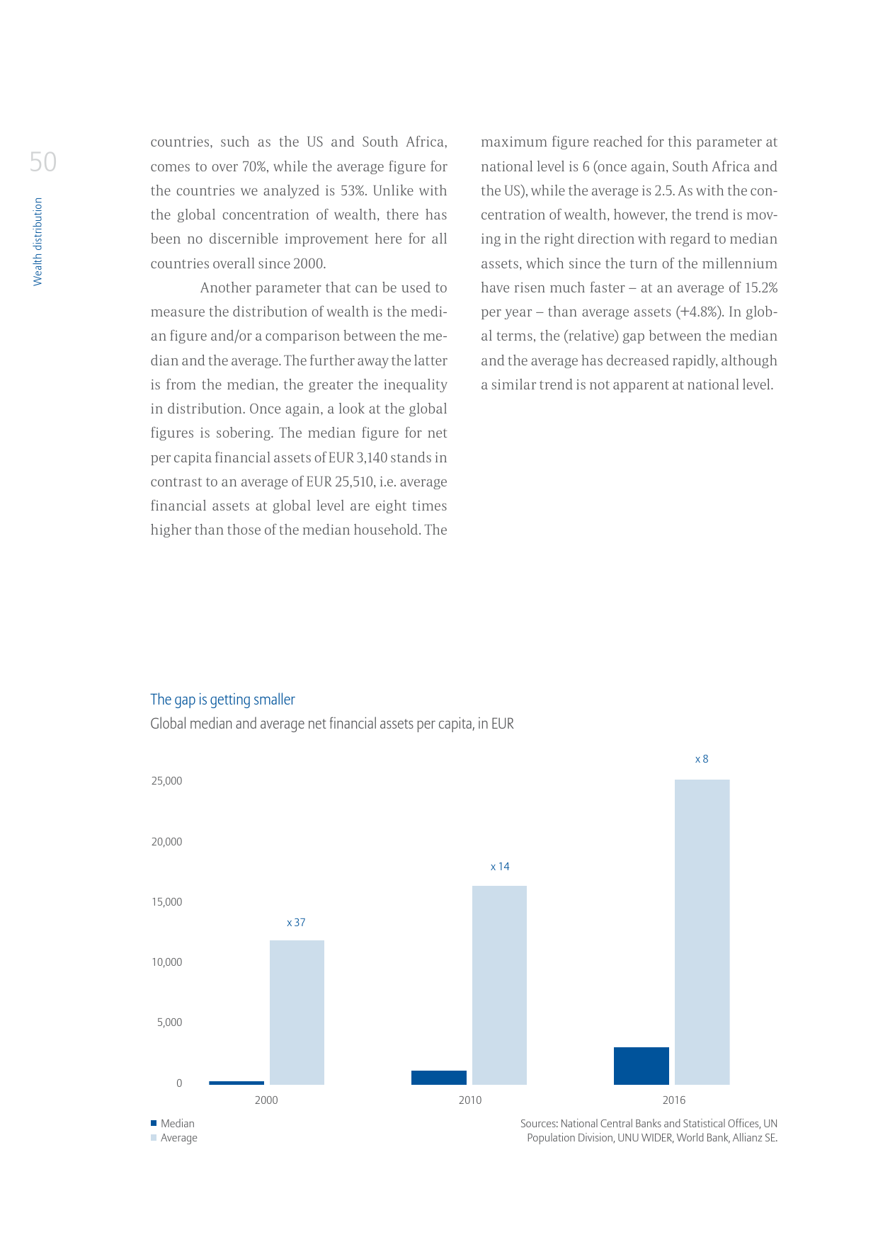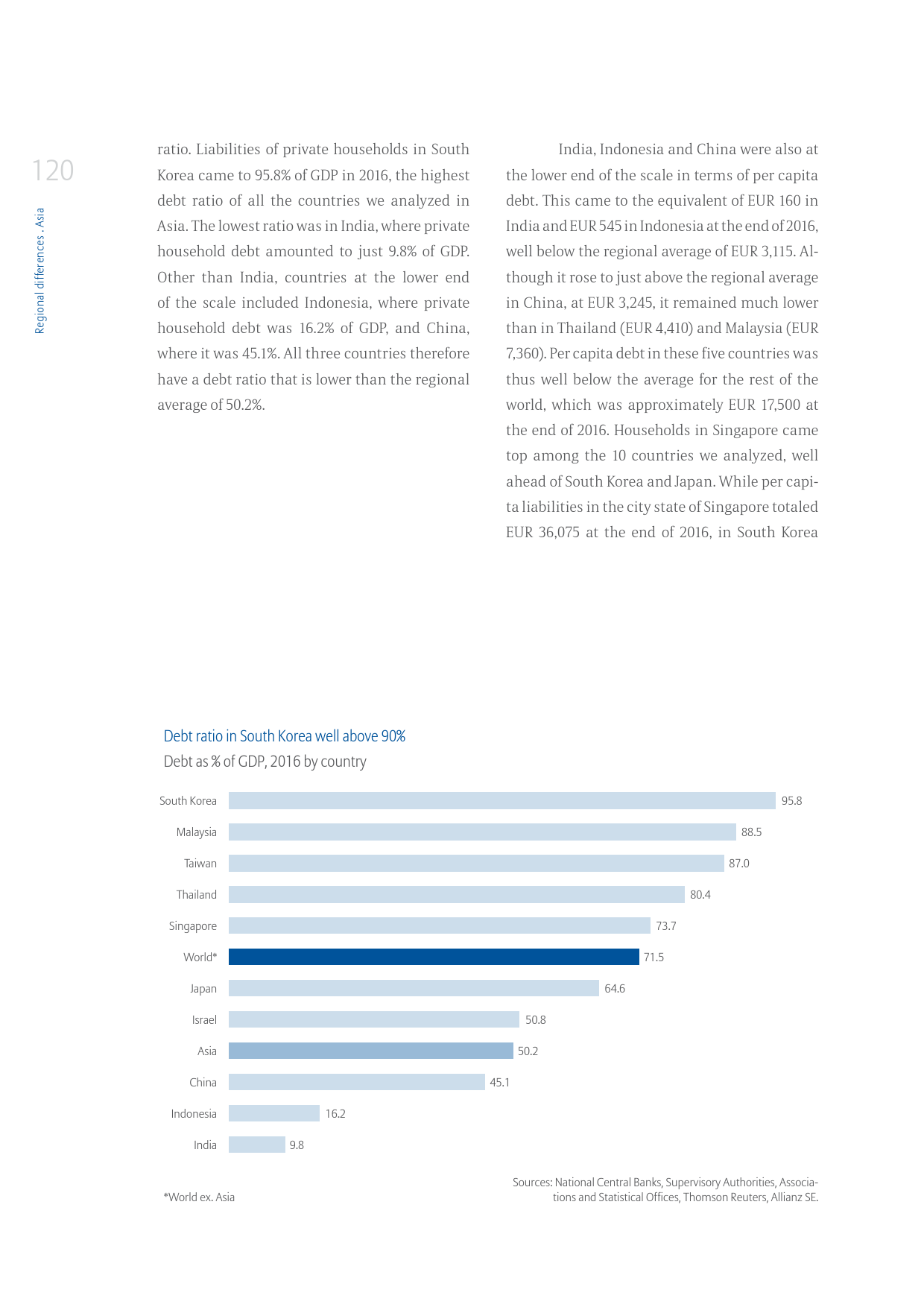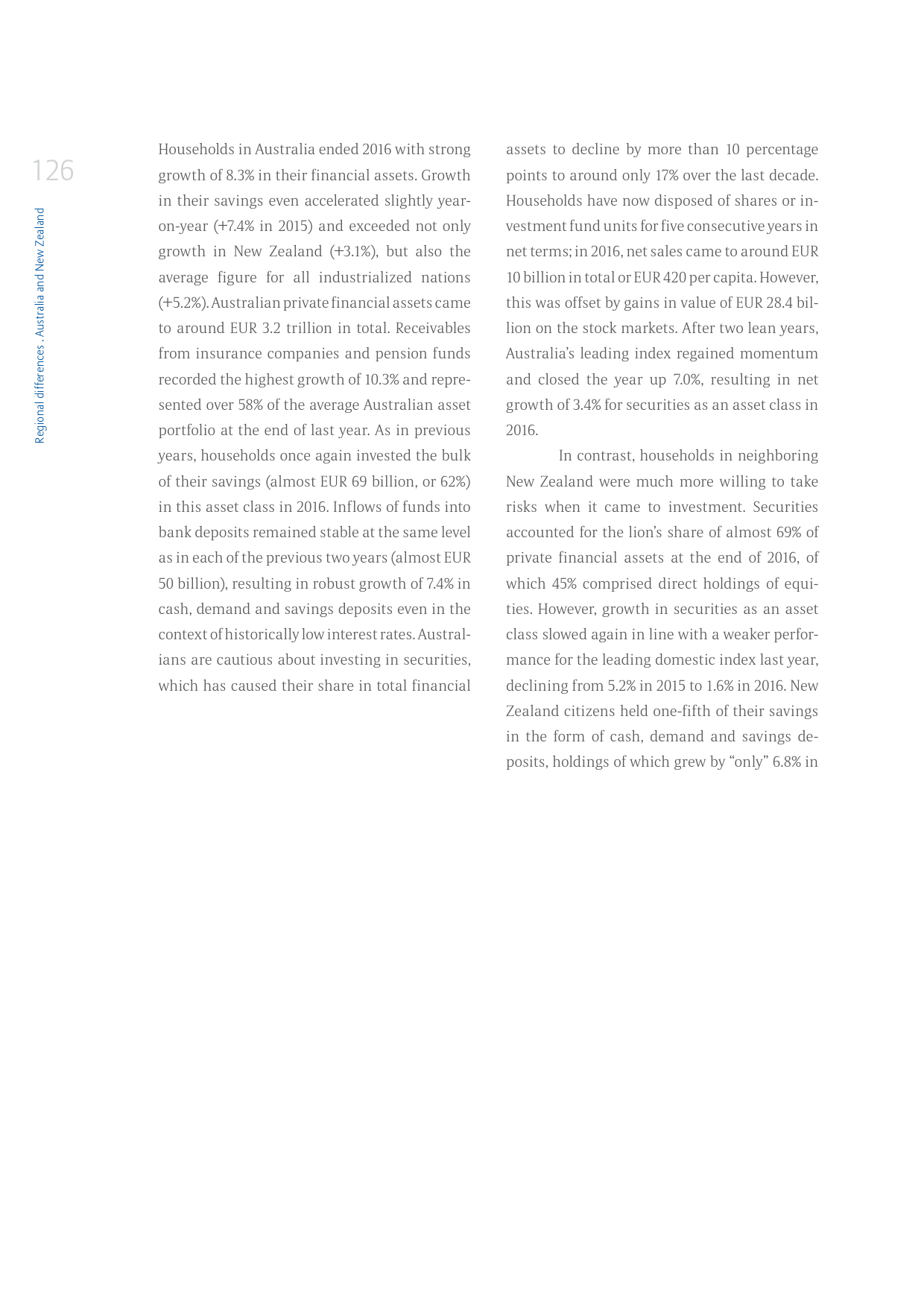 2016年,中国大陆人均金融资产净值为12765欧元,全球排名从2000年的第40位上升至第27位。日本、台湾和新加坡均跻身前20,其中台湾为92360欧元,全球排名第5位。排名第一的是美国,人均金融资产净值为177210欧元。之后为瑞士(175720欧元)、日本(96890欧元)、瑞典(95050欧元)。德国排名第18位(48760欧元)。