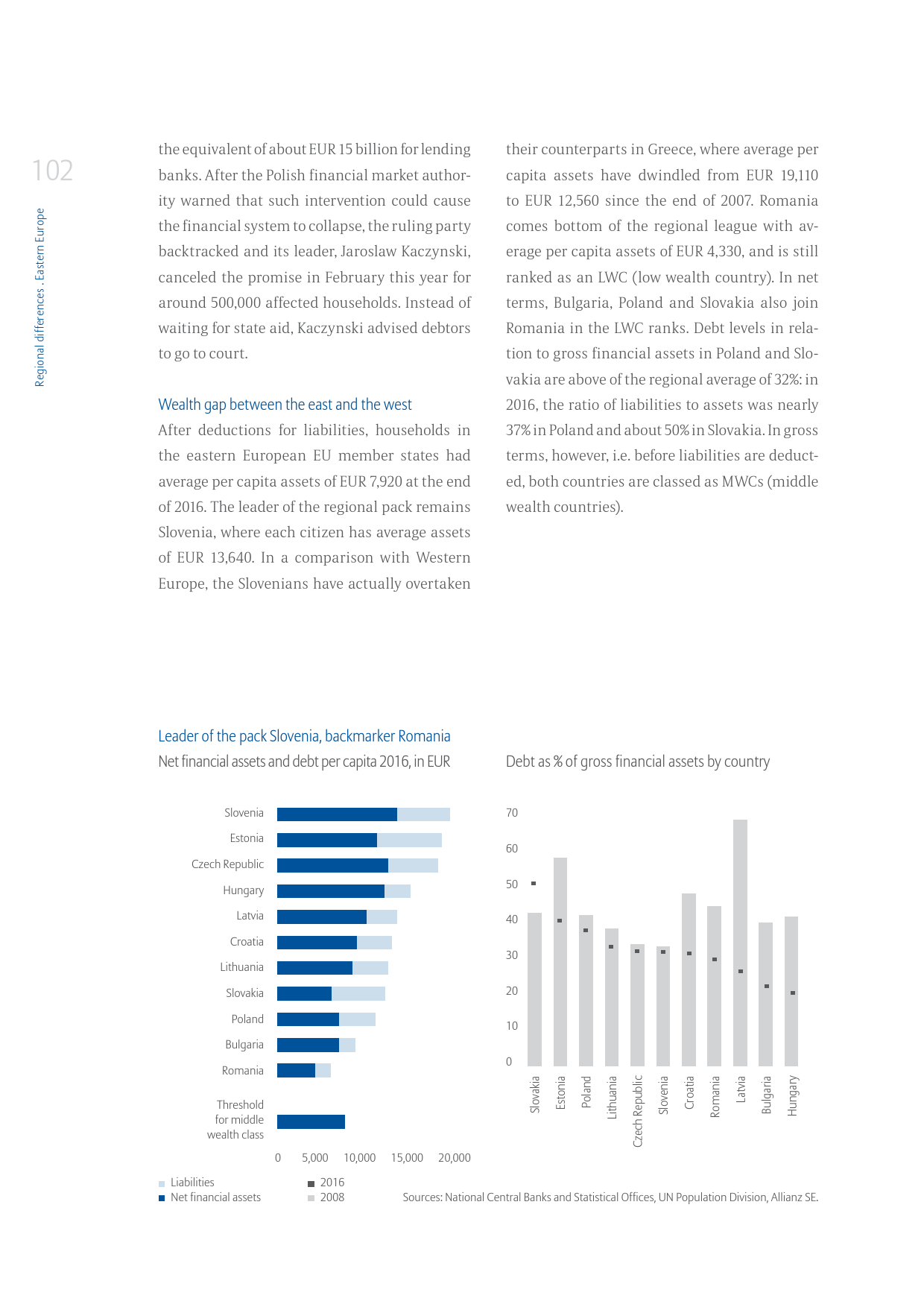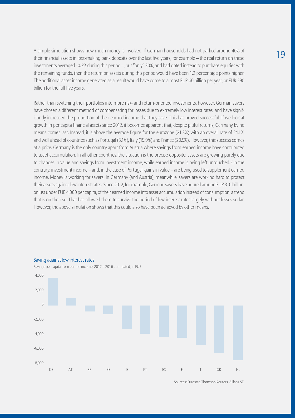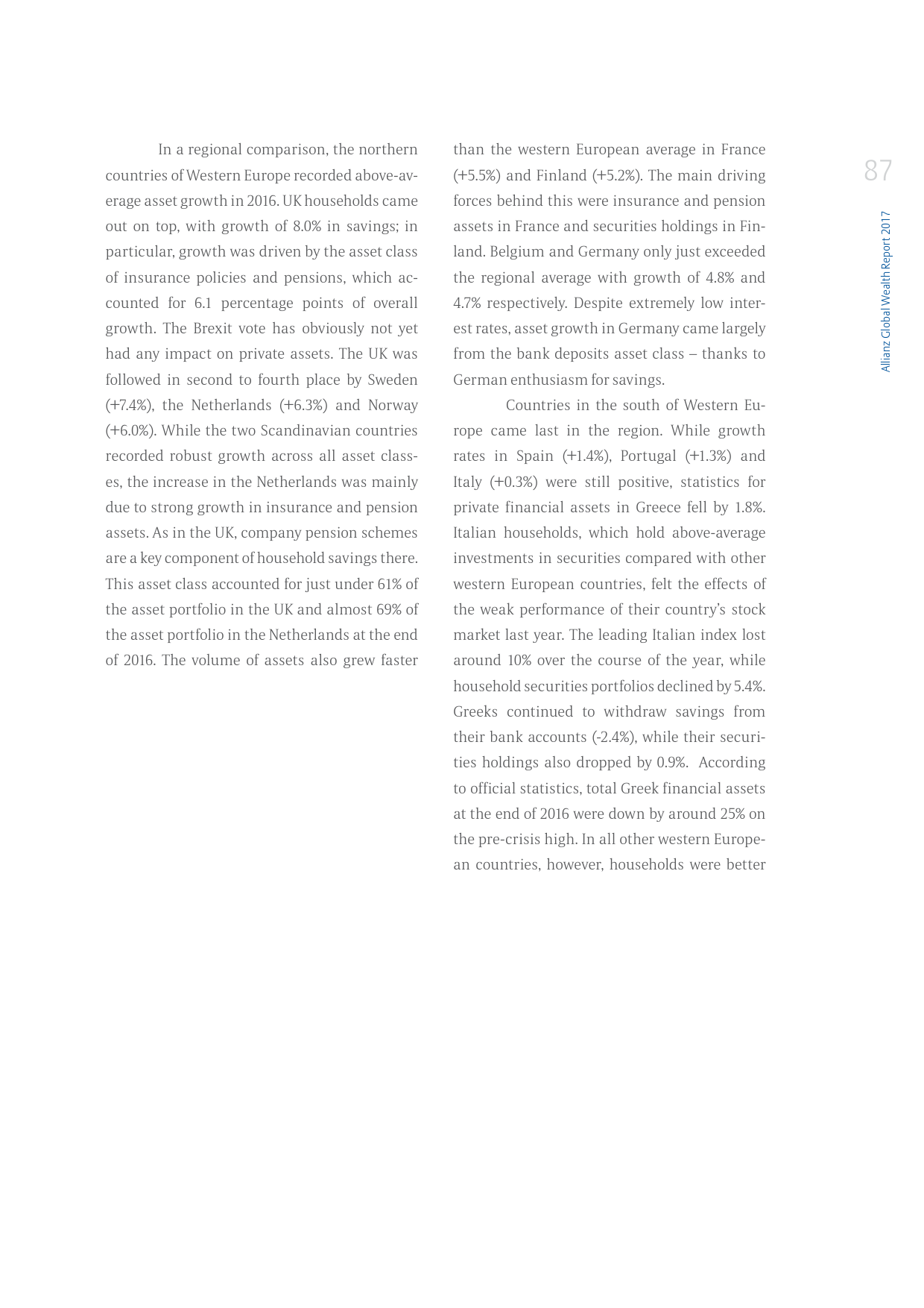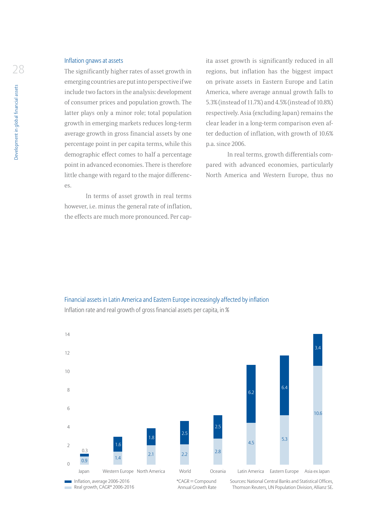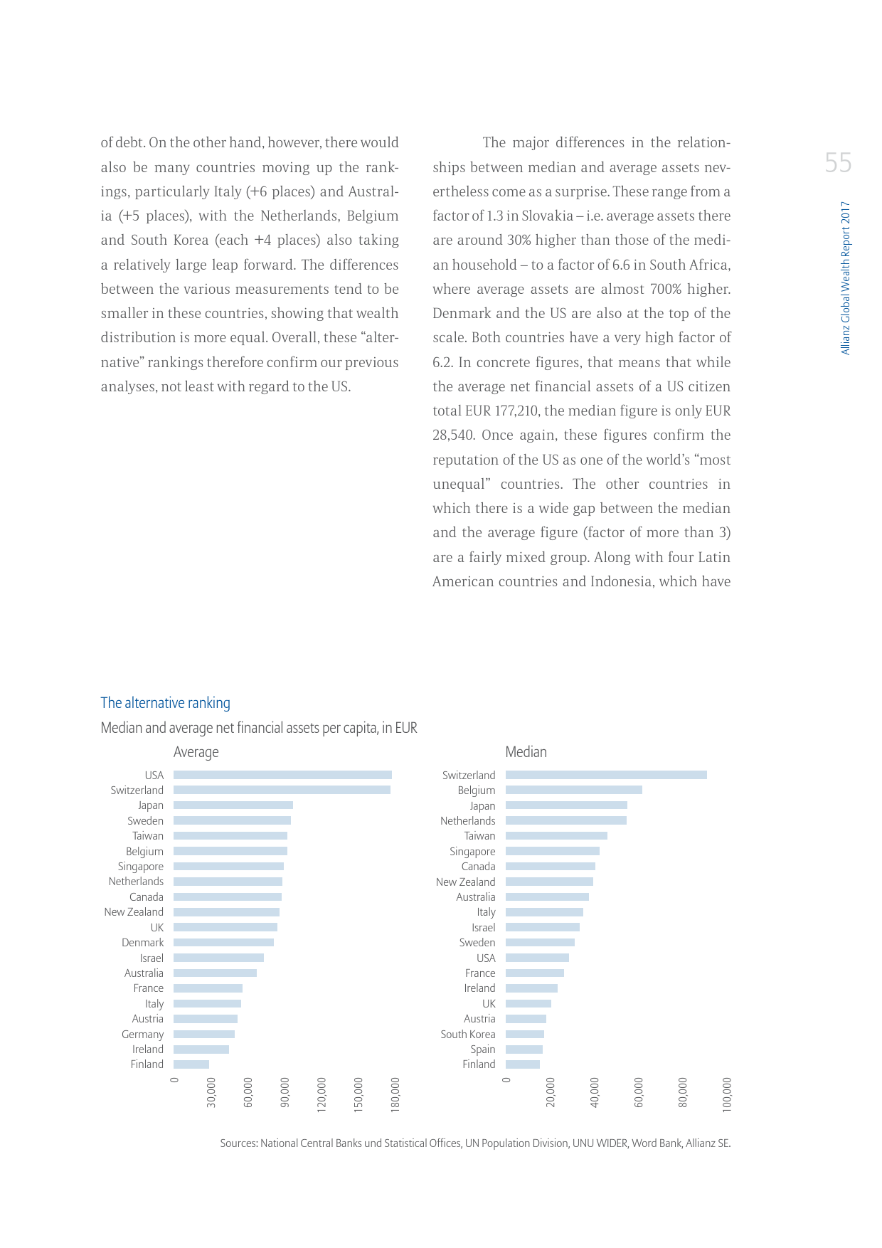 2016年,中国大陆人均金融资产净值为12765欧元,全球排名从2000年的第40位上升至第27位。日本、台湾和新加坡均跻身前20,其中台湾为92360欧元,全球排名第5位。排名第一的是美国,人均金融资产净值为177210欧元。之后为瑞士(175720欧元)、日本(96890欧元)、瑞典(95050欧元)。德国排名第18位(48760欧元)。