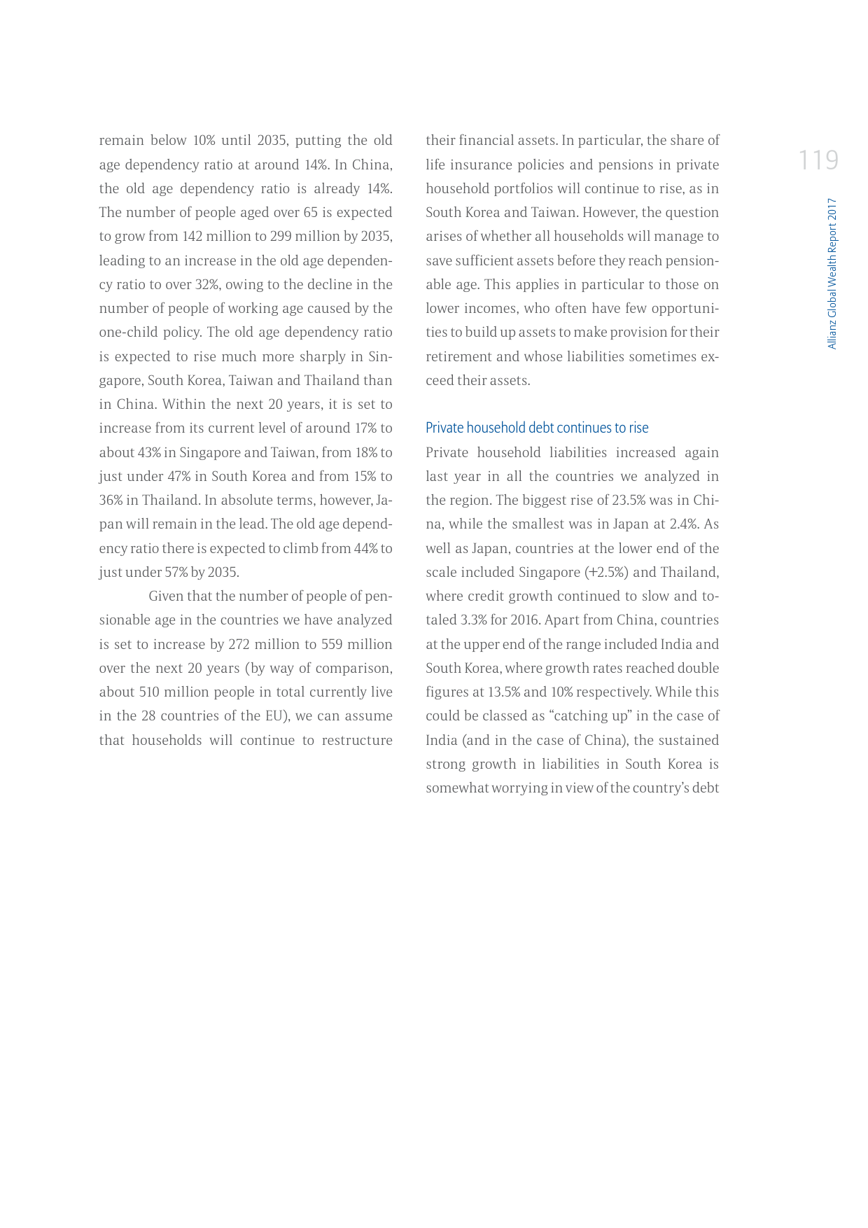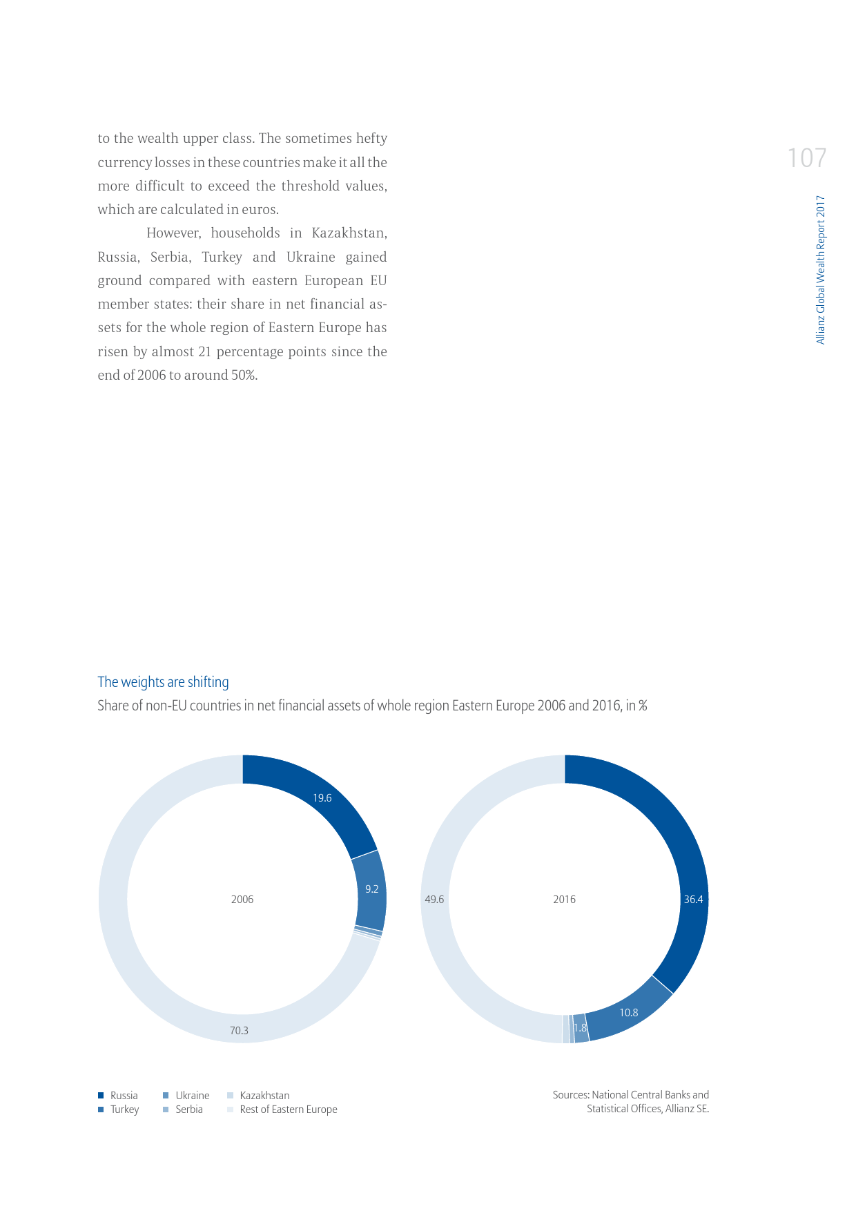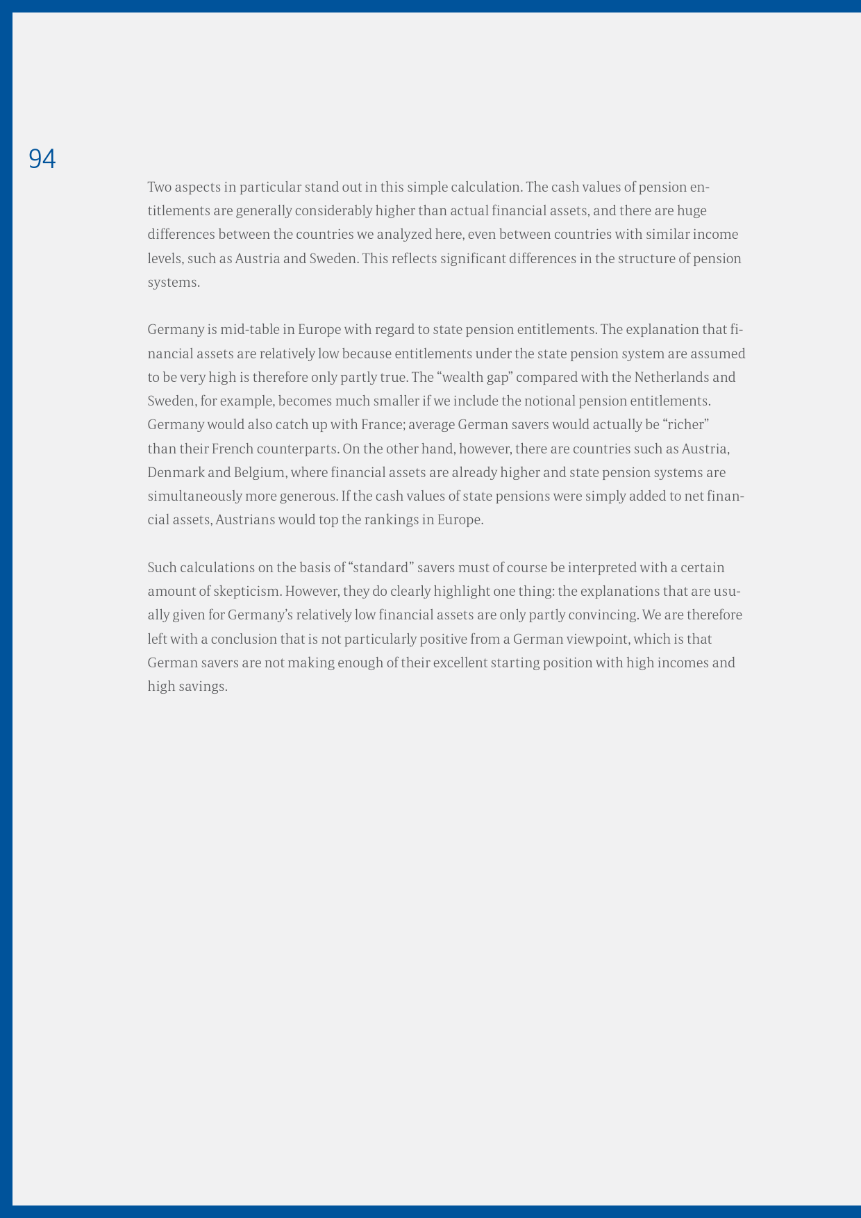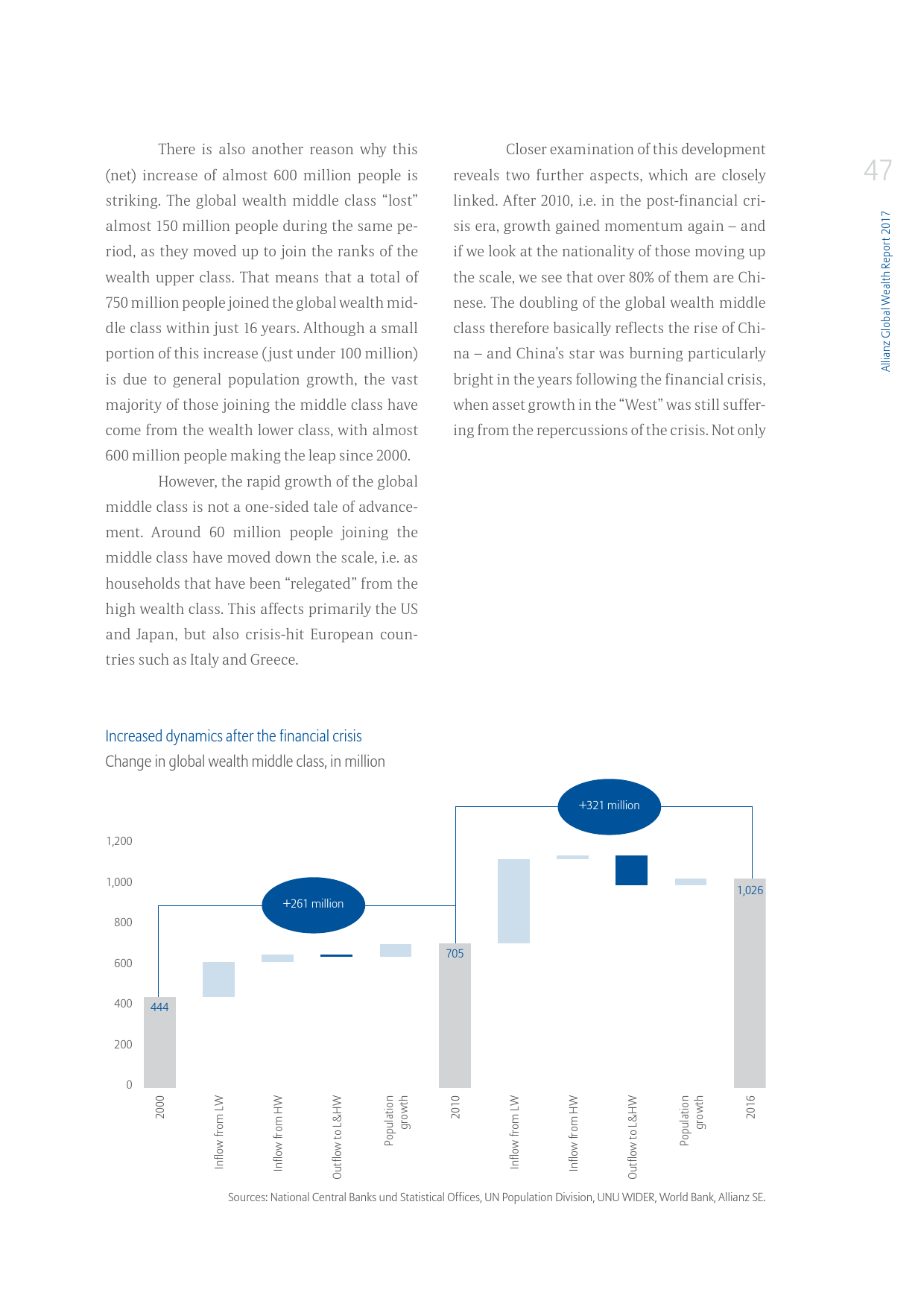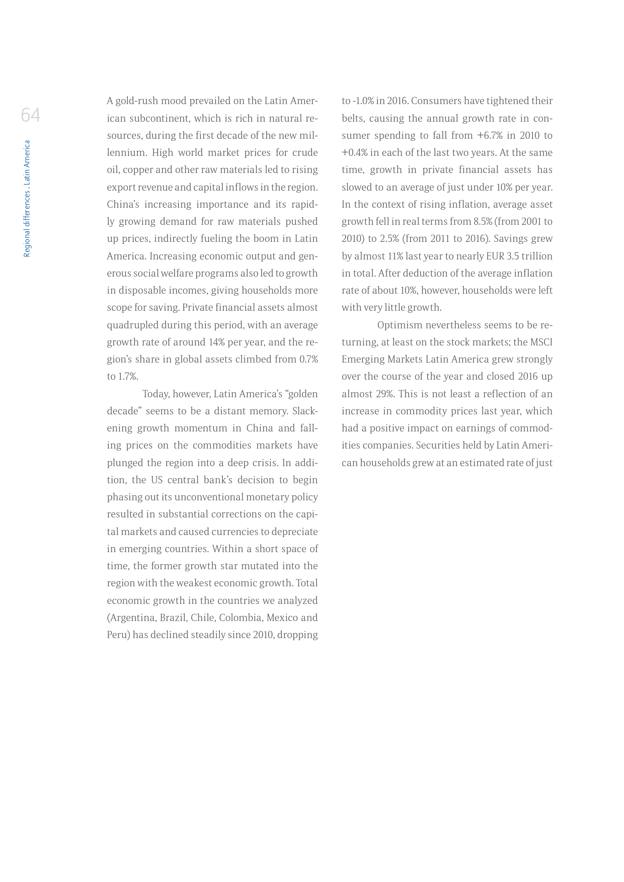 2016年,中国大陆人均金融资产净值为12765欧元,全球排名从2000年的第40位上升至第27位。日本、台湾和新加坡均跻身前20,其中台湾为92360欧元,全球排名第5位。排名第一的是美国,人均金融资产净值为177210欧元。之后为瑞士(175720欧元)、日本(96890欧元)、瑞典(95050欧元)。德国排名第18位(48760欧元)。