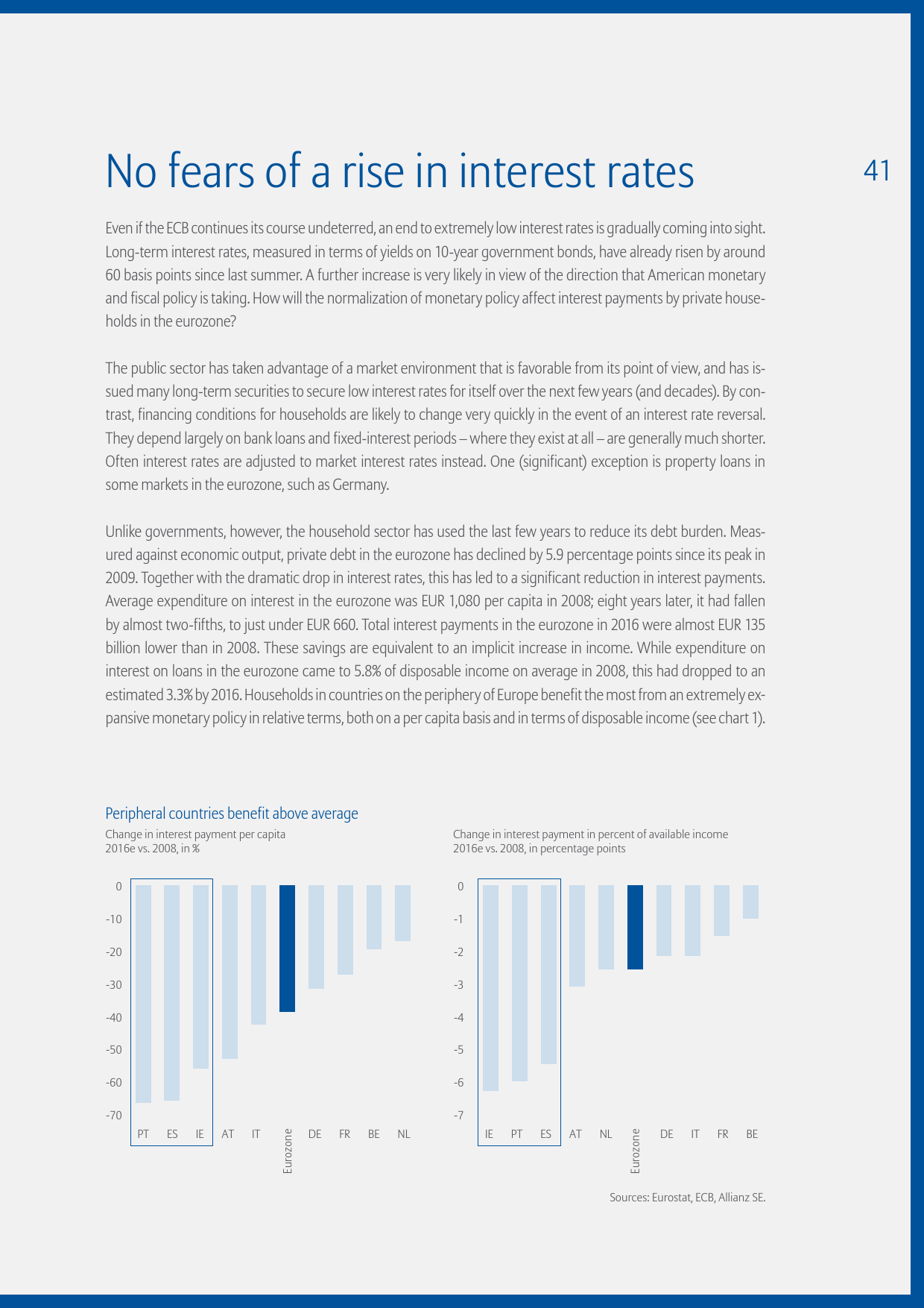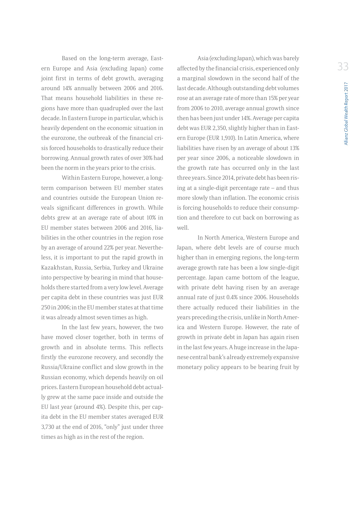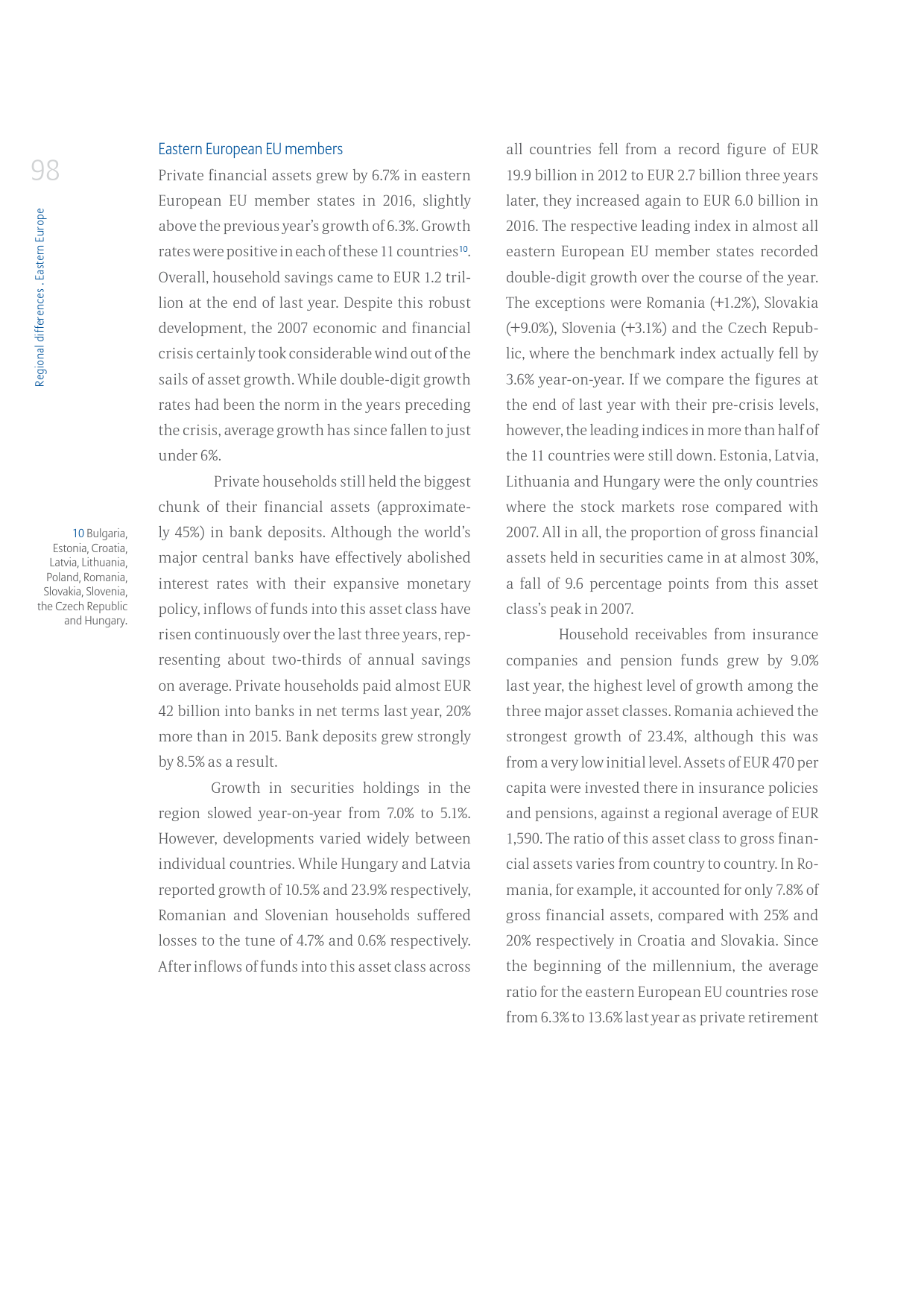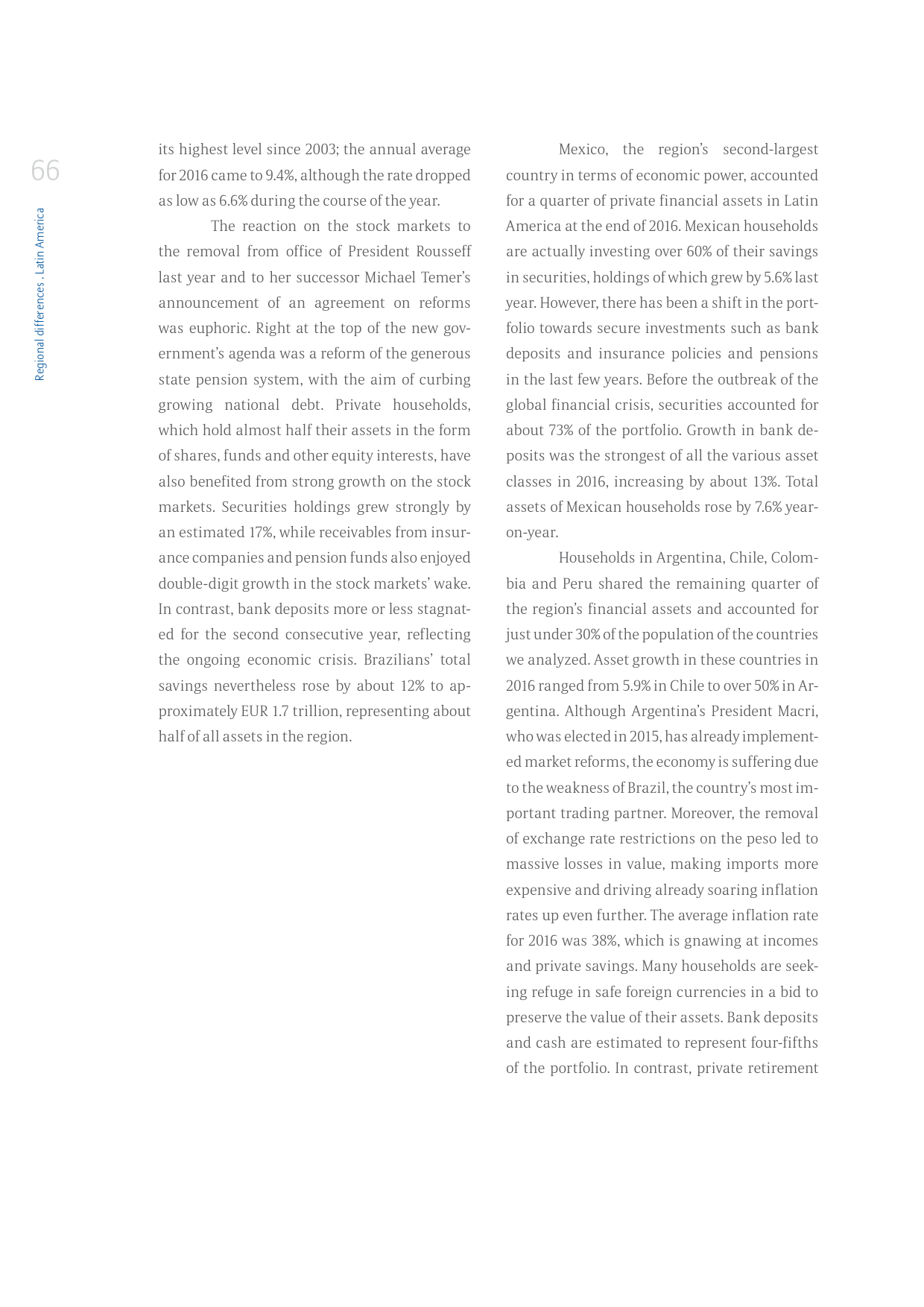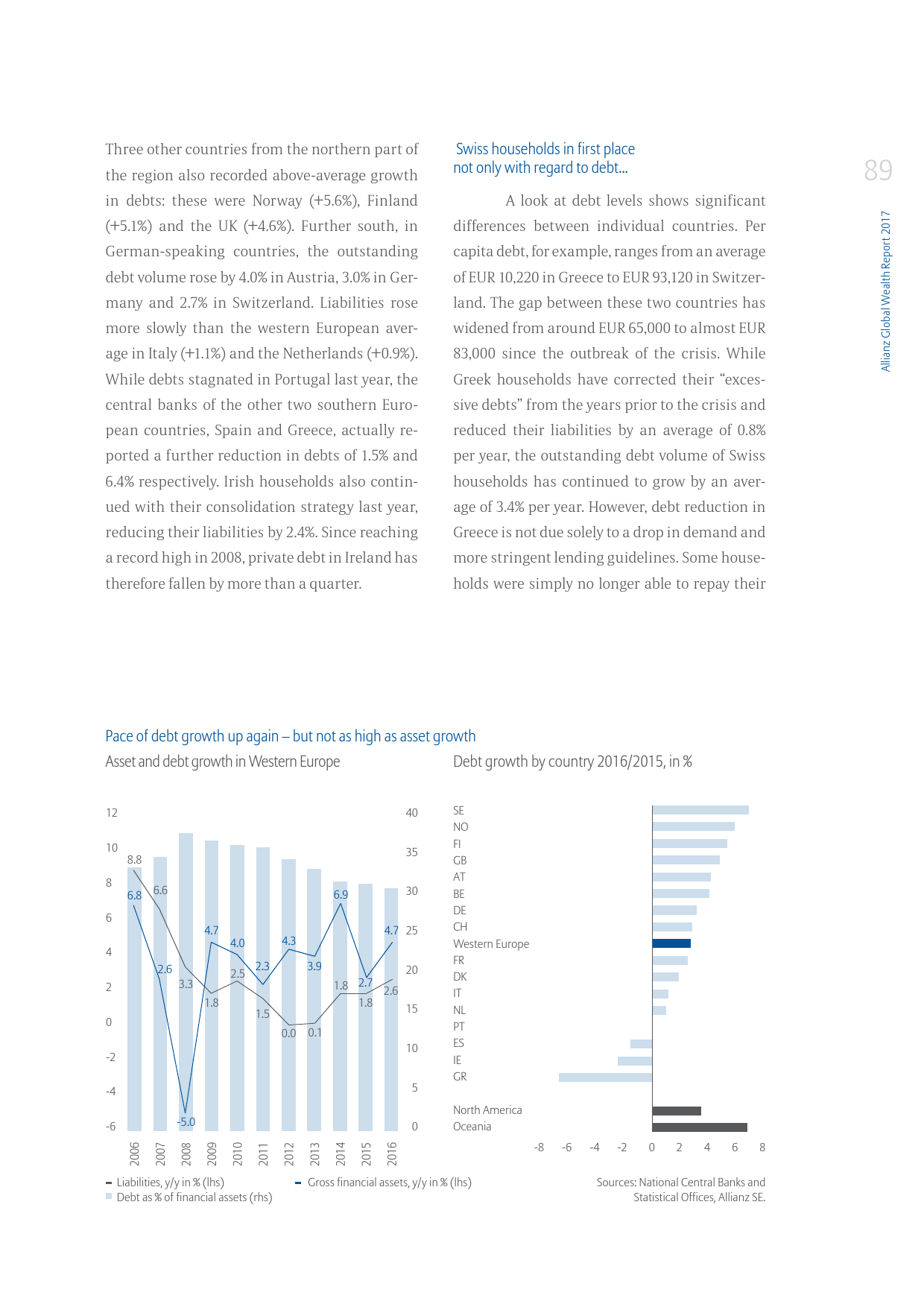 2016年,中国大陆人均金融资产净值为12765欧元,全球排名从2000年的第40位上升至第27位。日本、台湾和新加坡均跻身前20,其中台湾为92360欧元,全球排名第5位。排名第一的是美国,人均金融资产净值为177210欧元。之后为瑞士(175720欧元)、日本(96890欧元)、瑞典(95050欧元)。德国排名第18位(48760欧元)。