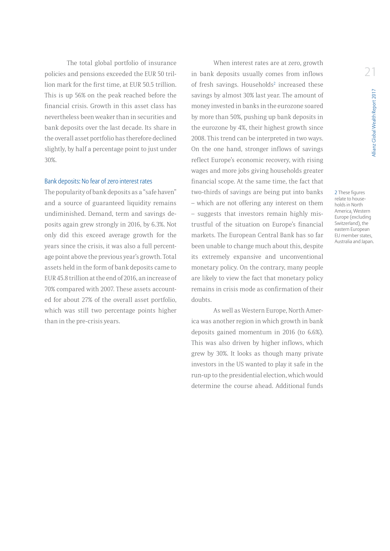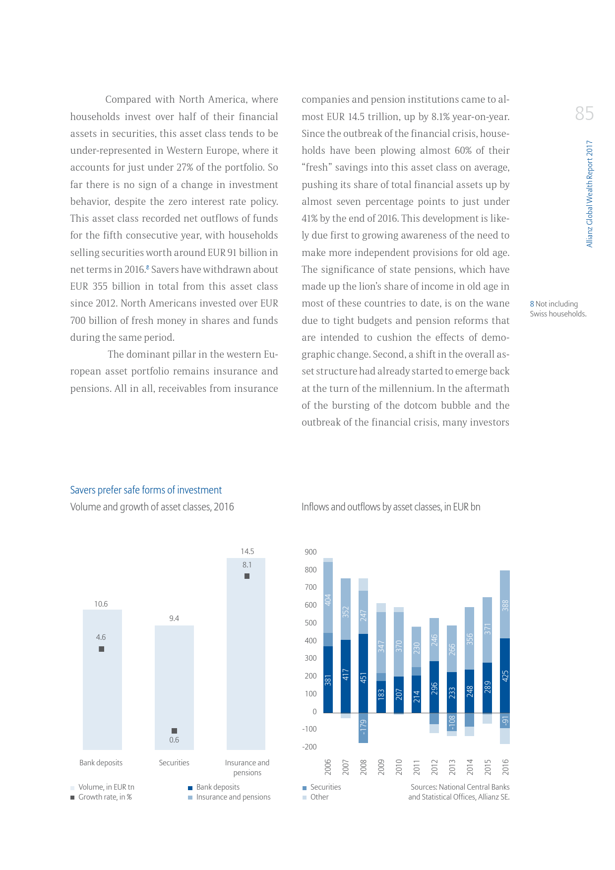 安联报告中所指的金融资产包括现金、银行存款、退休金、养老金、证券等。报告指出,中国家庭资产逐步从存款转向利润更大的理财产品和证券 。