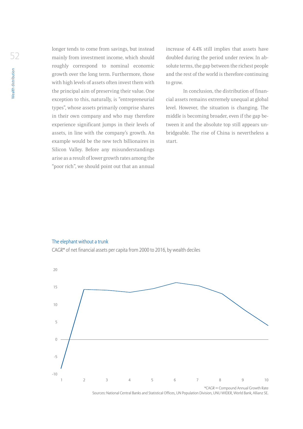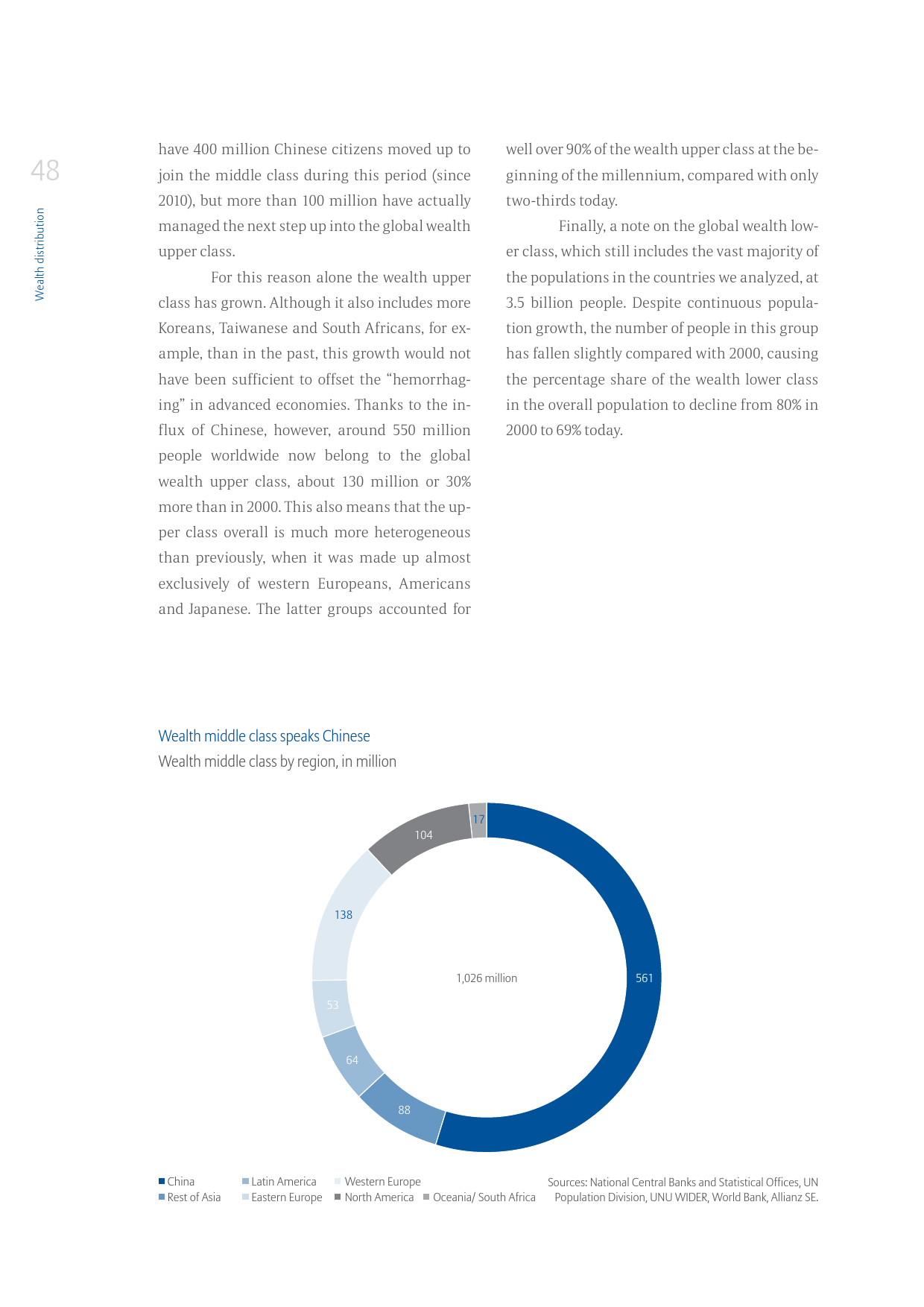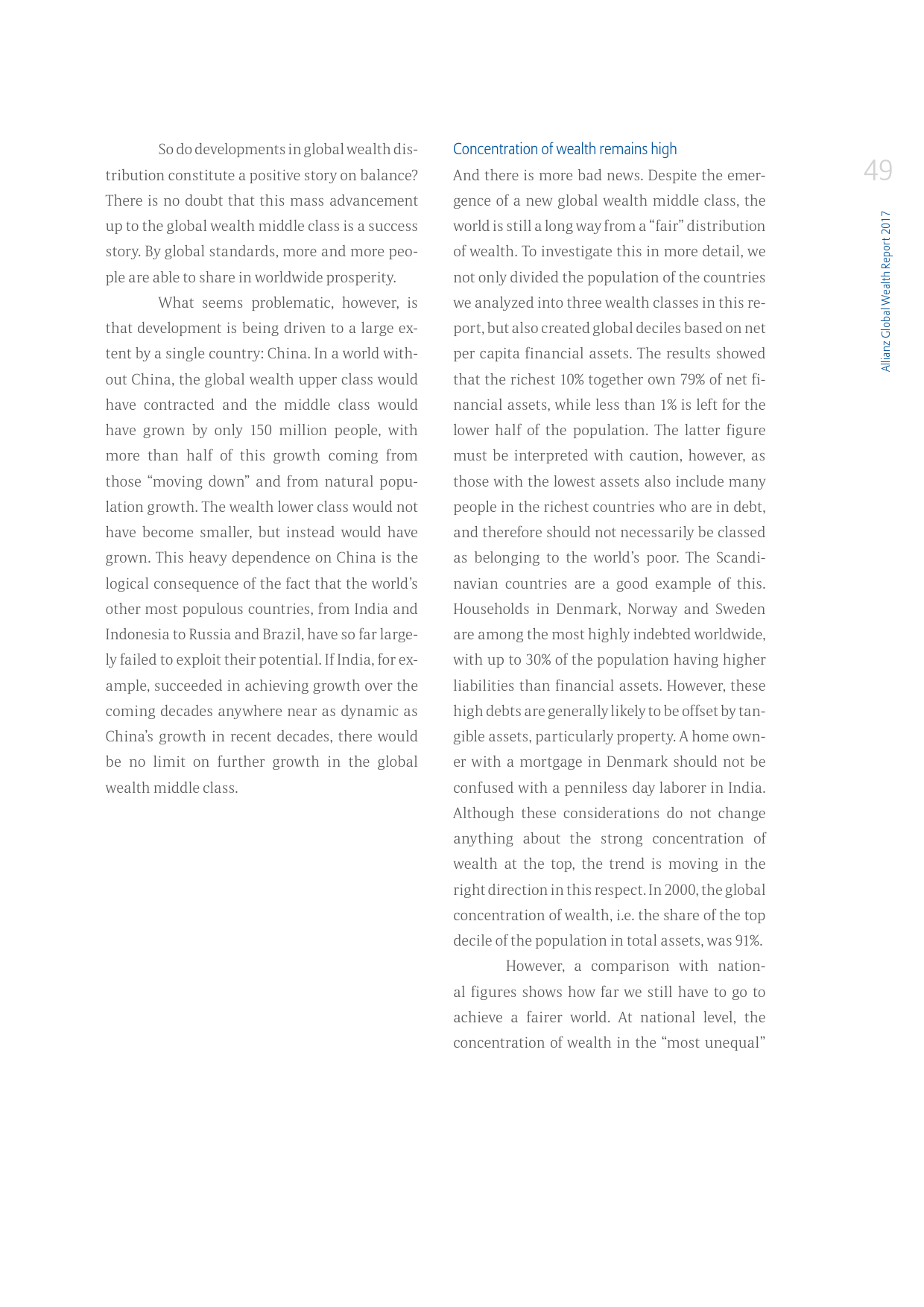 这些数据来自安联集团本周三(9月27日)发表的全球财富报告。报告还指出,新千年伊始时,全球最富有的10%的人口坐拥91%的全球金融资产净值,如今只拥有79%。其中最主要的原因在于中国中产阶级的壮大,而非洲却没有任何变化。