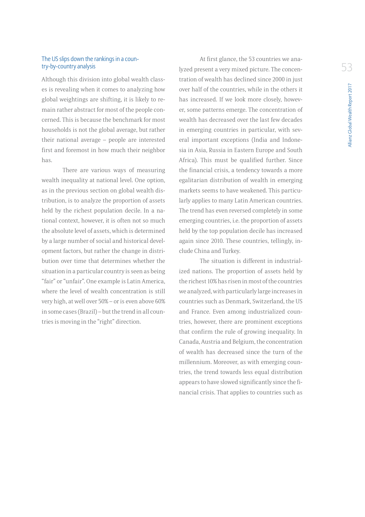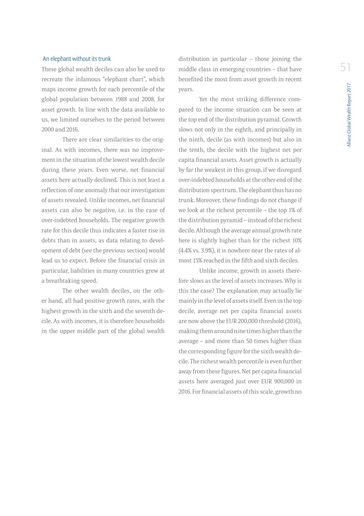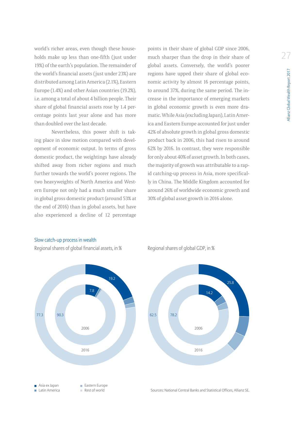 这些数据来自安联集团本周三(9月27日)发表的全球财富报告。报告还指出,新千年伊始时,全球最富有的10%的人口坐拥91%的全球金融资产净值,如今只拥有79%。其中最主要的原因在于中国中产阶级的壮大,而非洲却没有任何变化。