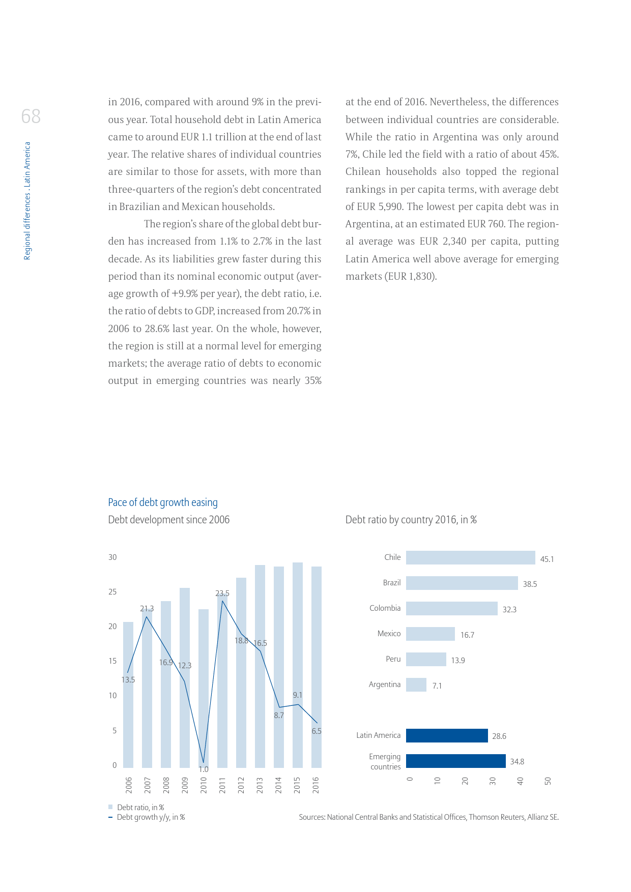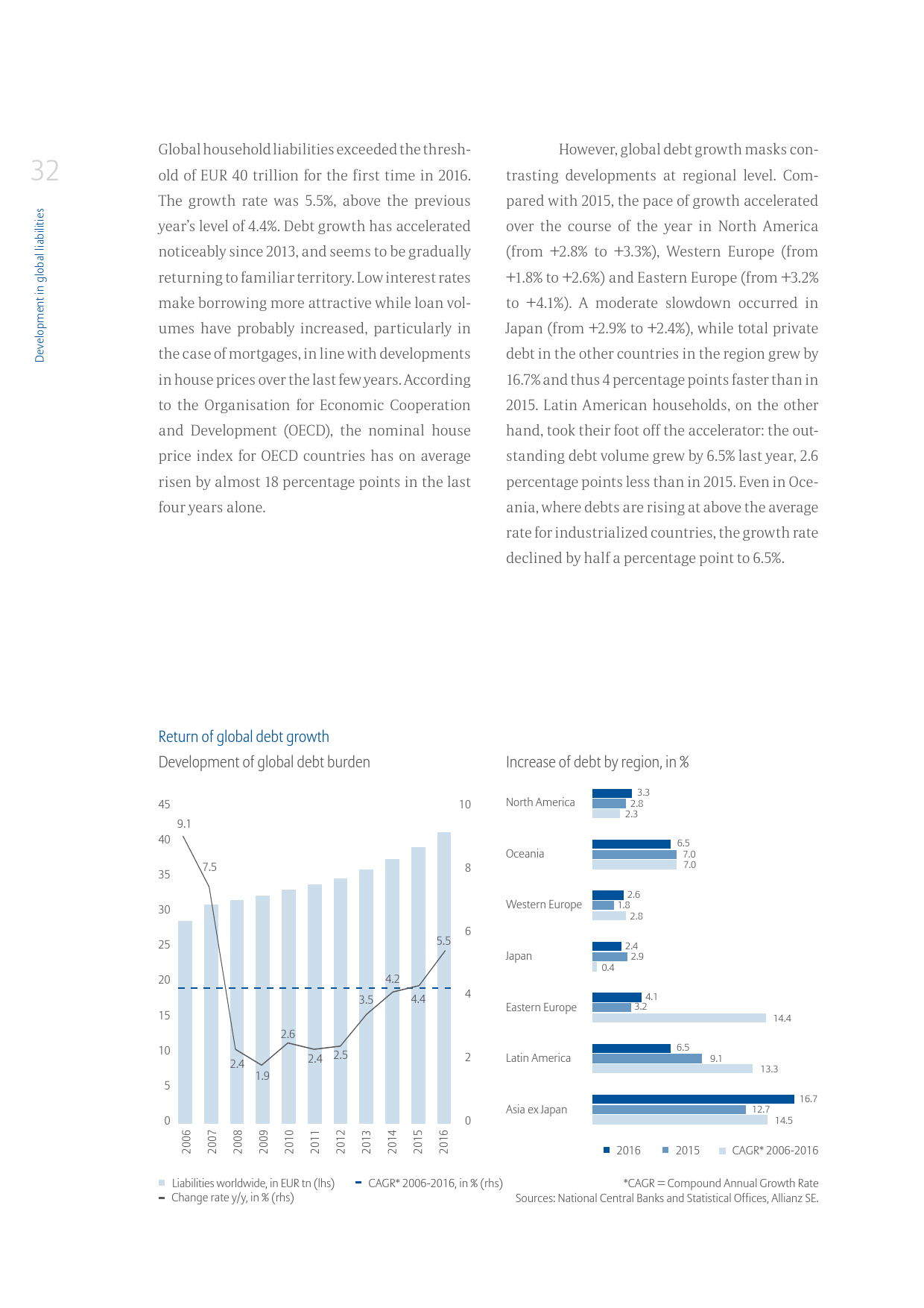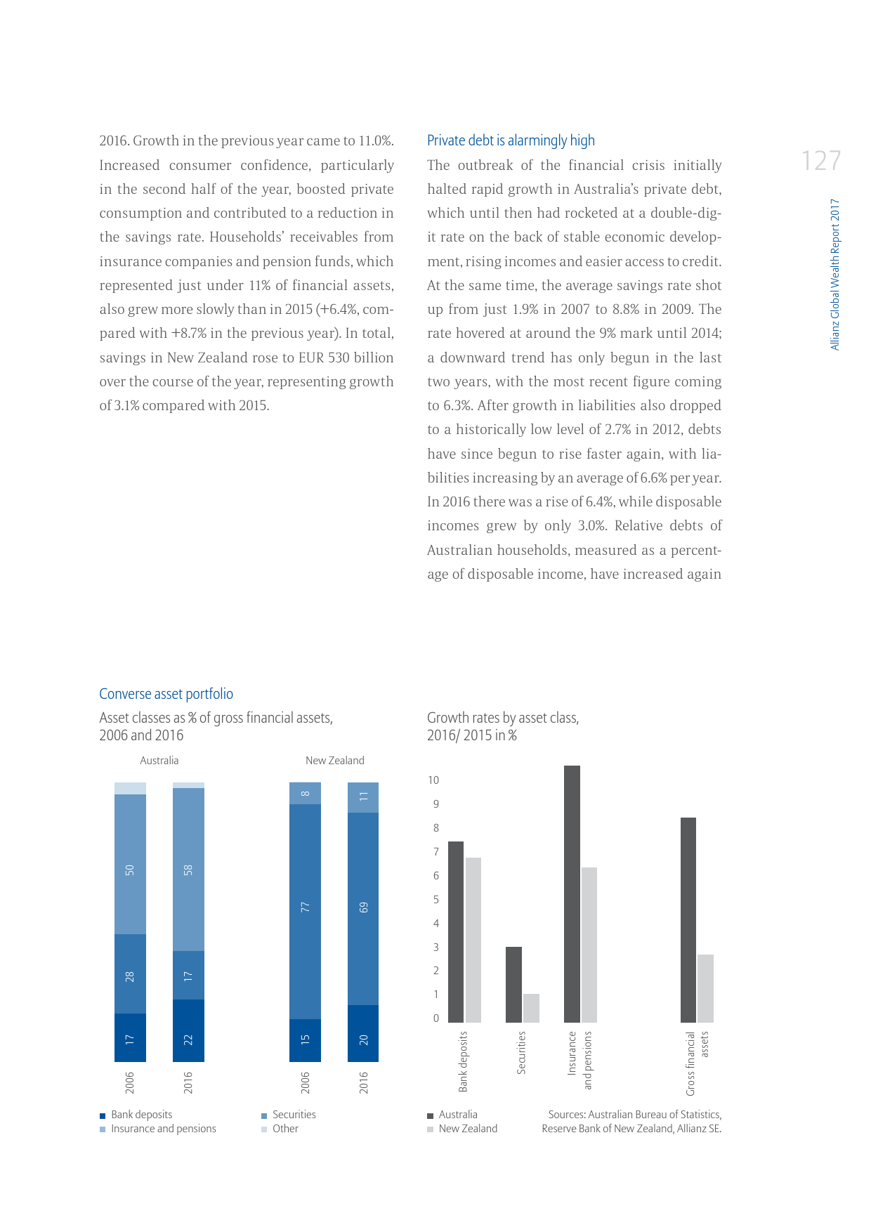安联集团全球财富报告主要针对全球50个多个国家的个人家庭资产和负债情况进行调查。按照安联的评估,中国大陆家庭去年的财富涨幅为17.9%,成为继阿根廷(54.1%)之后金融资产增长速度最快的国家。不过,中国大陆家庭负债也增长23%。安联首席经济学家麦可·海斯博士(Michael Heise)在报告中指出,”虽然中国家庭整体负债45.1%的比例相对较低,但增长速度应该引起重视。”