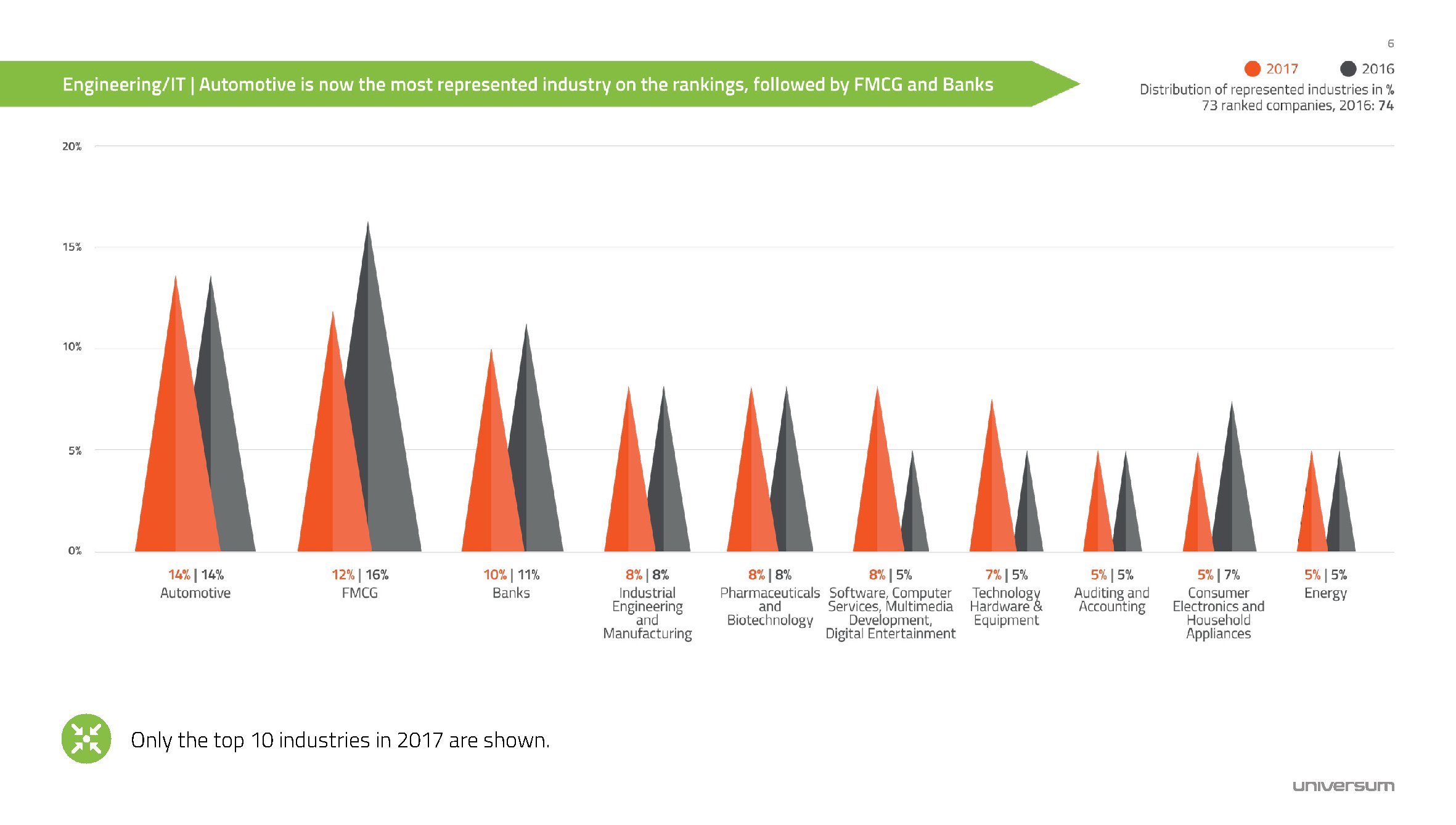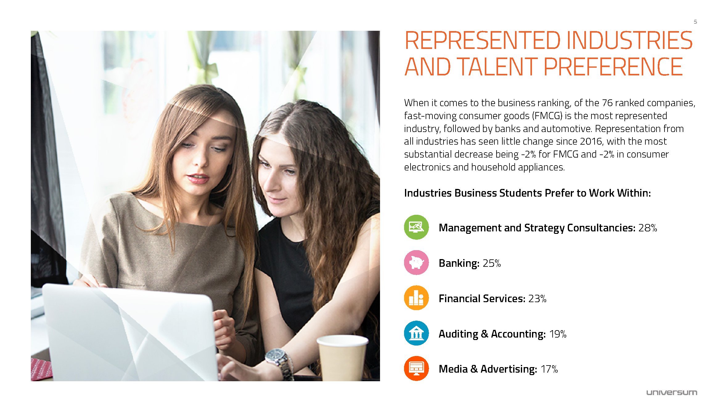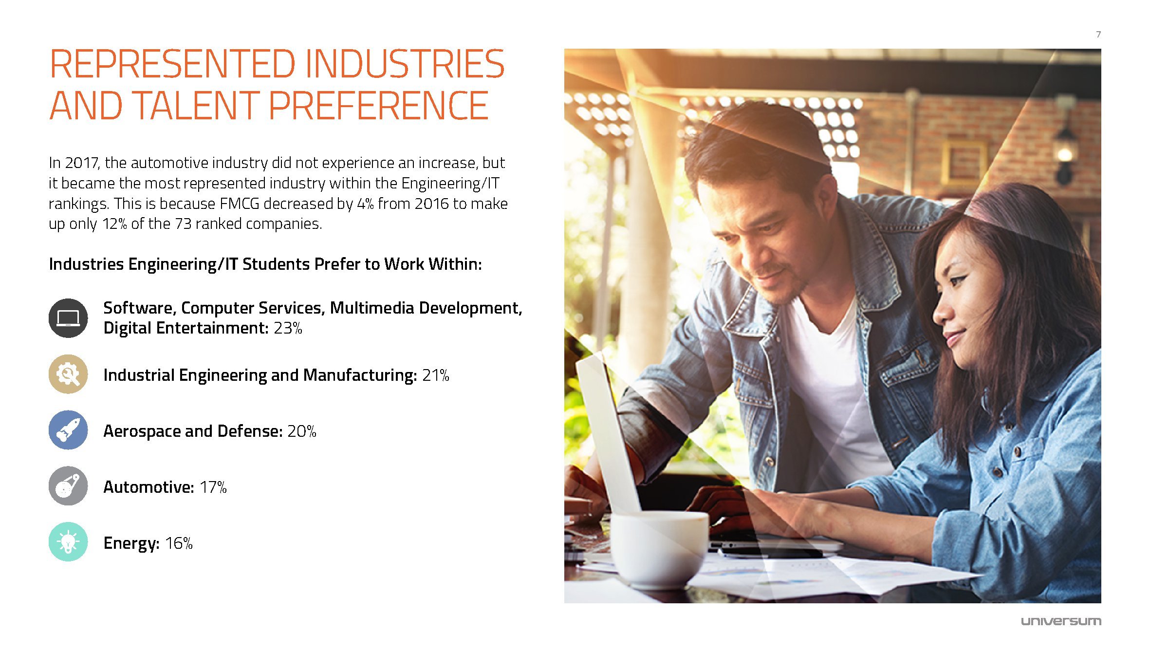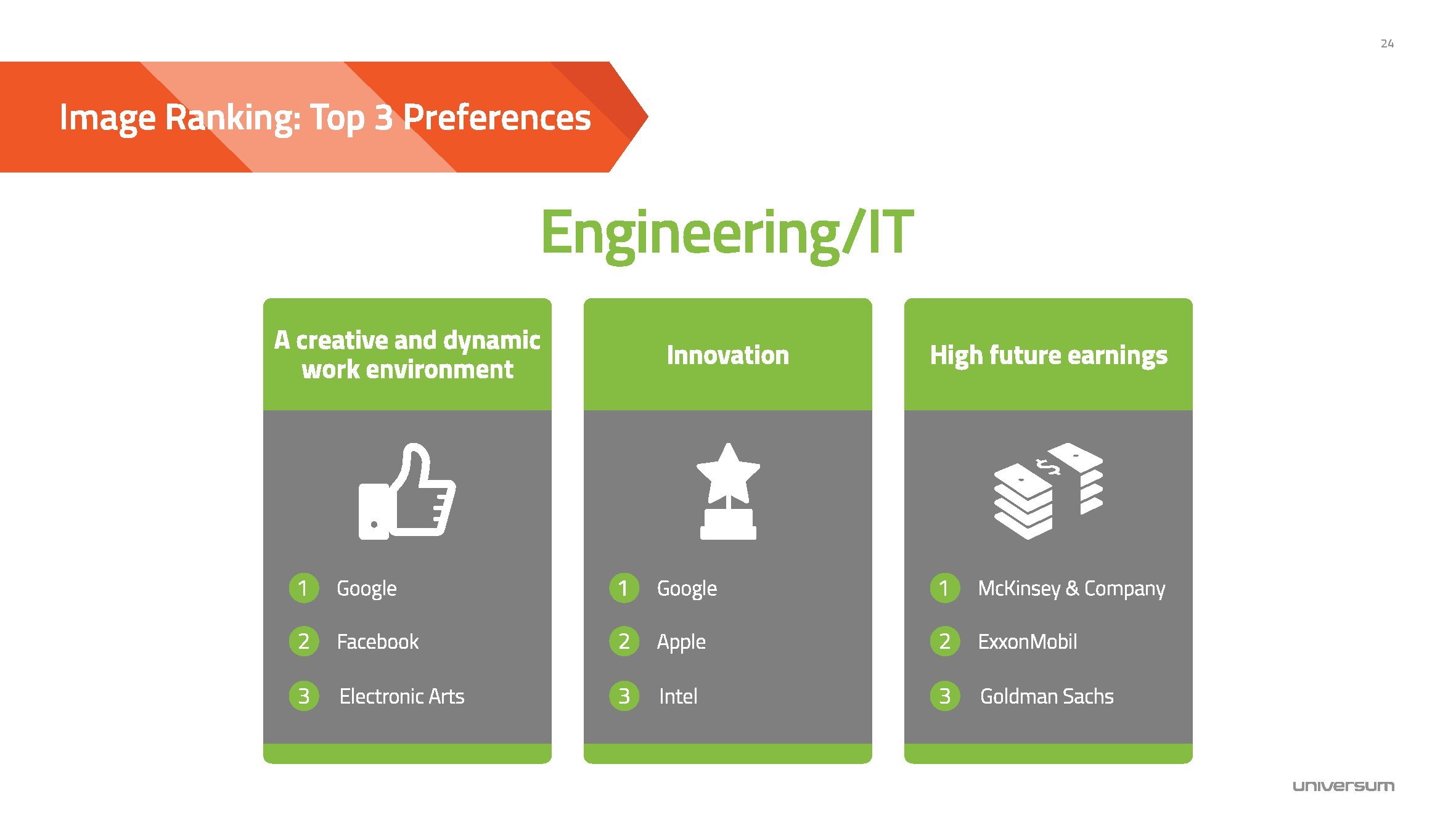 Universum调查了巴西、加拿大、法国、中国、德国、印度、意大利、日本、俄罗斯、韩国、英国和美国近30万商业和工程/IT专业的大学生,希望了解哪些企业特质对他们最有吸引力。