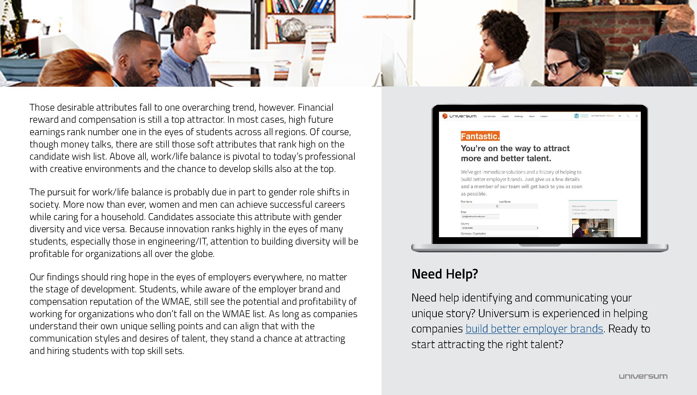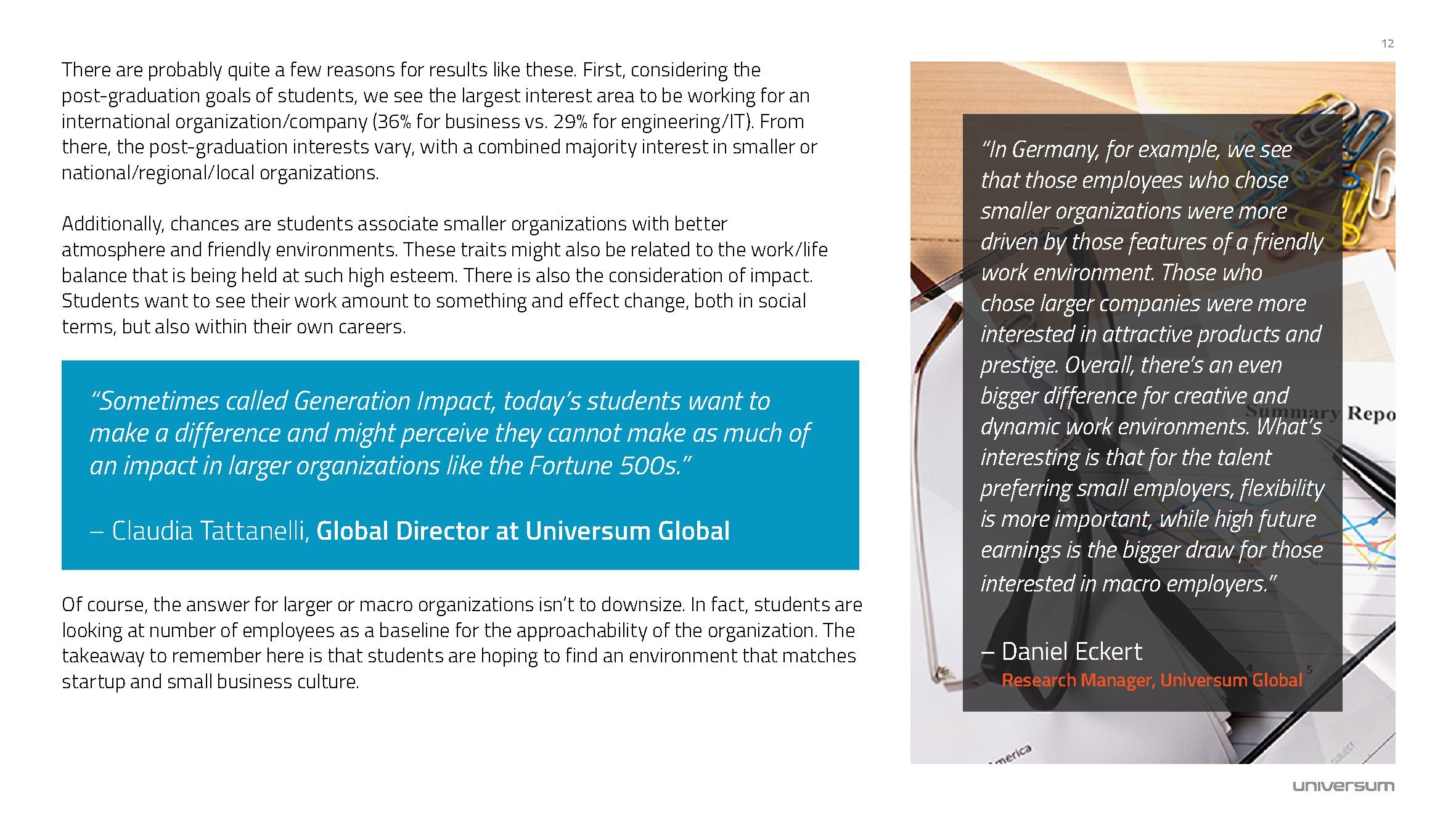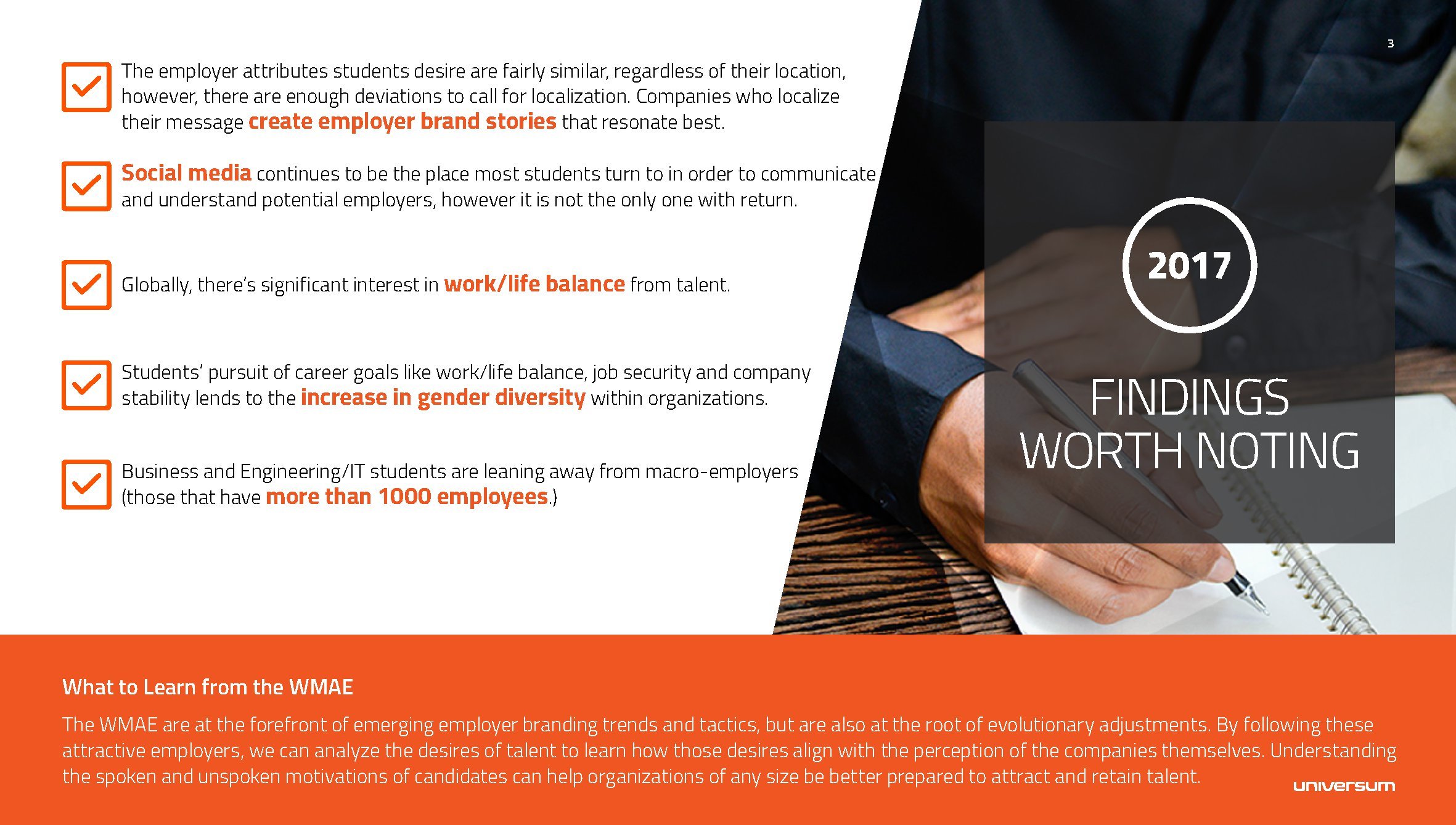 调查发现,雇主认为学生的欲望都是相似的,无论他们在哪个国家。但是,本地化差异是显而易见的。那些根据本地文化创作品牌故事的企业往往最能引起学生的共鸣。