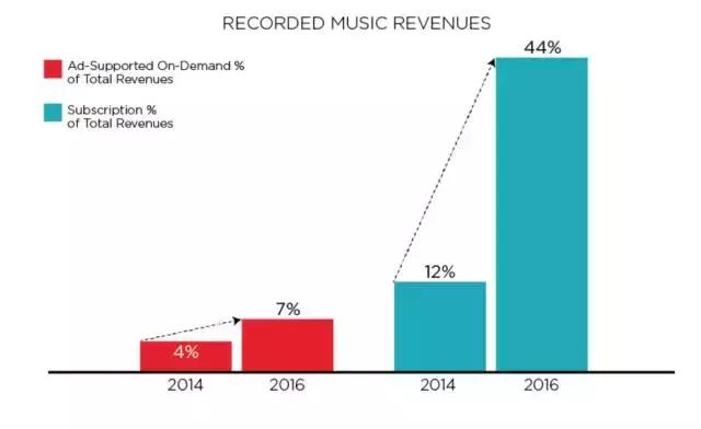 据RIAA数据显示,2017年上半年,美国地区音乐付费订阅人数增至3040万人,较上年增长了50%左右,而付费订阅的交易额也已经达到14.9亿美元。