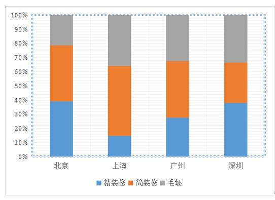2017年第三季度写字楼市场分析报告显示,北京、上海、广州和深圳四大一线城市的主流开间面积呈现下滑趋势,而精装修比例则均有不同幅度的增长。其中,表现最为明显的是以效率高、节奏快著称的深圳。2017年第三季度,深圳精装修办公空间环比增长9%,毛坯大幅下降13%。