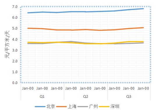 从全国范围来看,一线城市的整体租金水平基本保持平稳状态,部分城市受供需关系影响,租金开始呈现小幅度上扬。