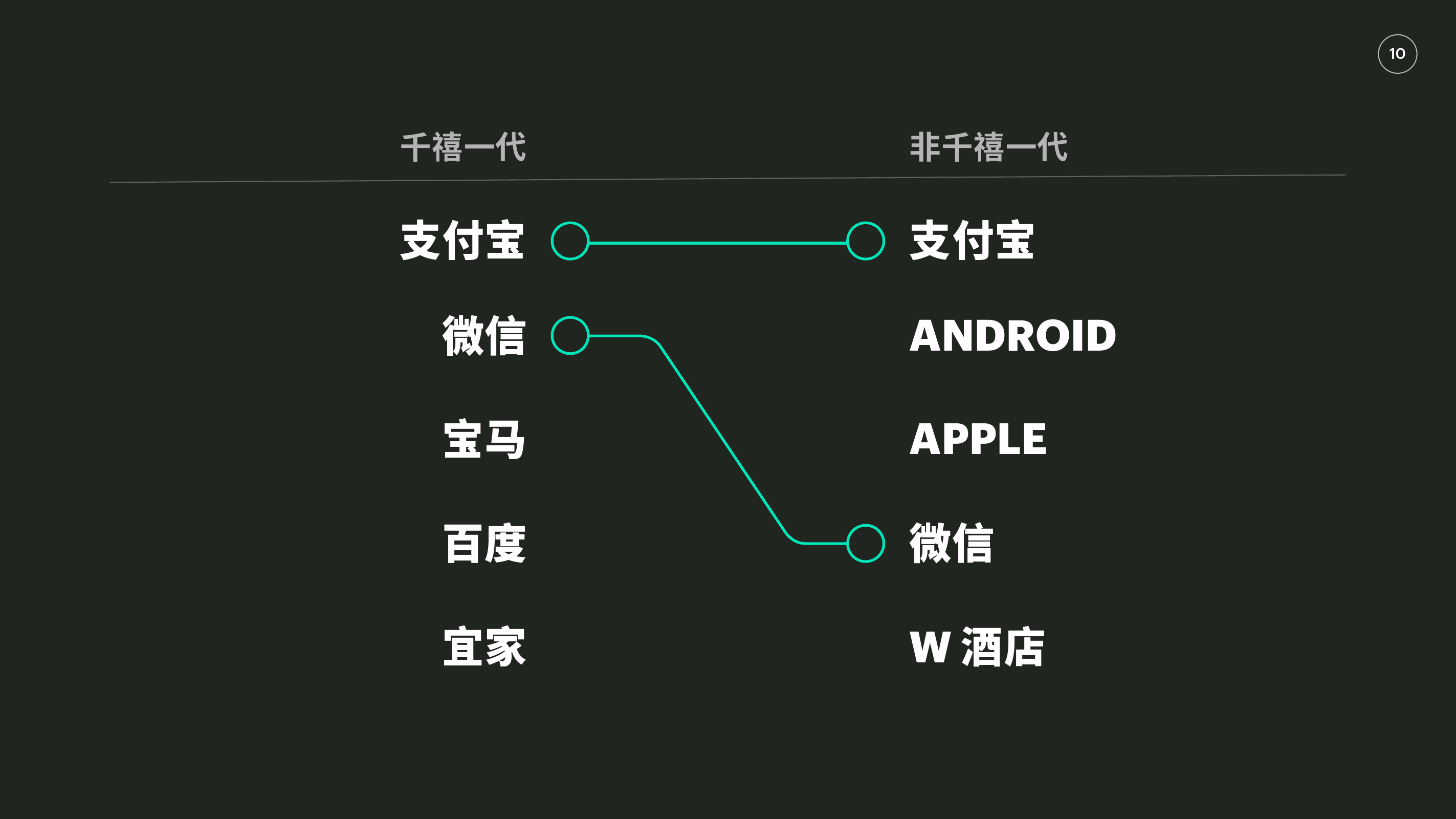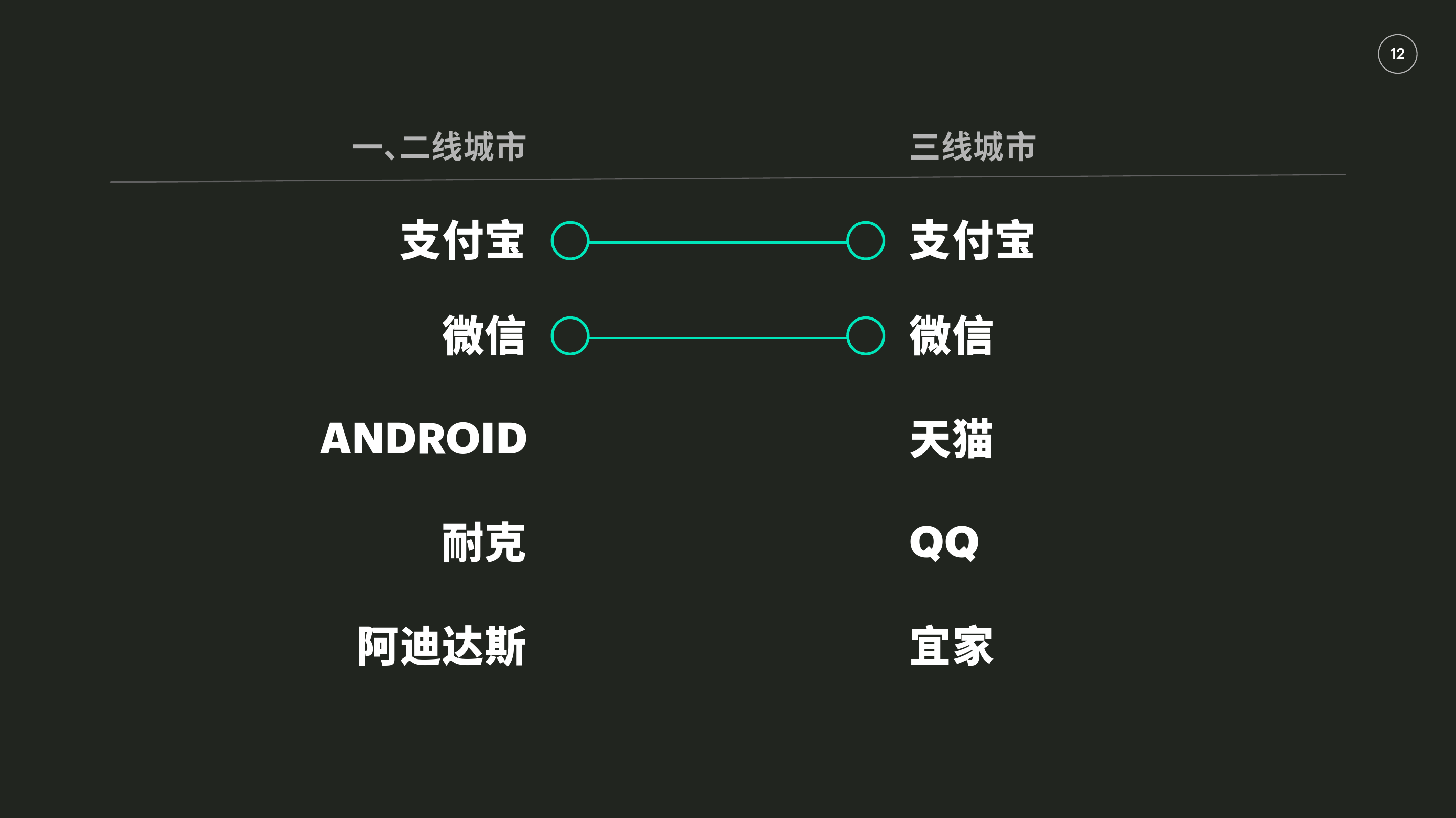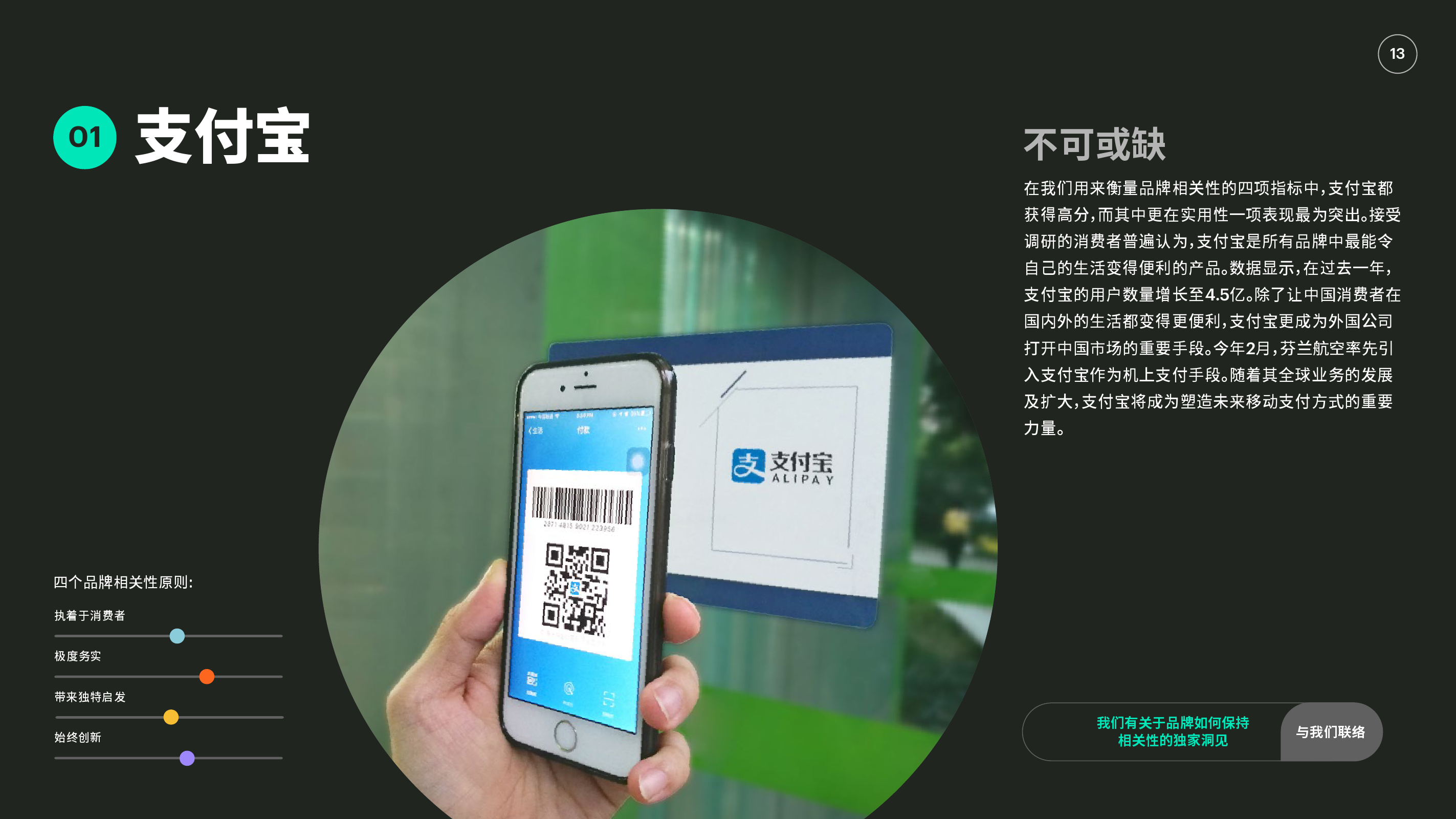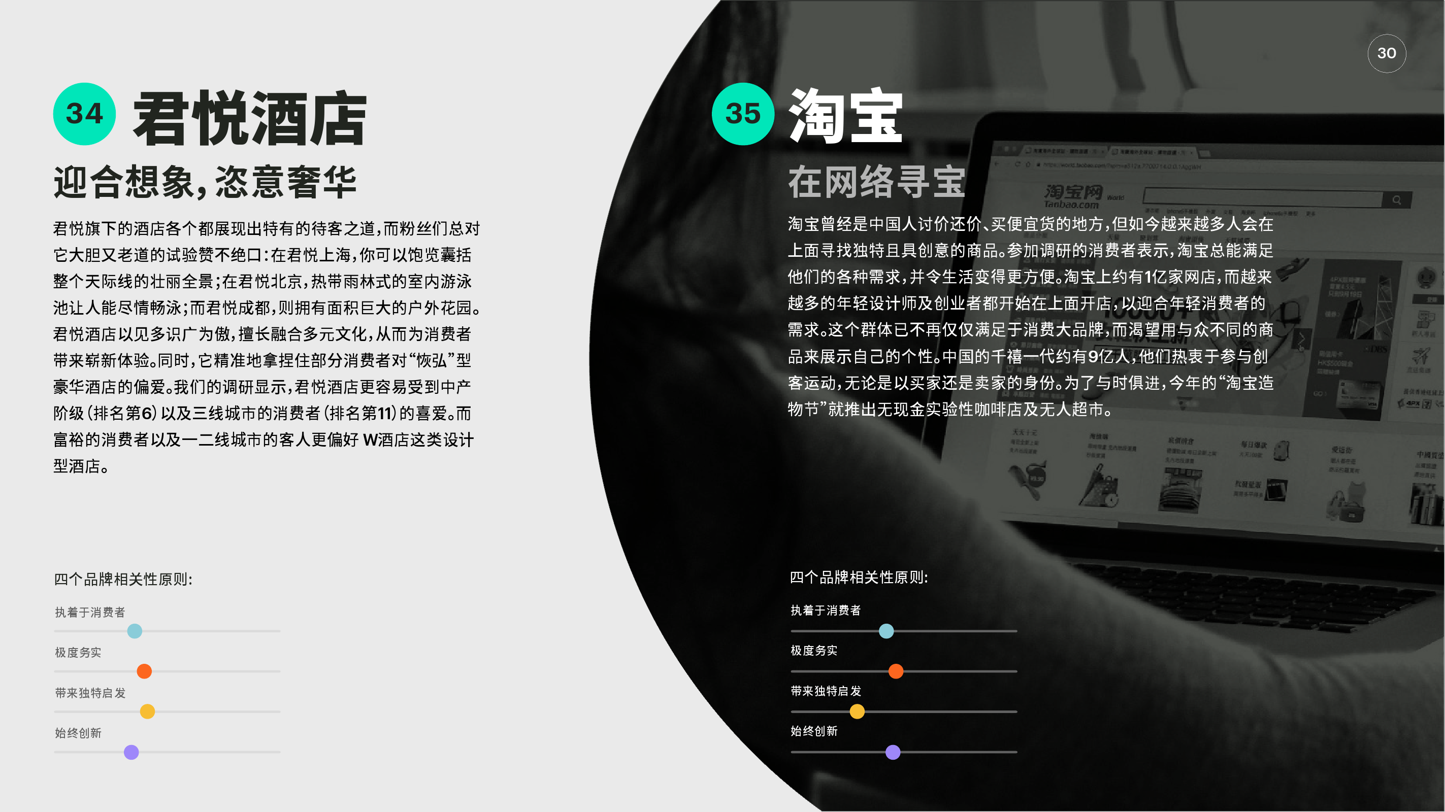 QQ(第28名)正是满足上述需求的强大品牌。另外,消费者积极寻找能满足自己个性化需求的产品。他们对于搜罗不同商品(淘宝,第35名),体验各种服务(美团,第40名)以及品尝各类美食(大众点评,41名)抱有极大兴趣。