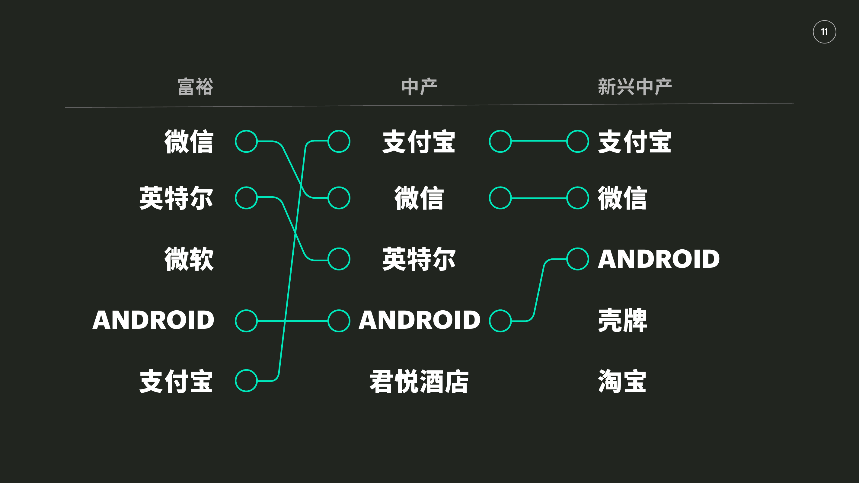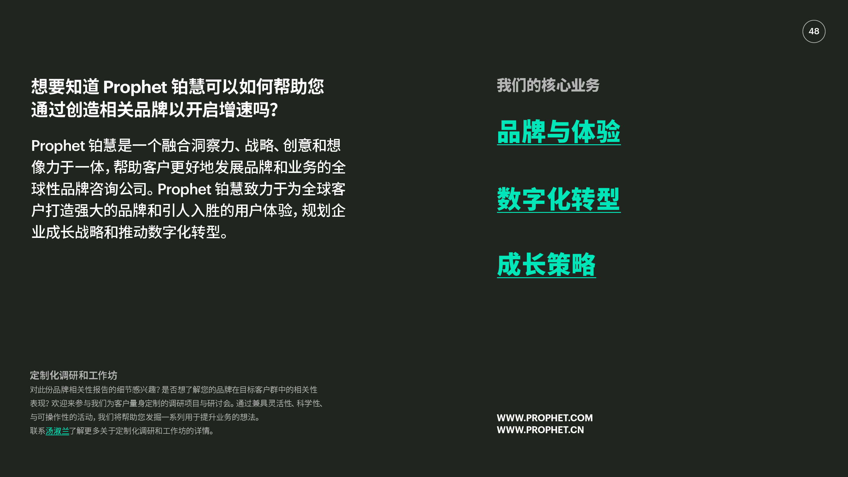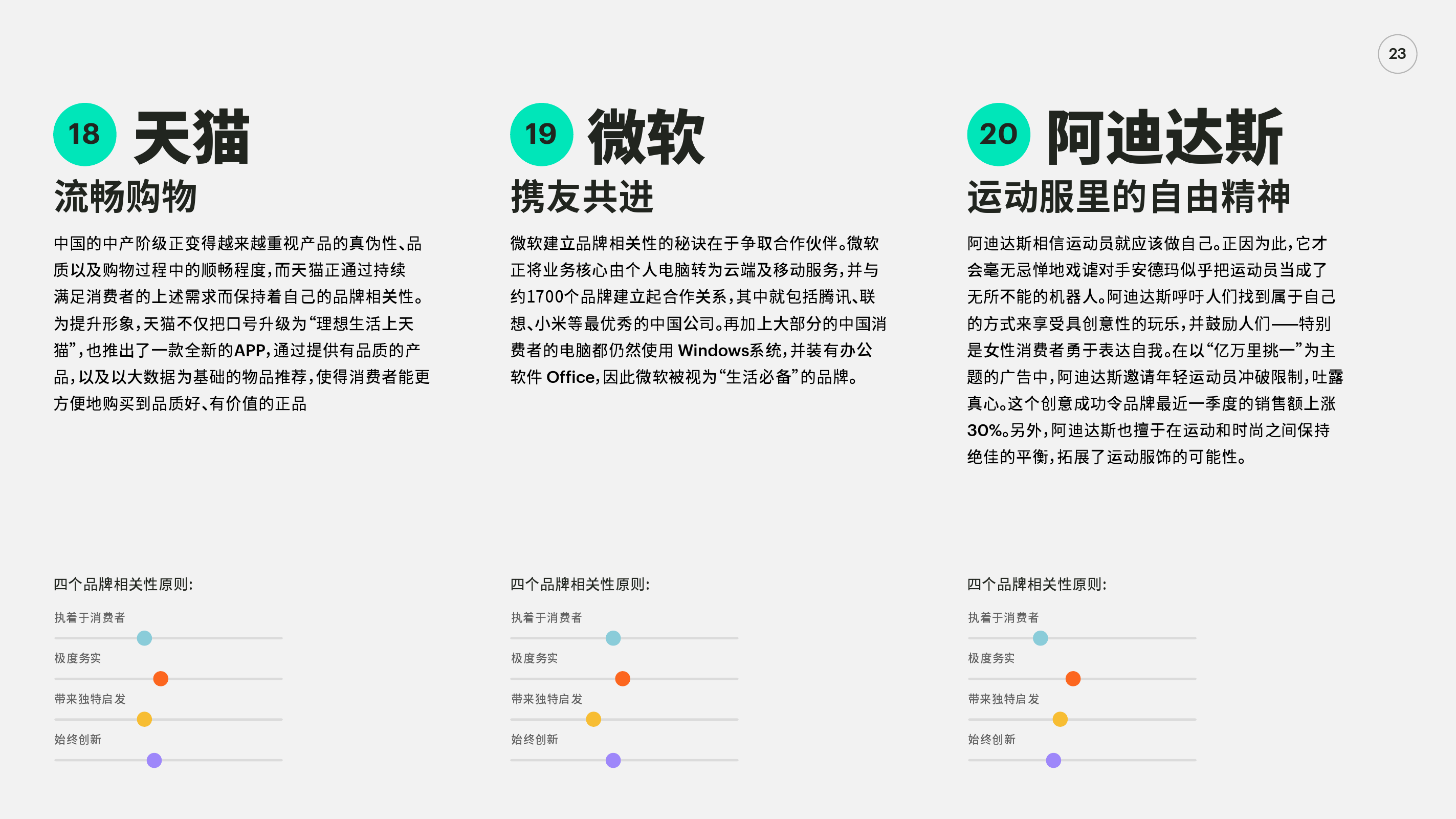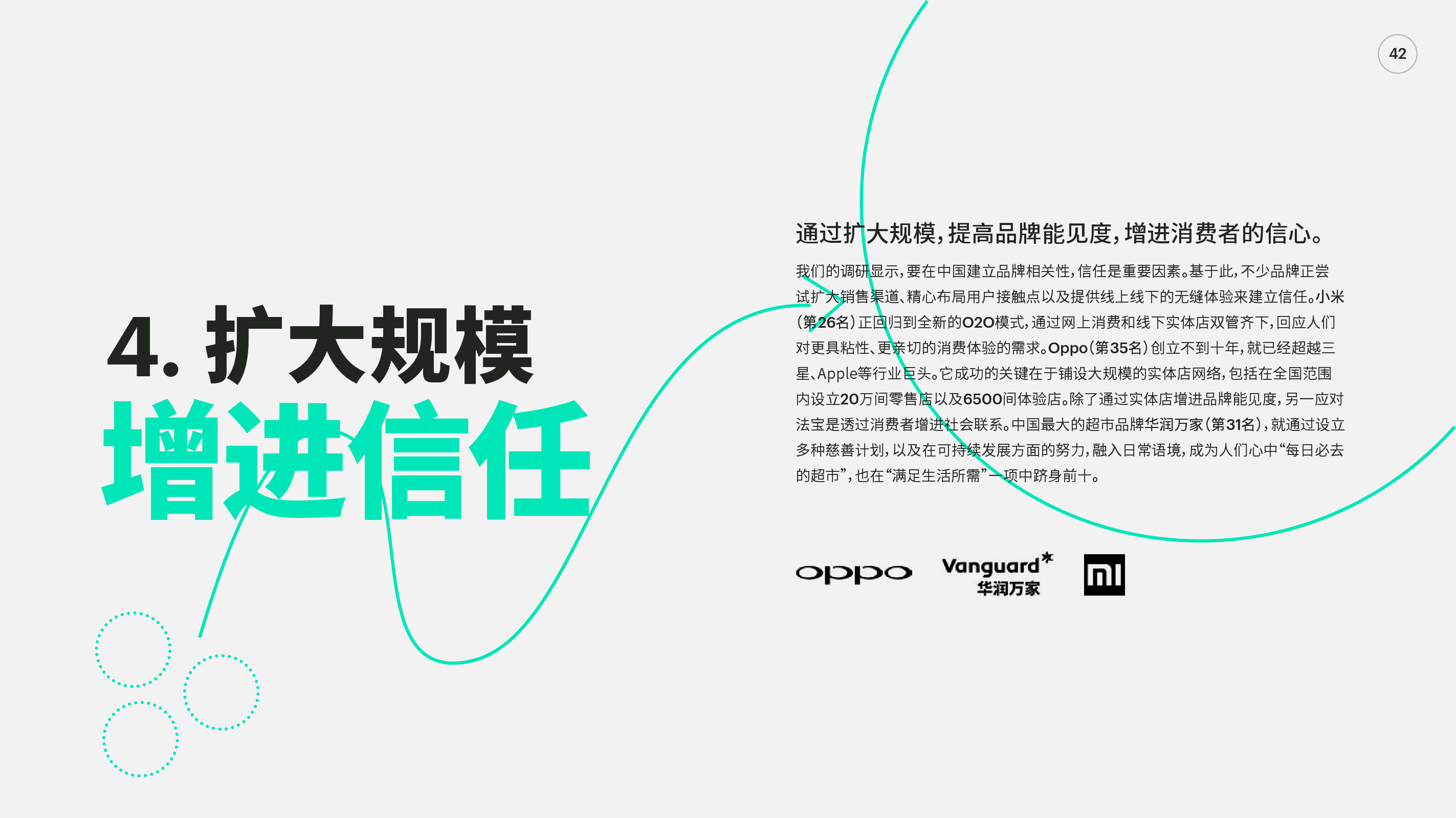 QQ(第28名)正是满足上述需求的强大品牌。另外,消费者积极寻找能满足自己个性化需求的产品。他们对于搜罗不同商品(淘宝,第35名),体验各种服务(美团,第40名)以及品尝各类美食(大众点评,41名)抱有极大兴趣。