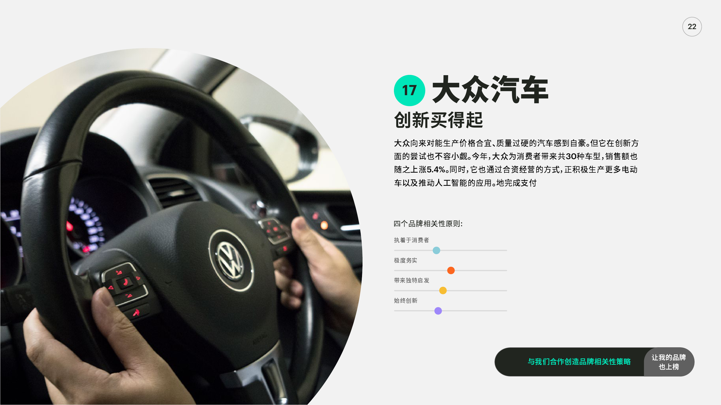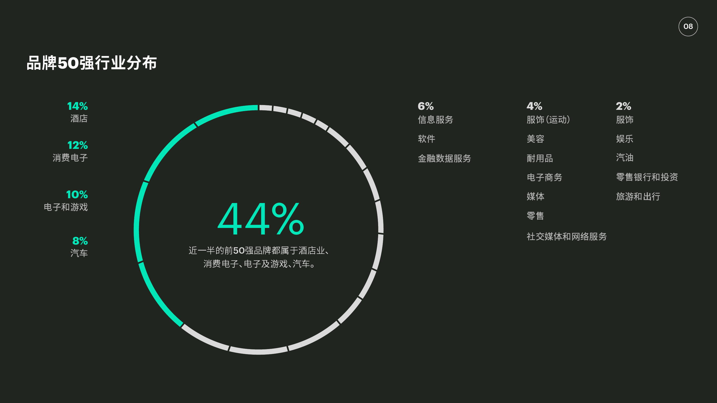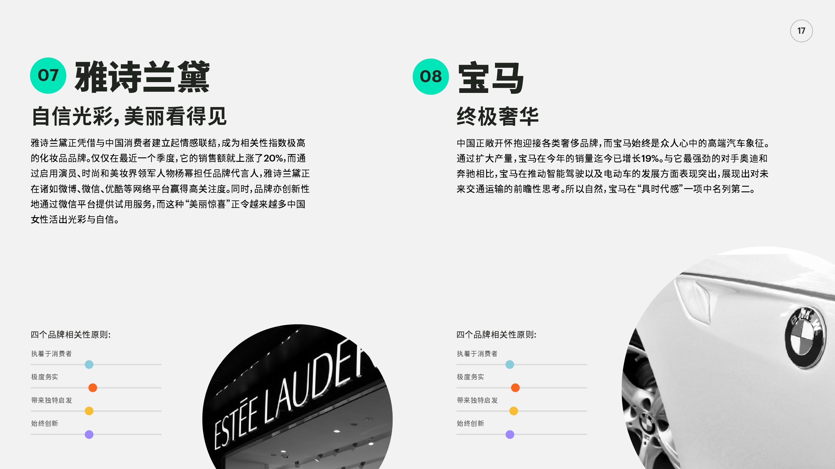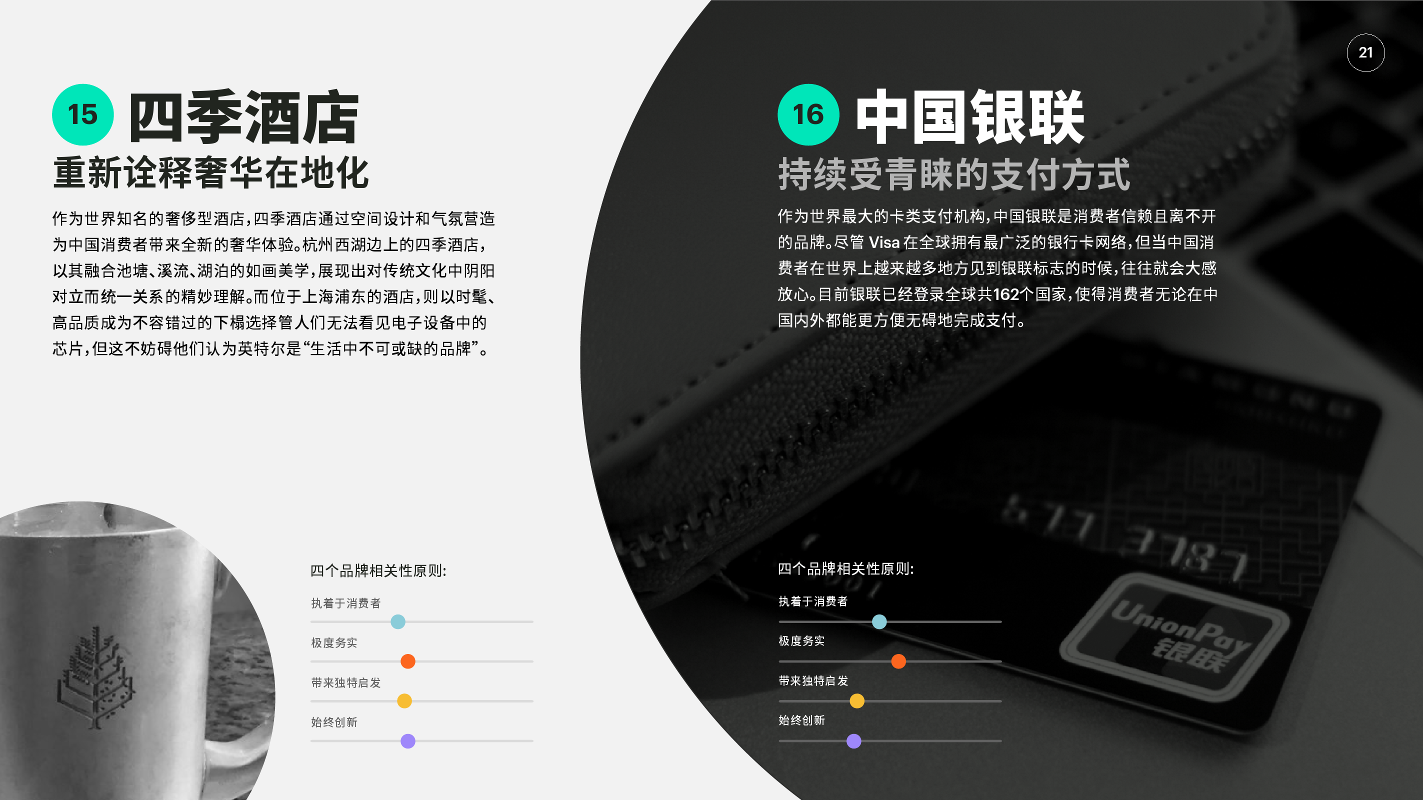 今年的榜单延续去年的趋势,共有10个品牌来自豪华酒店业以及汽车业,包括万豪国际(第9名)、W酒店(第11名)以及宝马(第8名)等。上述品牌凭借优雅、精致的体验和设计,为消费者带来独特启发,从而超越大多数品牌,在我们的榜单上占据高位。而在100强榜单中,也有共计约20个来自酒店业和汽车业的品牌。