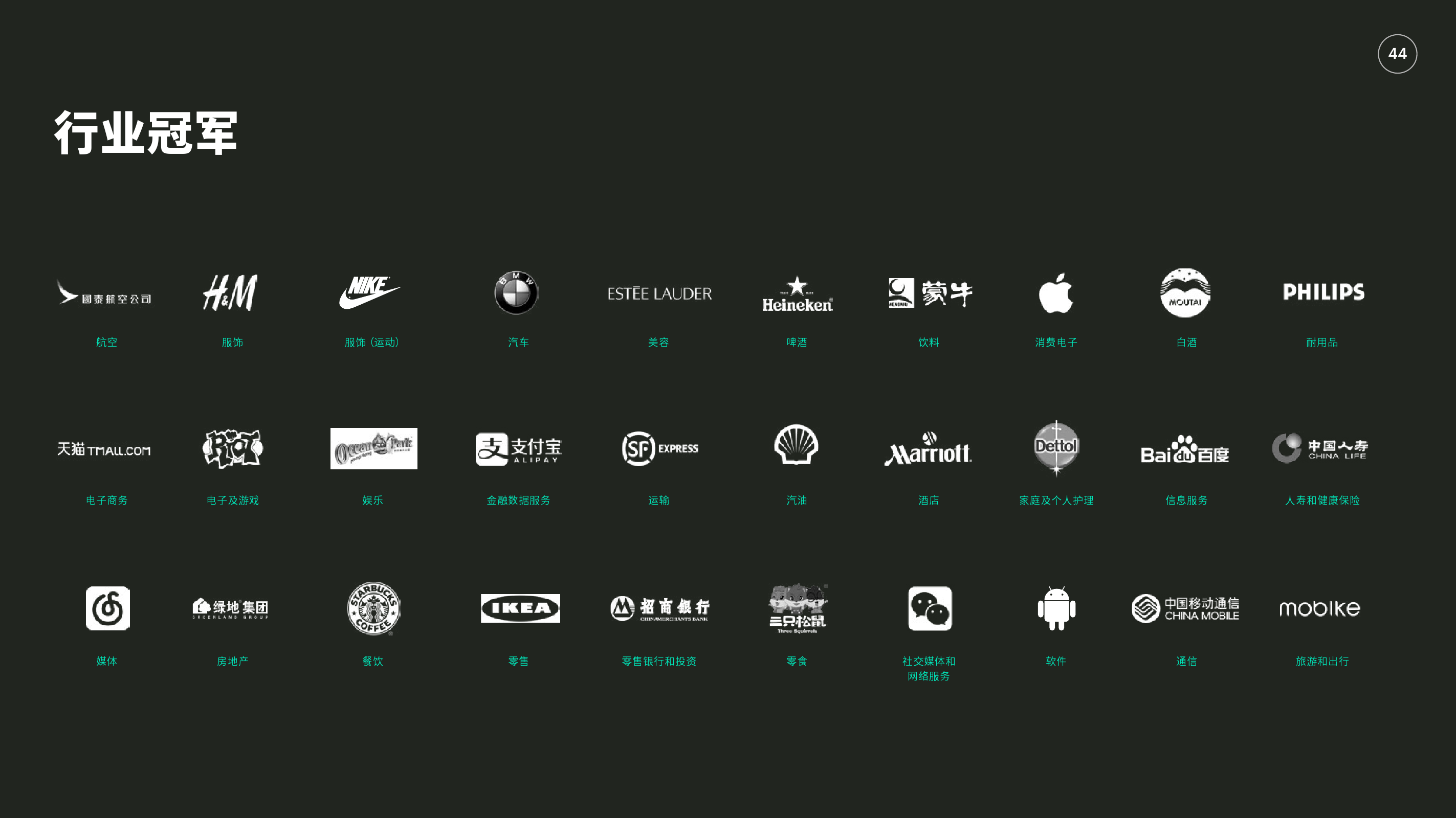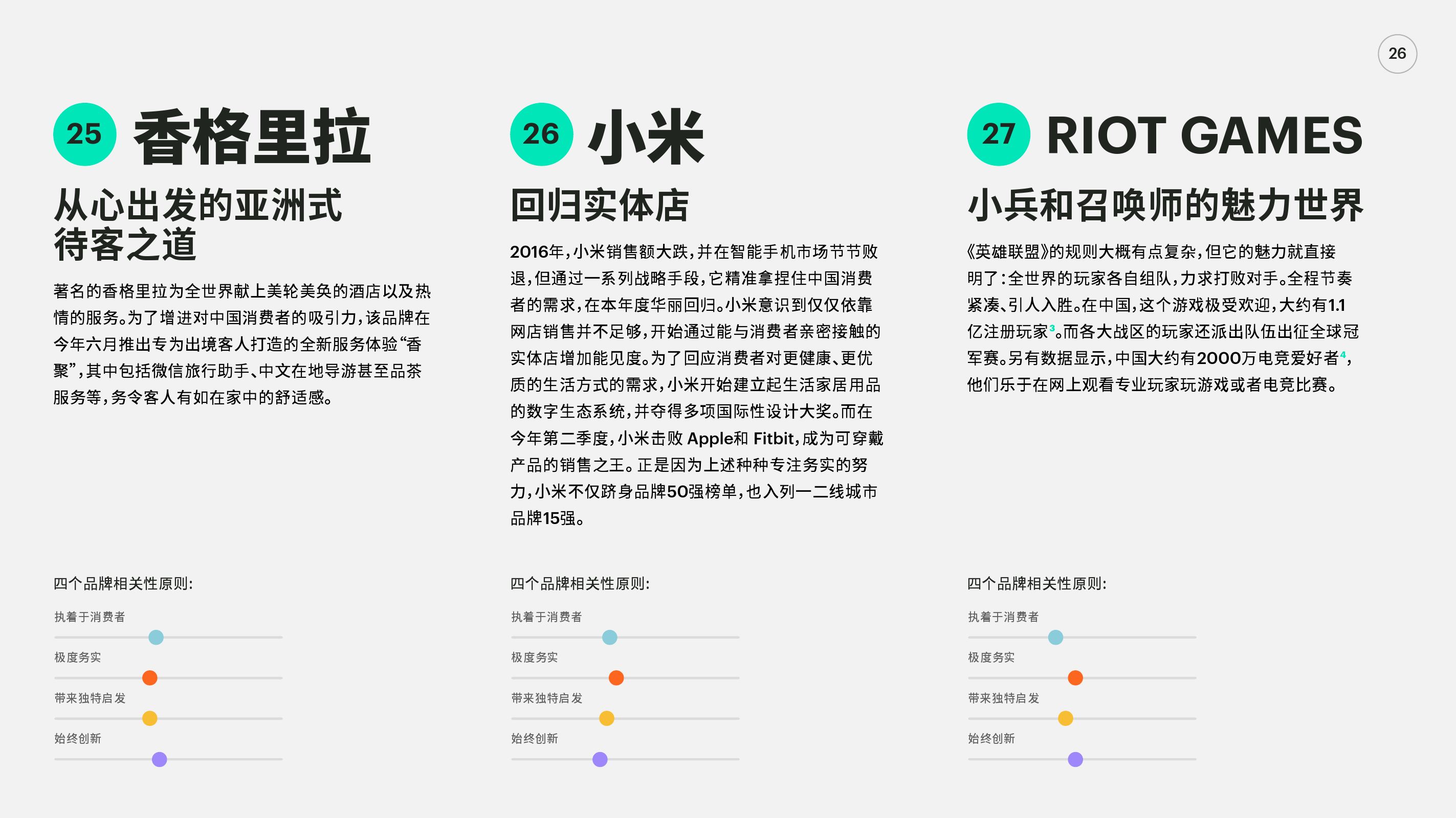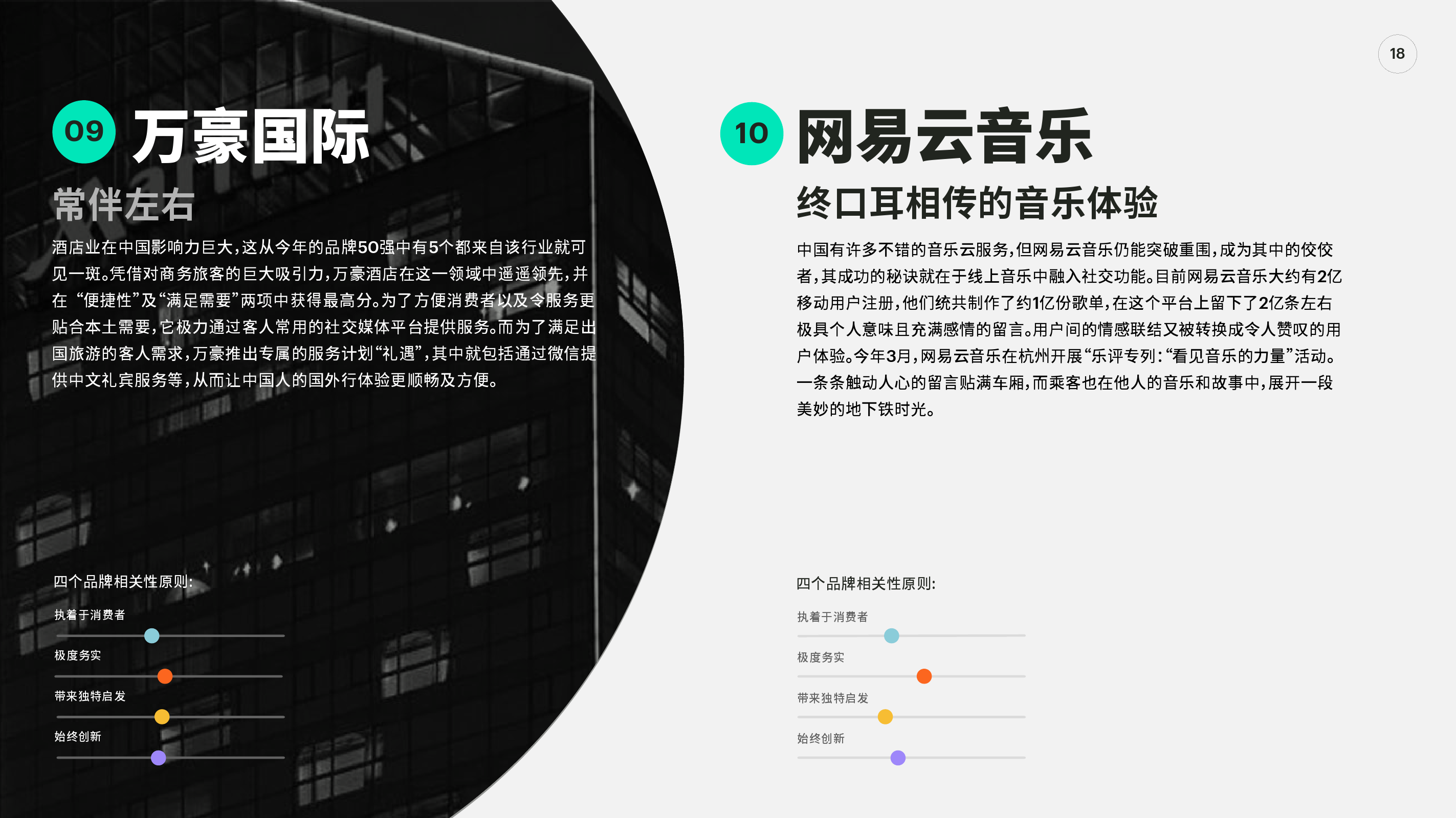 在2017年的50强榜单中,与休闲娱乐及运动相关的品牌数量已经超过金融服务业、航空业、美容行业以及餐饮业品牌的总和。在今年的50强榜单中,超过五分之一的品牌都来自音乐行业(网易云音乐,第10名)、游戏行业(Riot Games,第27名;暴雪娱乐,第29名)、休闲娱乐业(海洋公园,第21名;迪士尼,第42名)以及运动产业(耐克,第6名;阿迪达斯,第20名)。