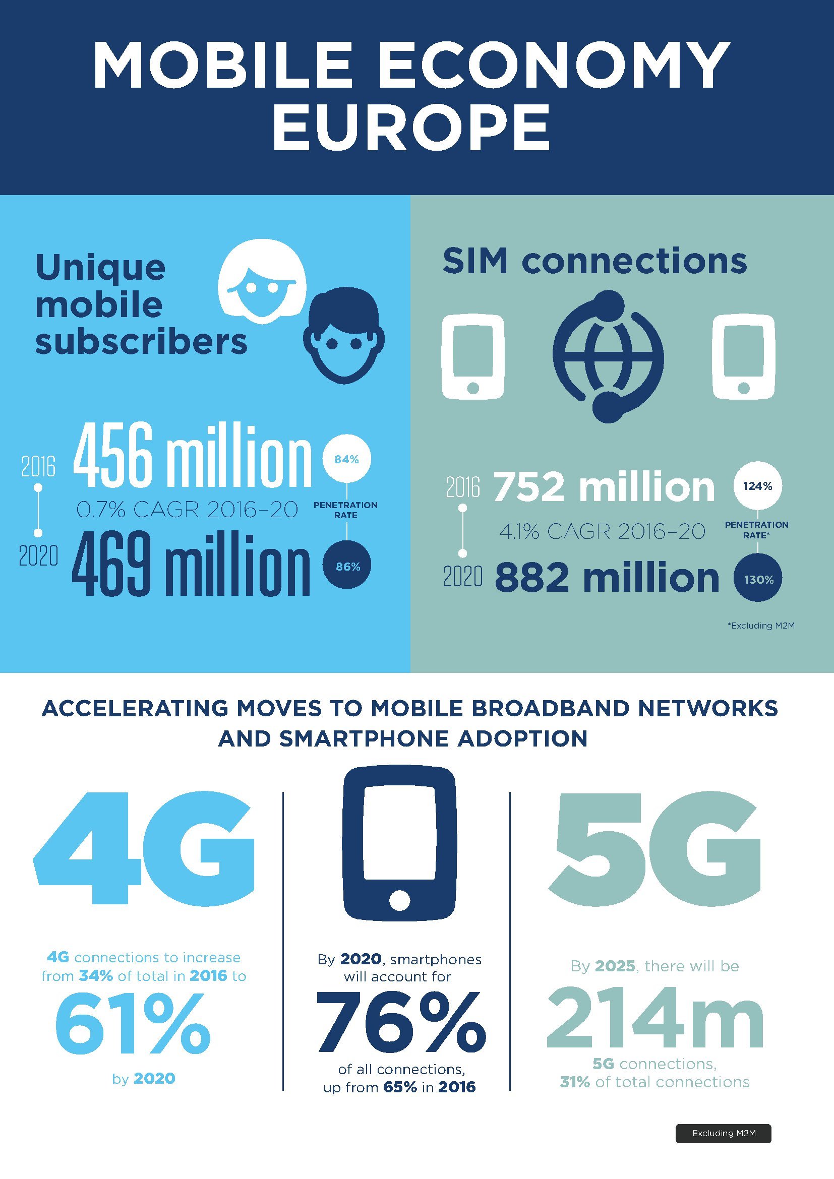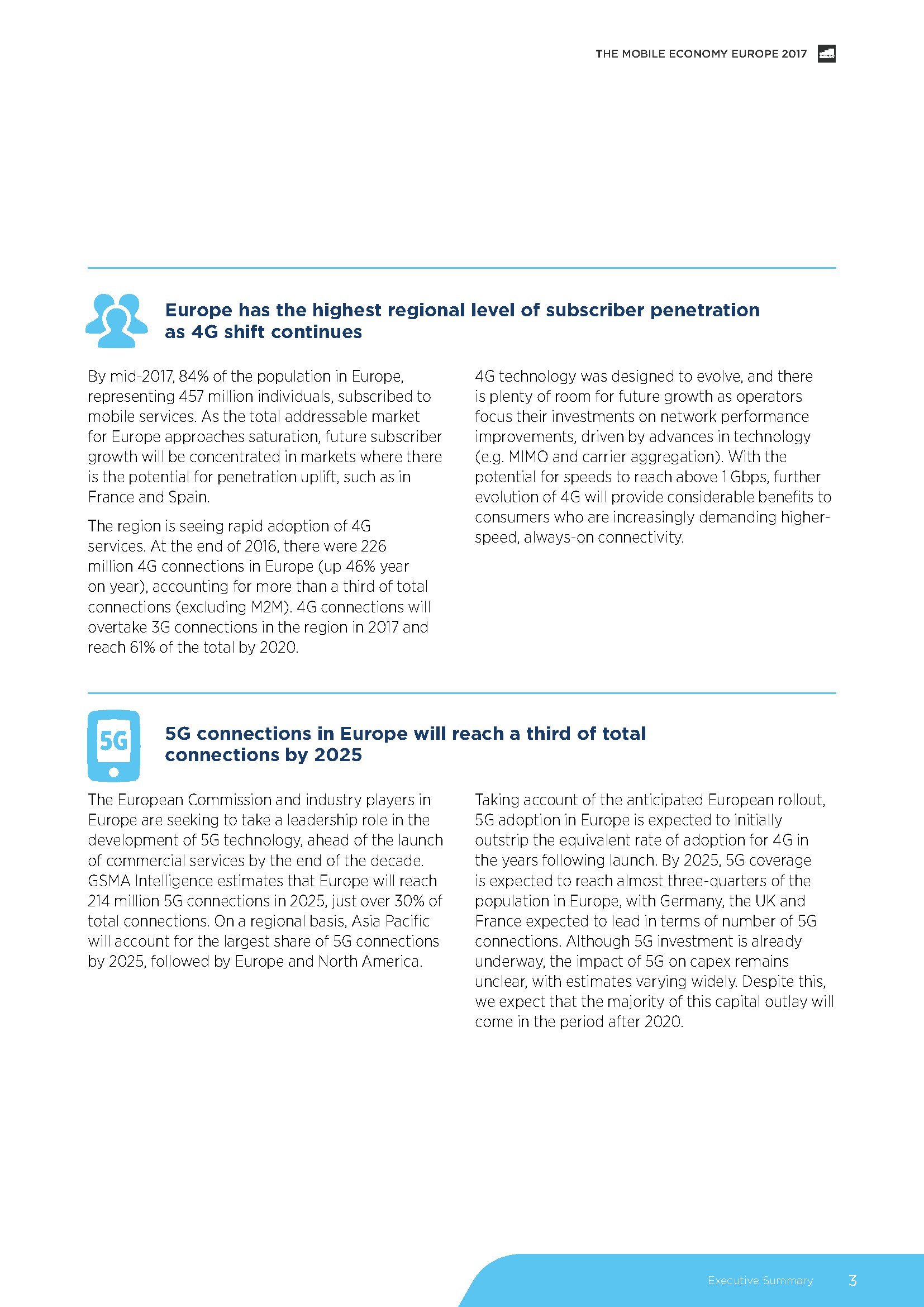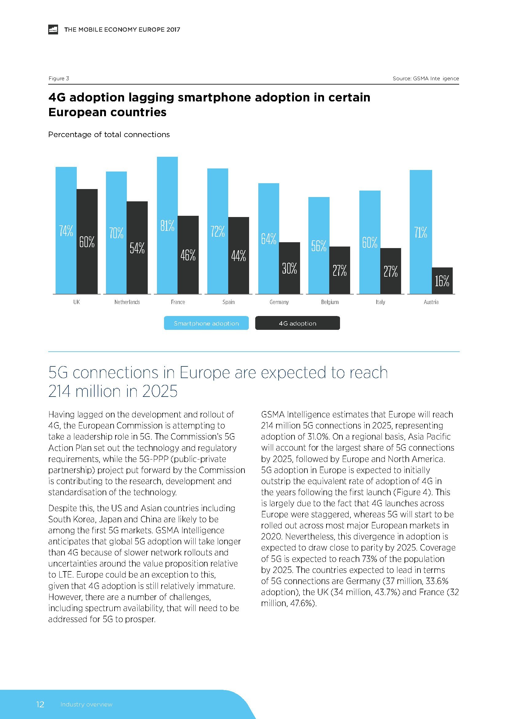 GSMA发布了“2017年欧洲移动经济报告”,预测2025年,5G将占欧洲移动连接的30%。