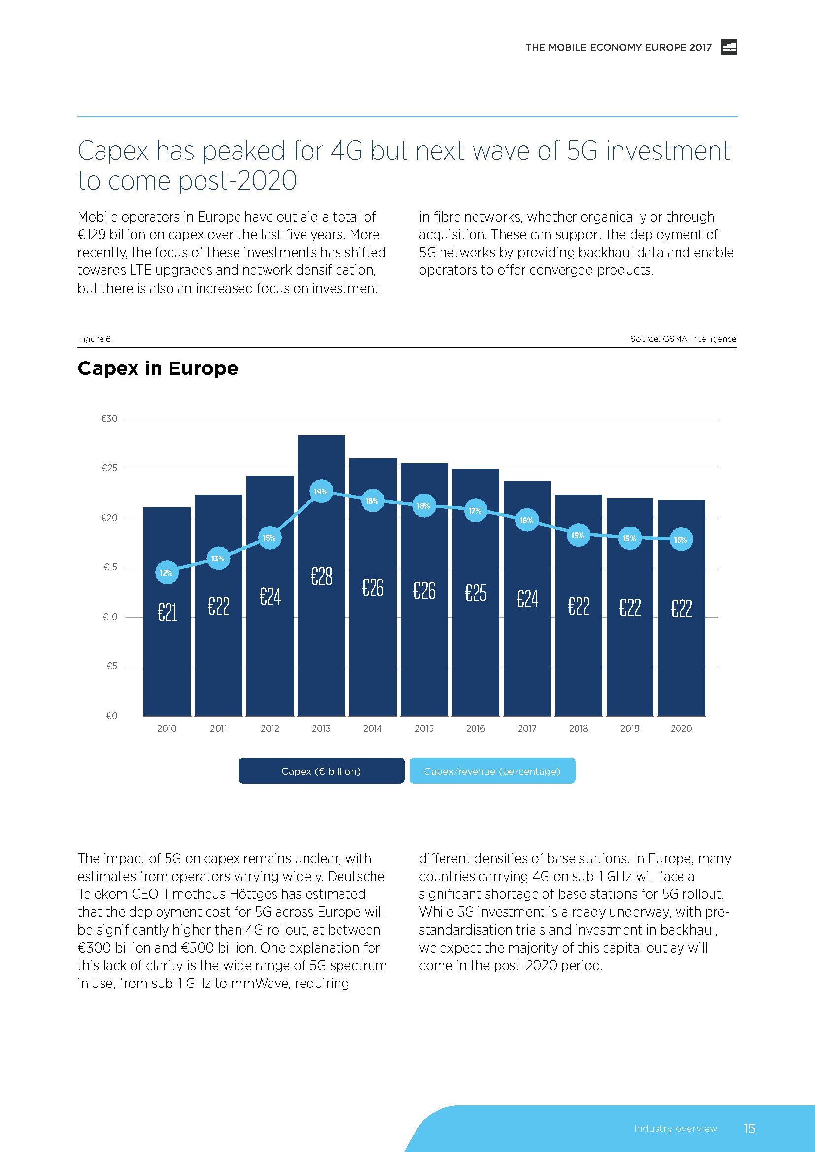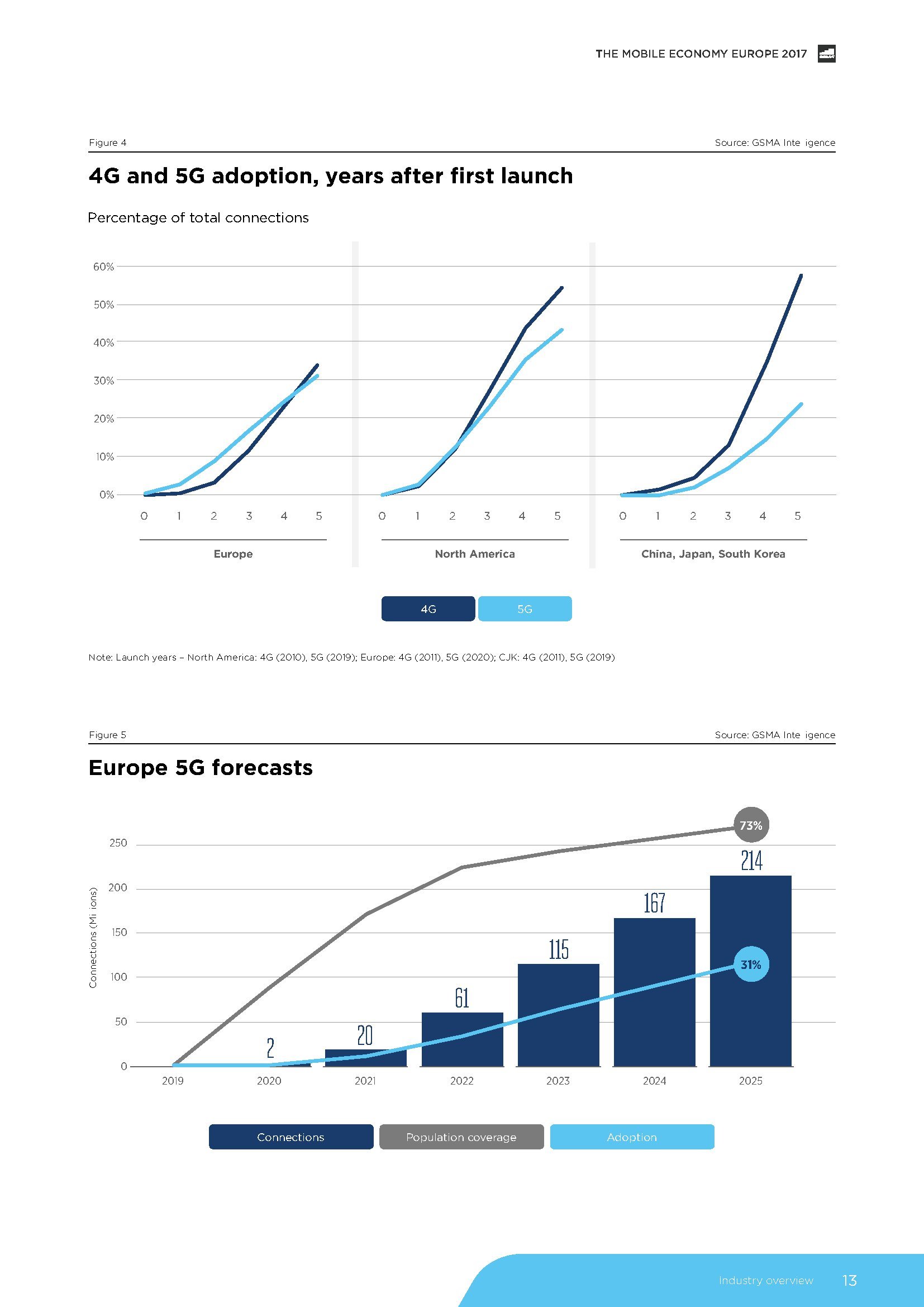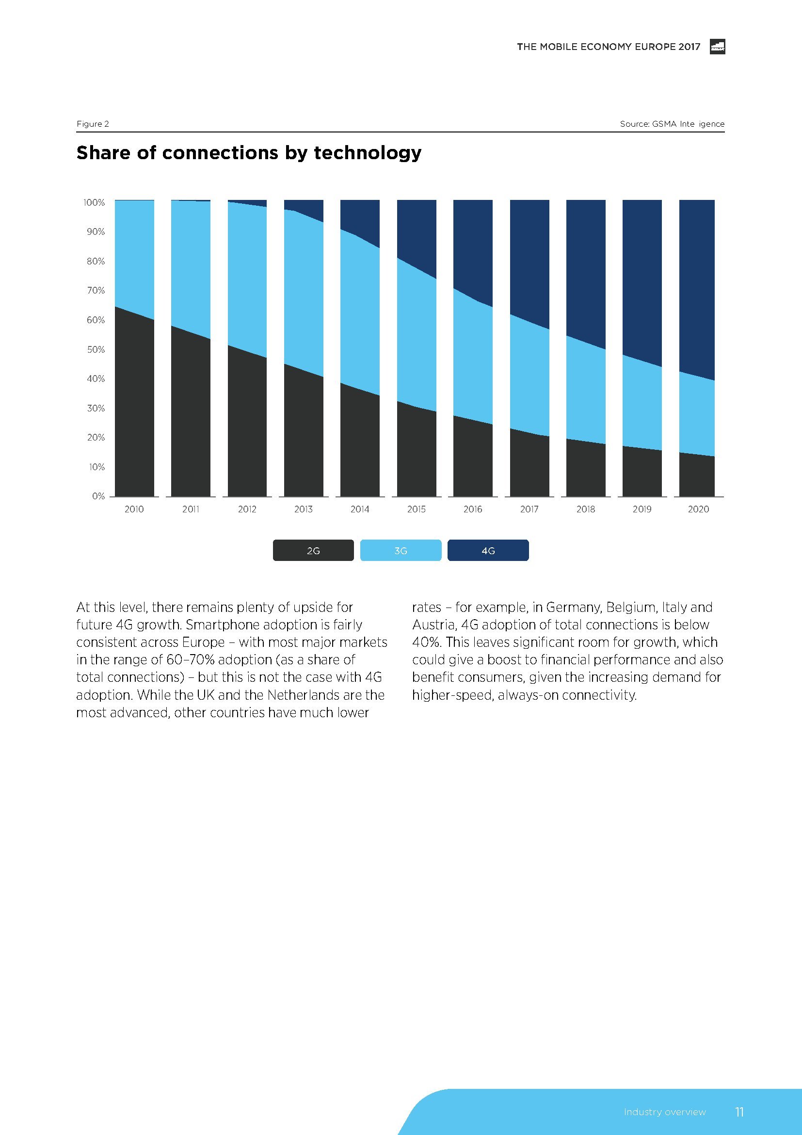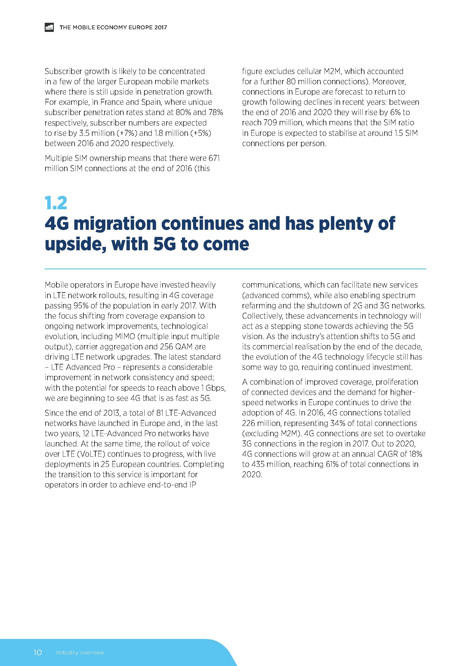 GSMA发布了“2017年欧洲移动经济报告”,预测2025年,5G将占欧洲移动连接的30%。