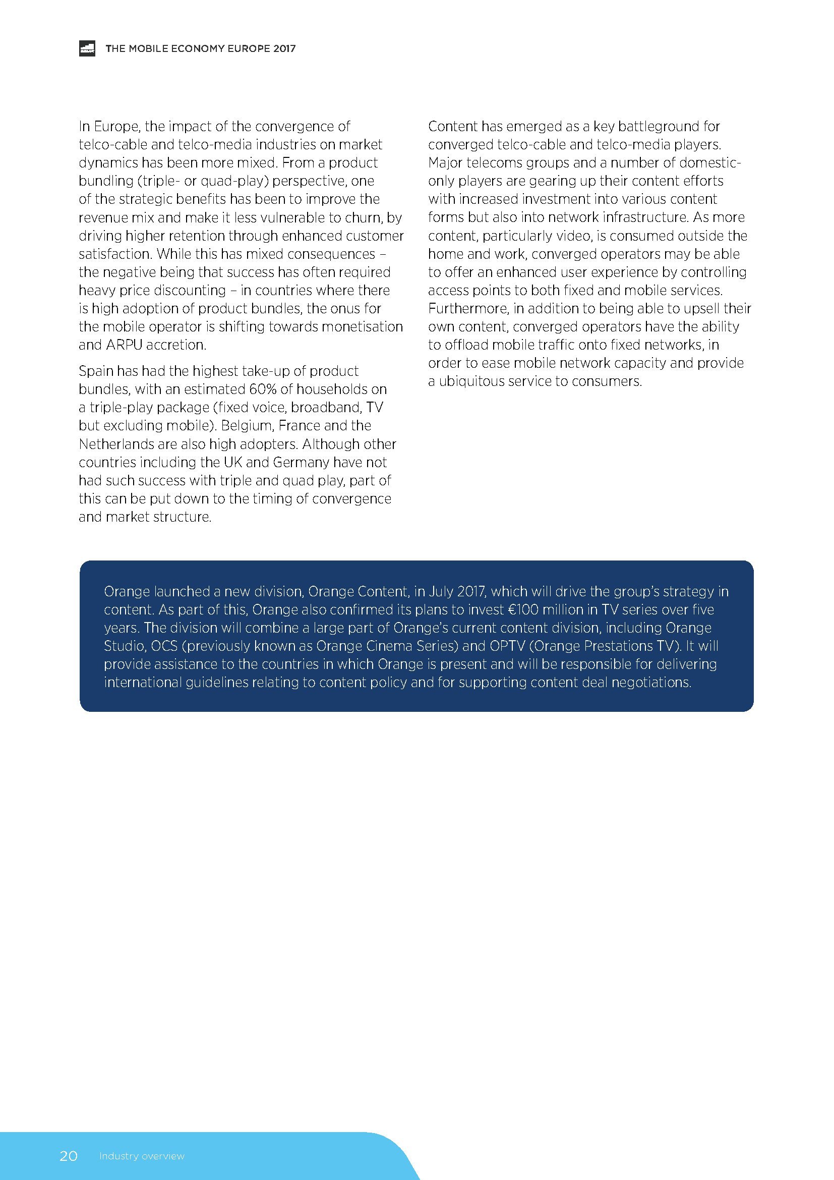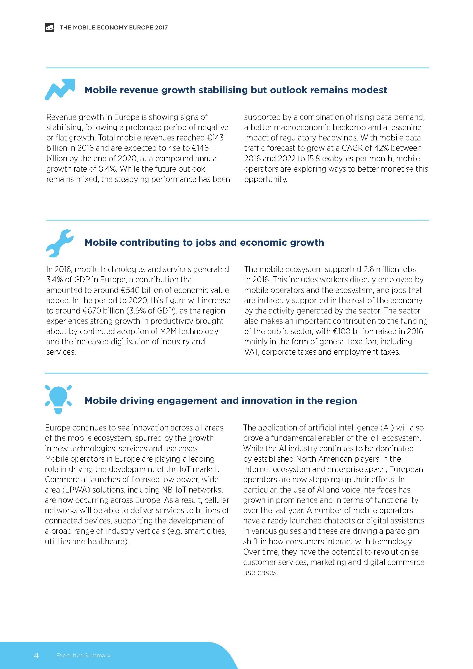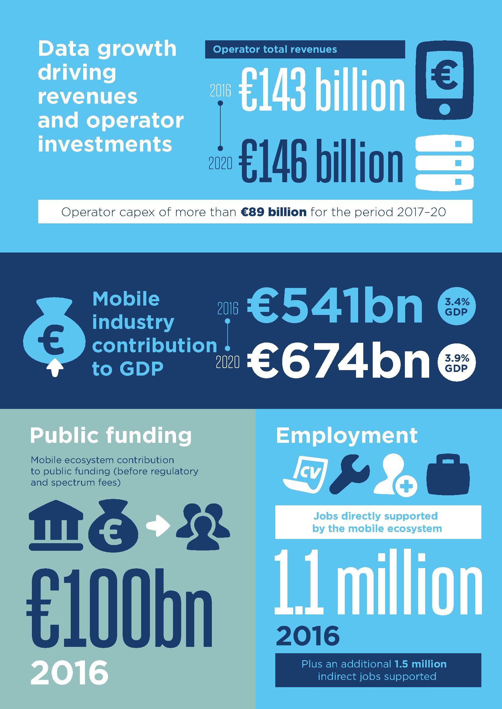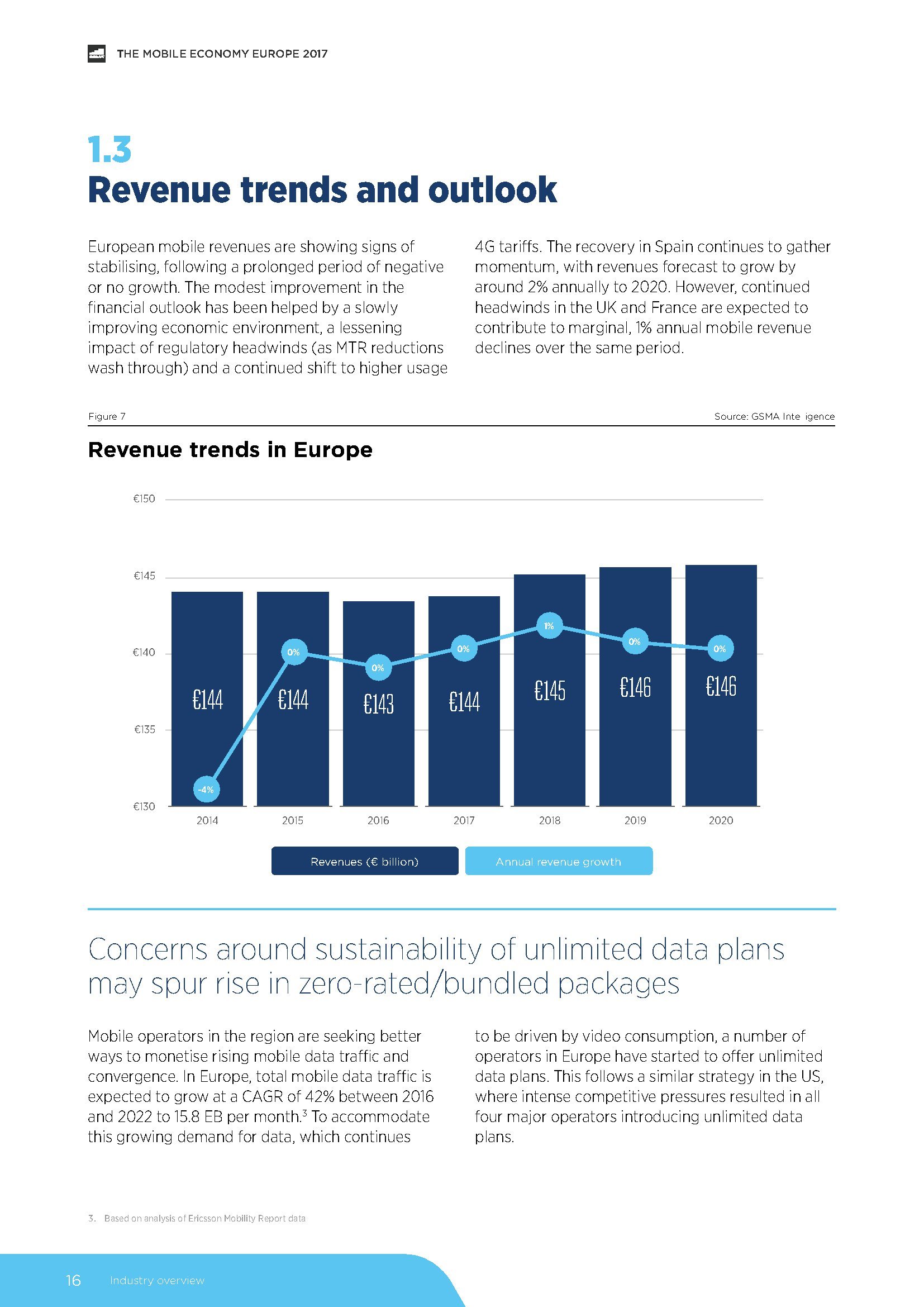 目前,欧洲移动收入增长呈现稳定迹象。2016年,欧洲移动运营商的收入达到1.43亿欧元,预计到2020年底将略微增加至1.46亿欧元。稳定的业绩归功于数据需求的上升、宏观经济状况的改善和监管压力的放松。