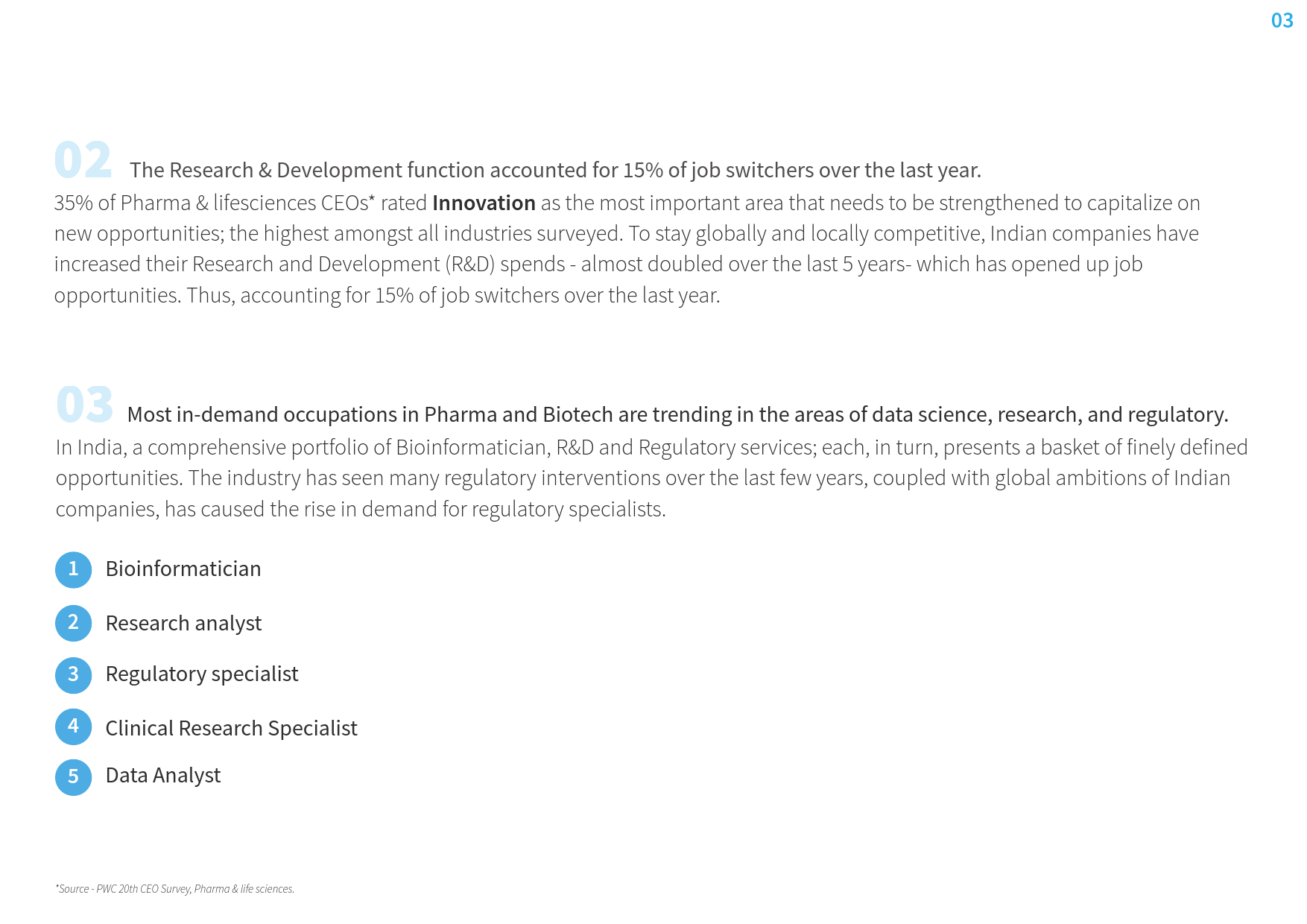 - 生物信息学、研究分析、法规监管事务、临床研究和数据分析最为炙手可热;