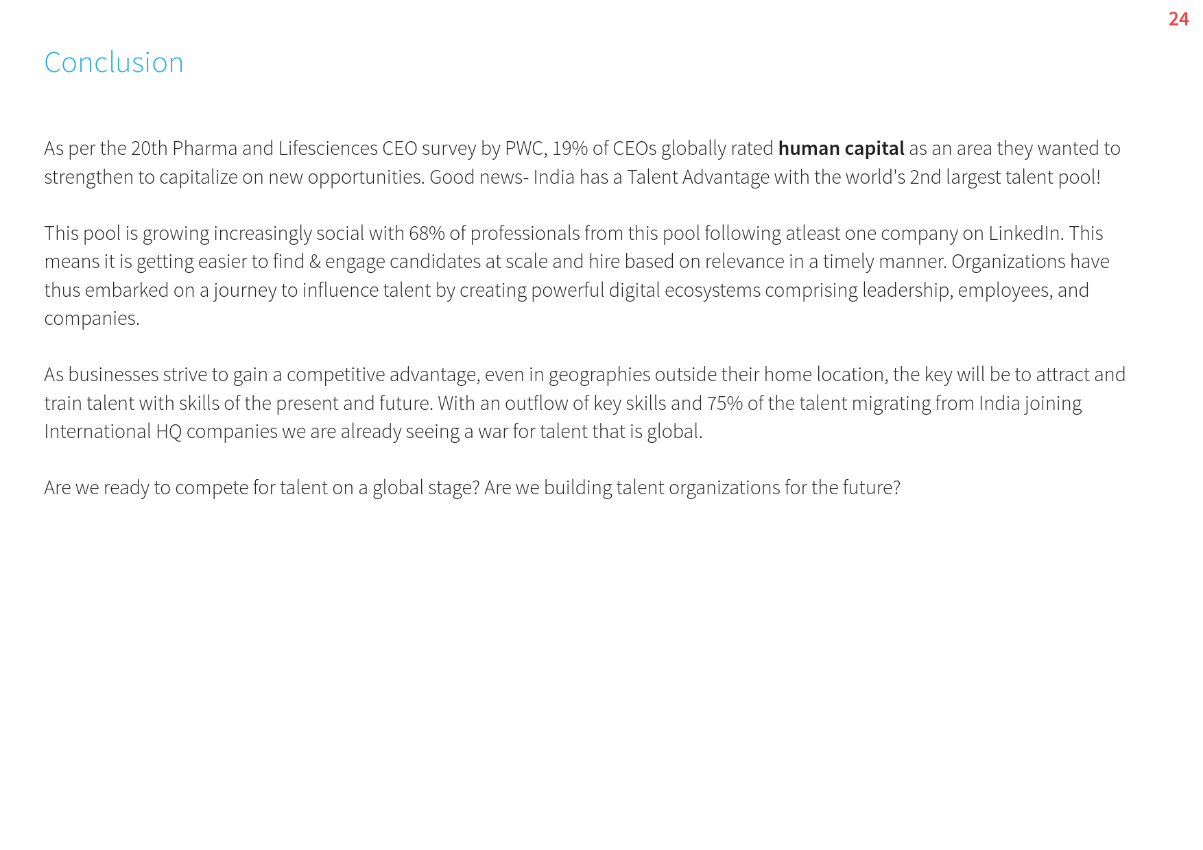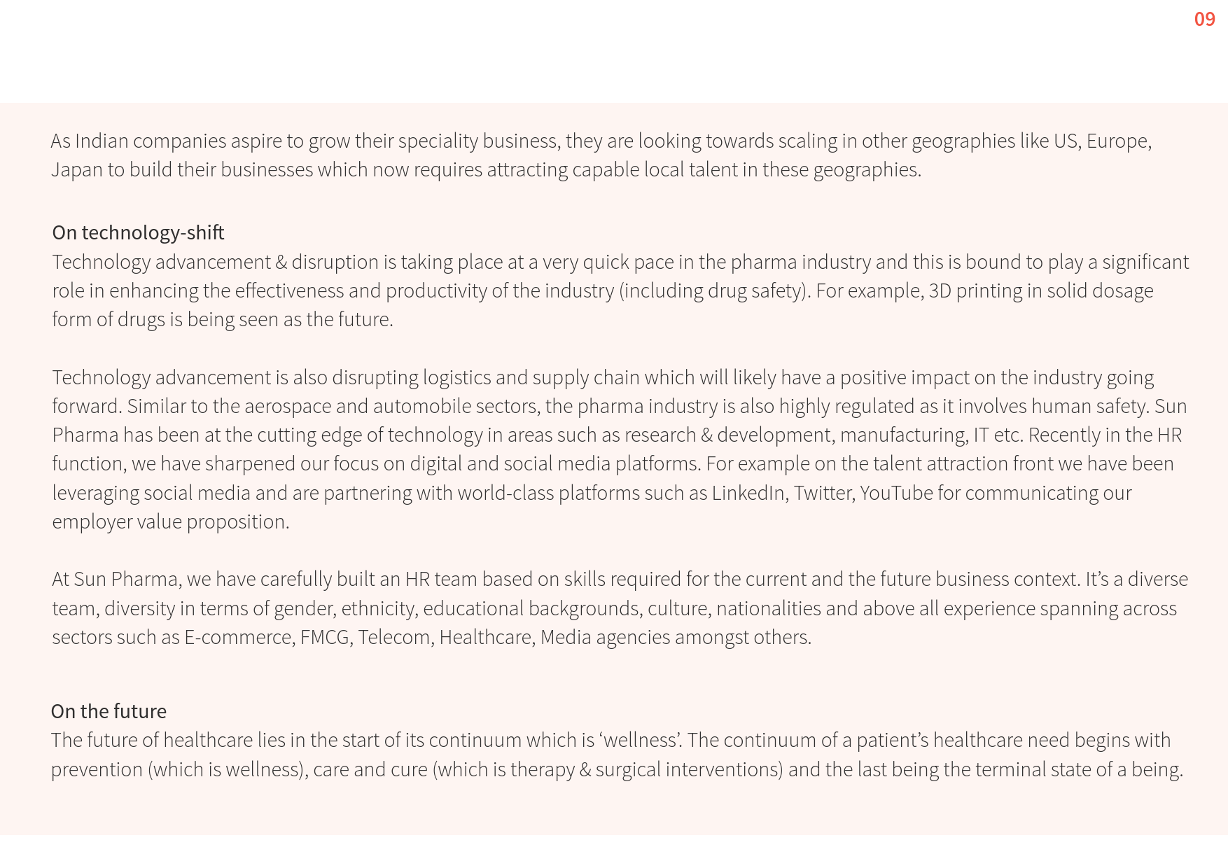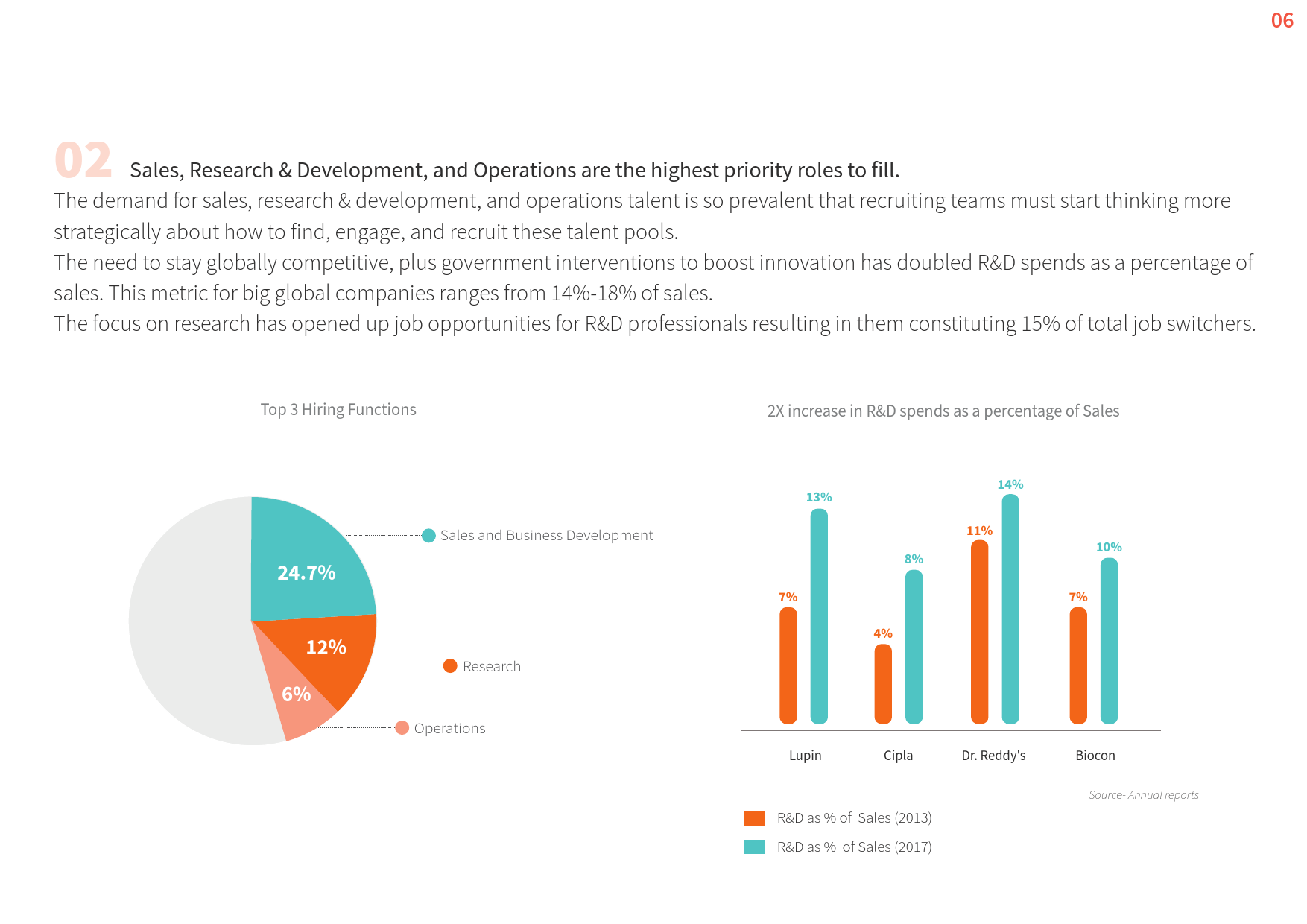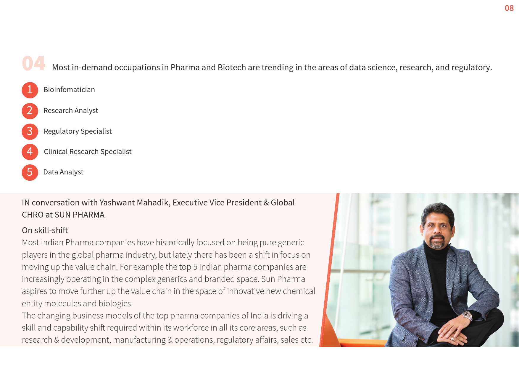 和中国生物医疗企业当前所处的阶段相类似,在国家的大力扶持下,印度企业也正由传统的仿制药生产商向价值链的上游转型。因此,不仅需要生物化学领域的创新人才带领企业获得专业上的突破,同样需要诸如电子商务、零售、传媒等方面的跨界人才,帮助企业搭建面向未来的生态体系。
