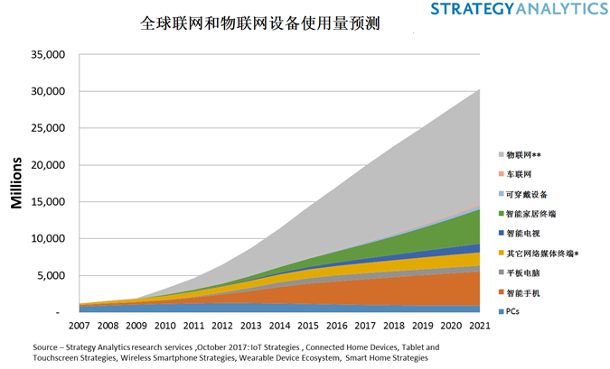Strategy Analytics首席分析师暨报告作者David Mercer表示:“最初的联网设备PC现在只占全部市场的5%,这说明了互联网如何渗透到我们生活的诸多方面。”