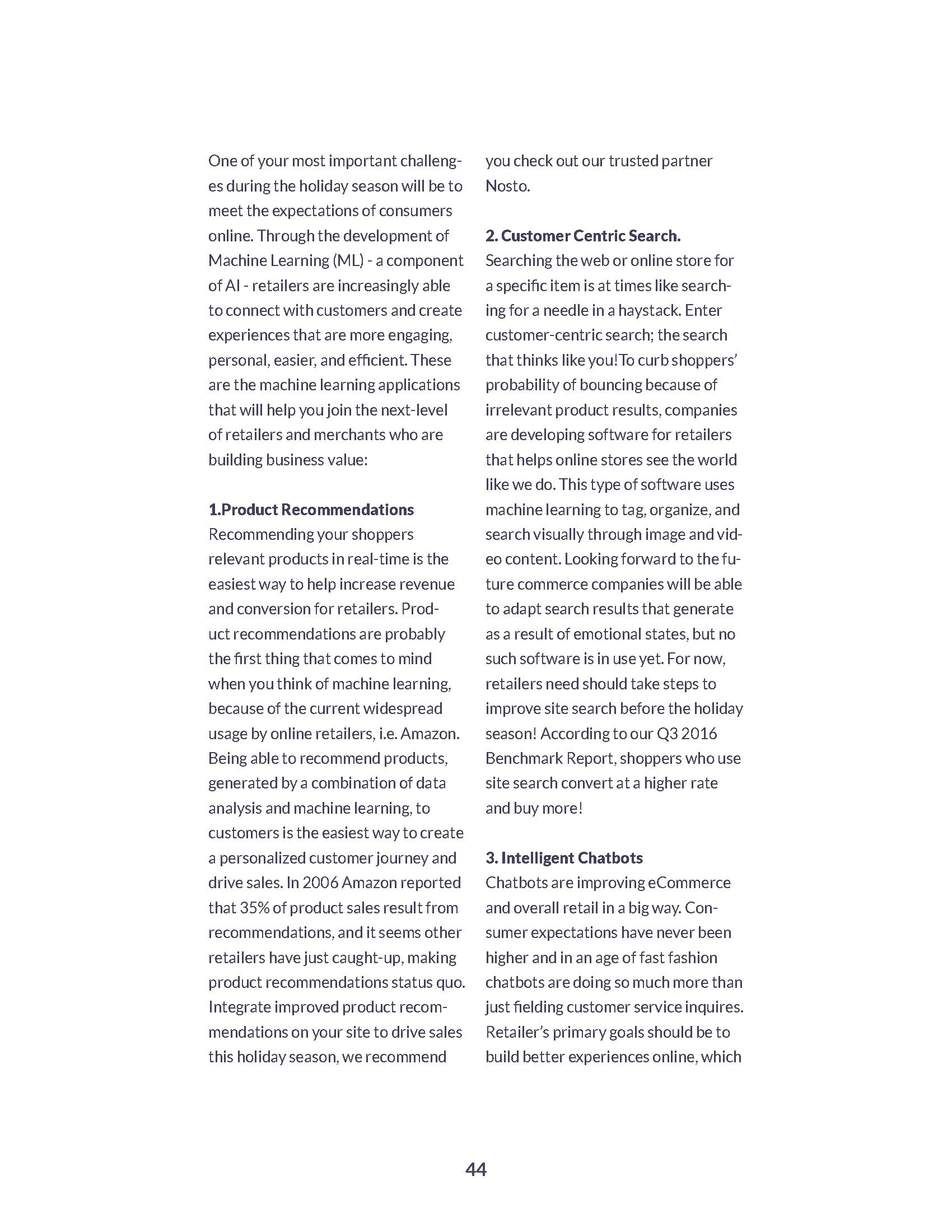 了解商务行业景观,了解自己在哪些方面领先,以及如何利用机器学习应用提高竞争力、促进繁荣。利用消费者数据从人性化的角度简化购物流程。