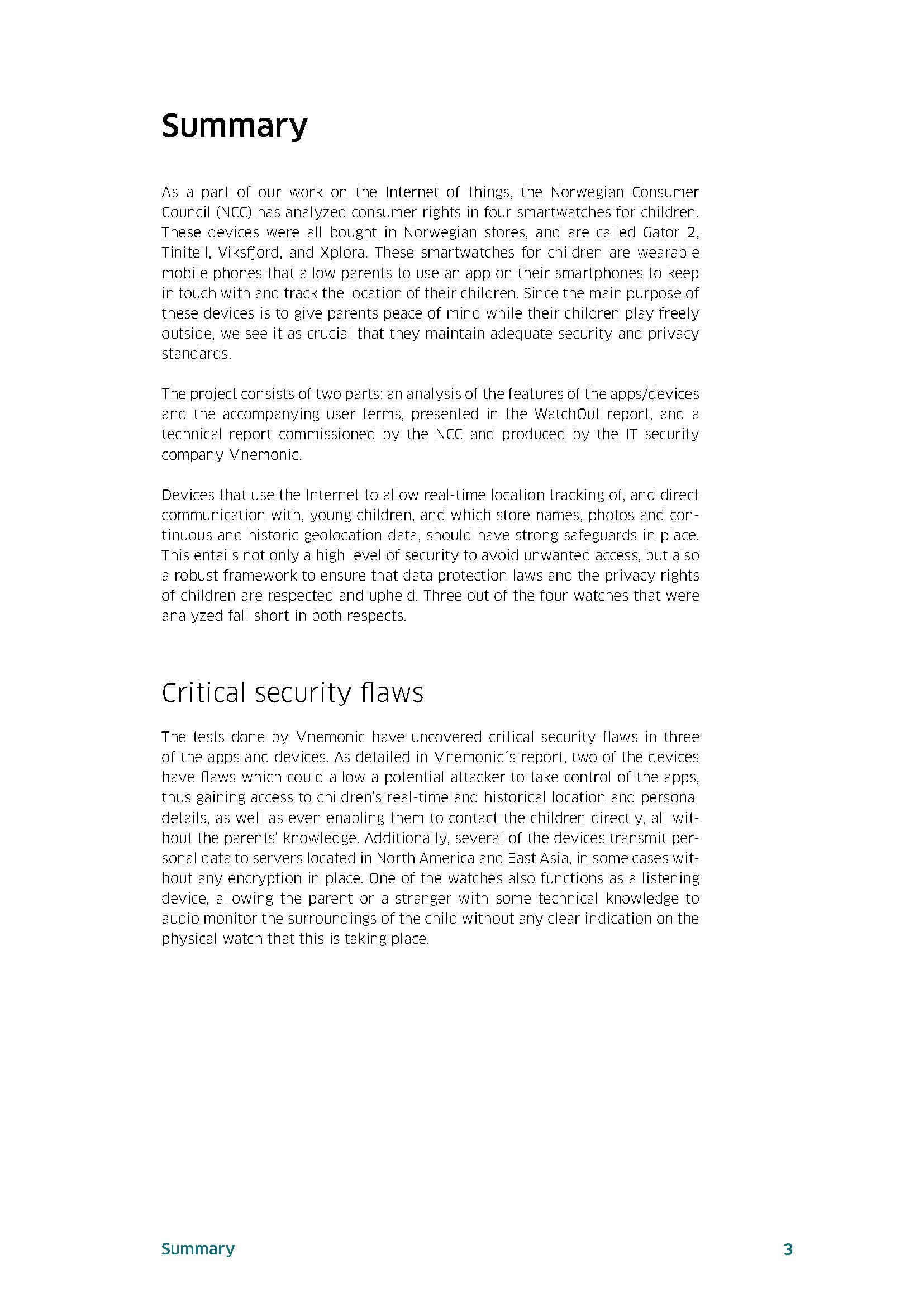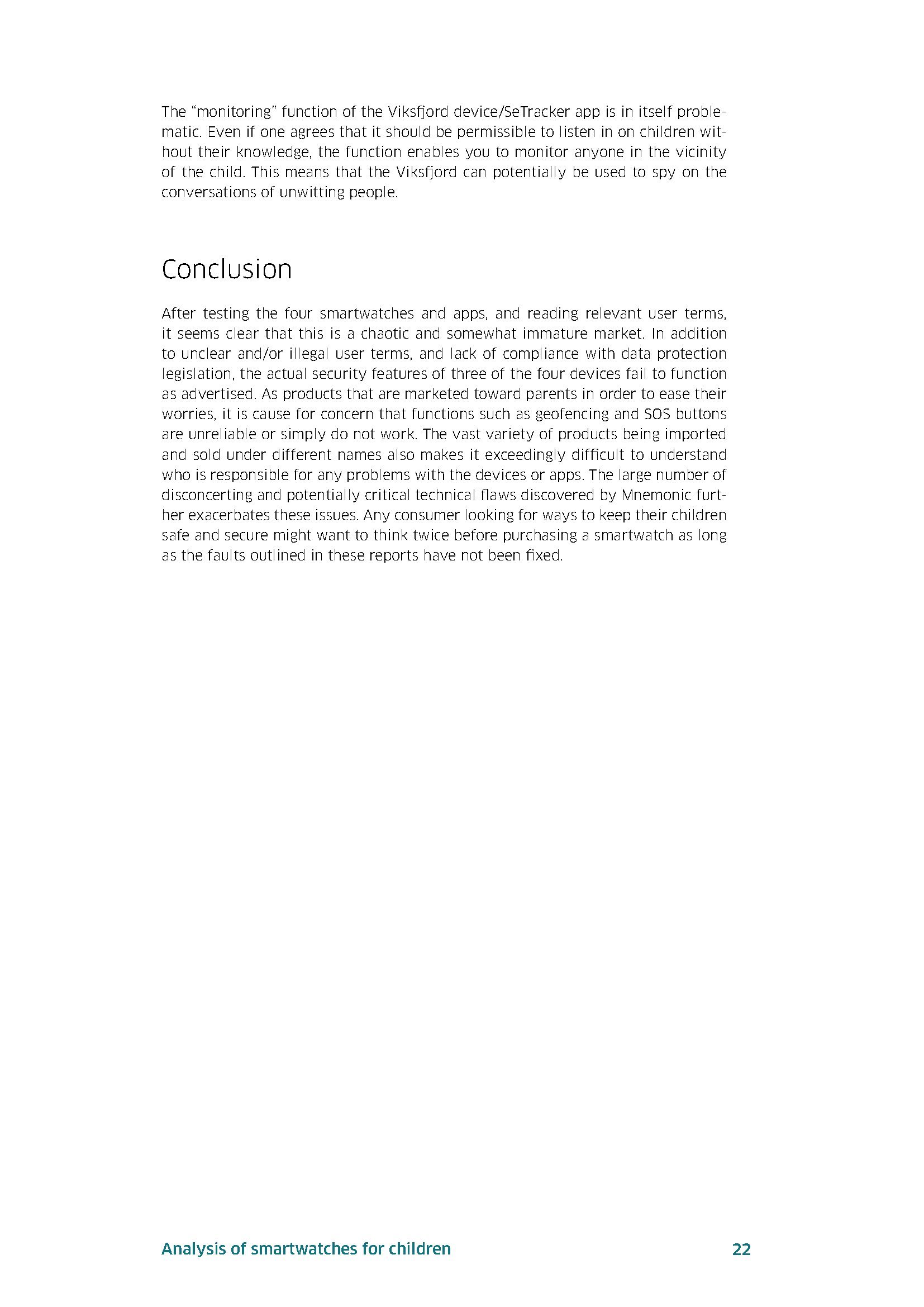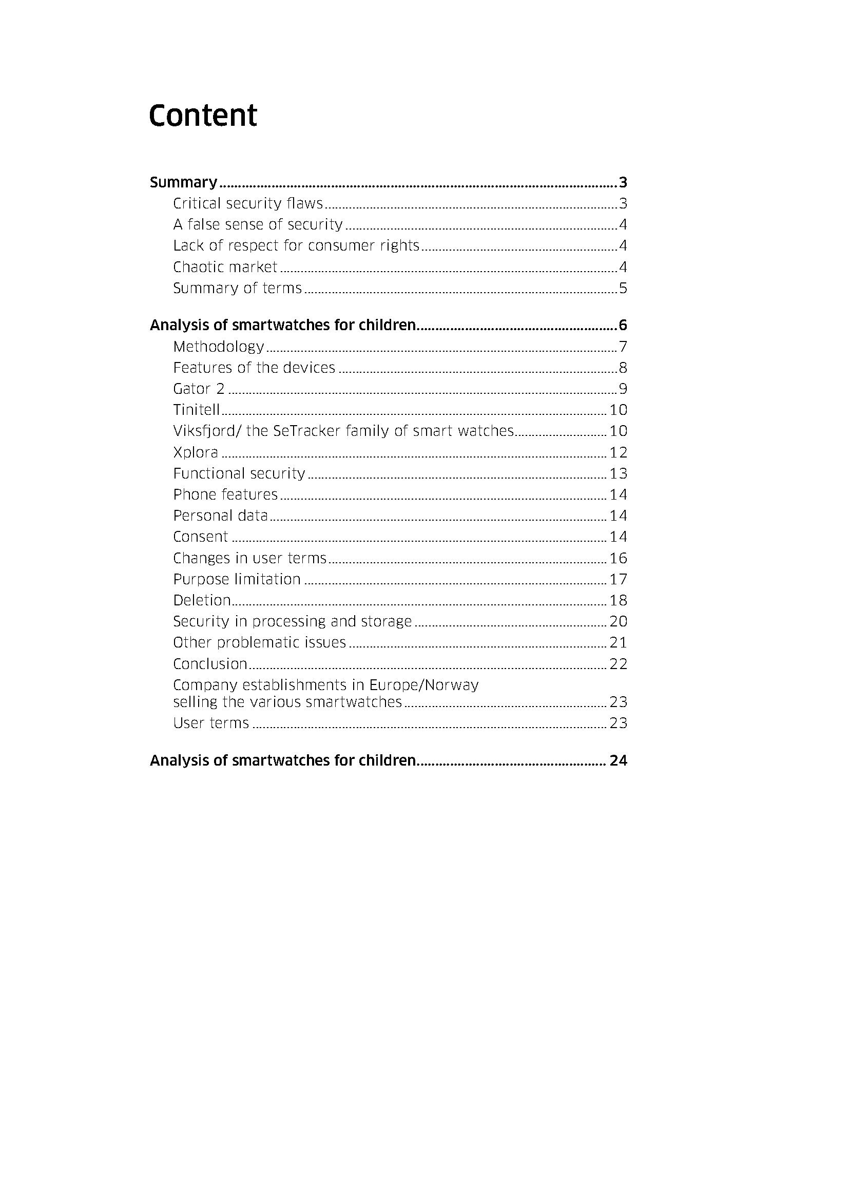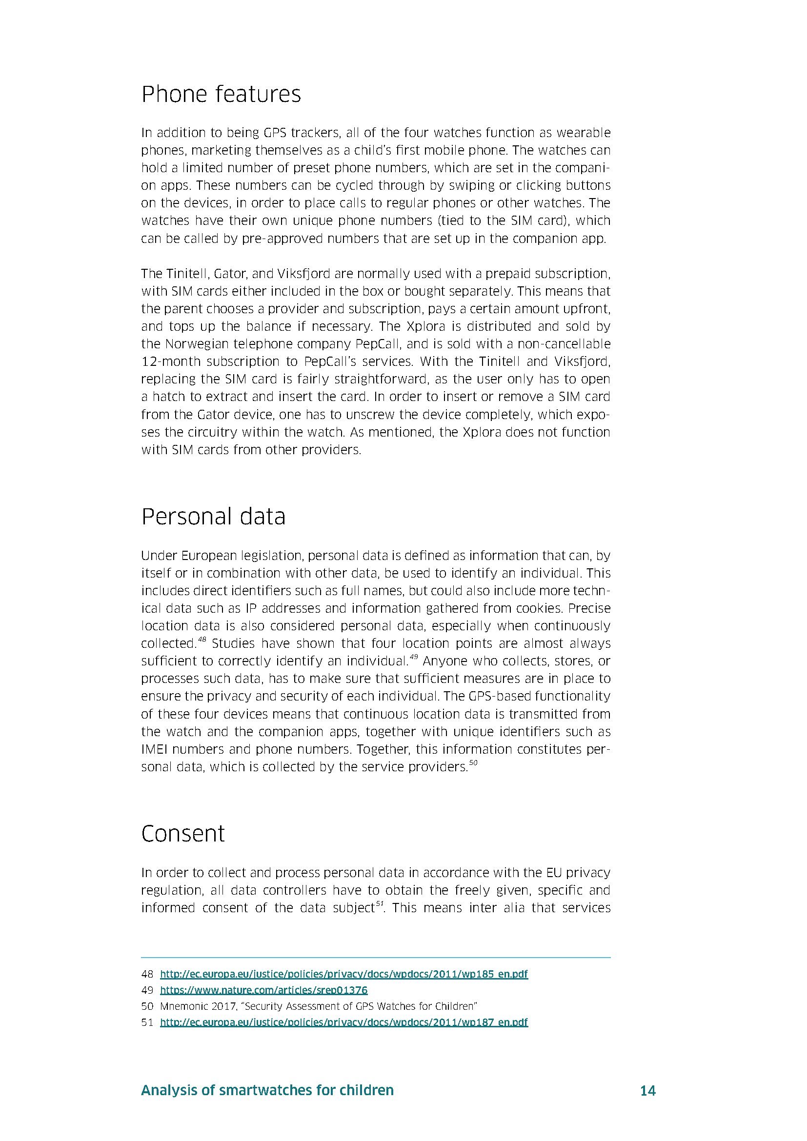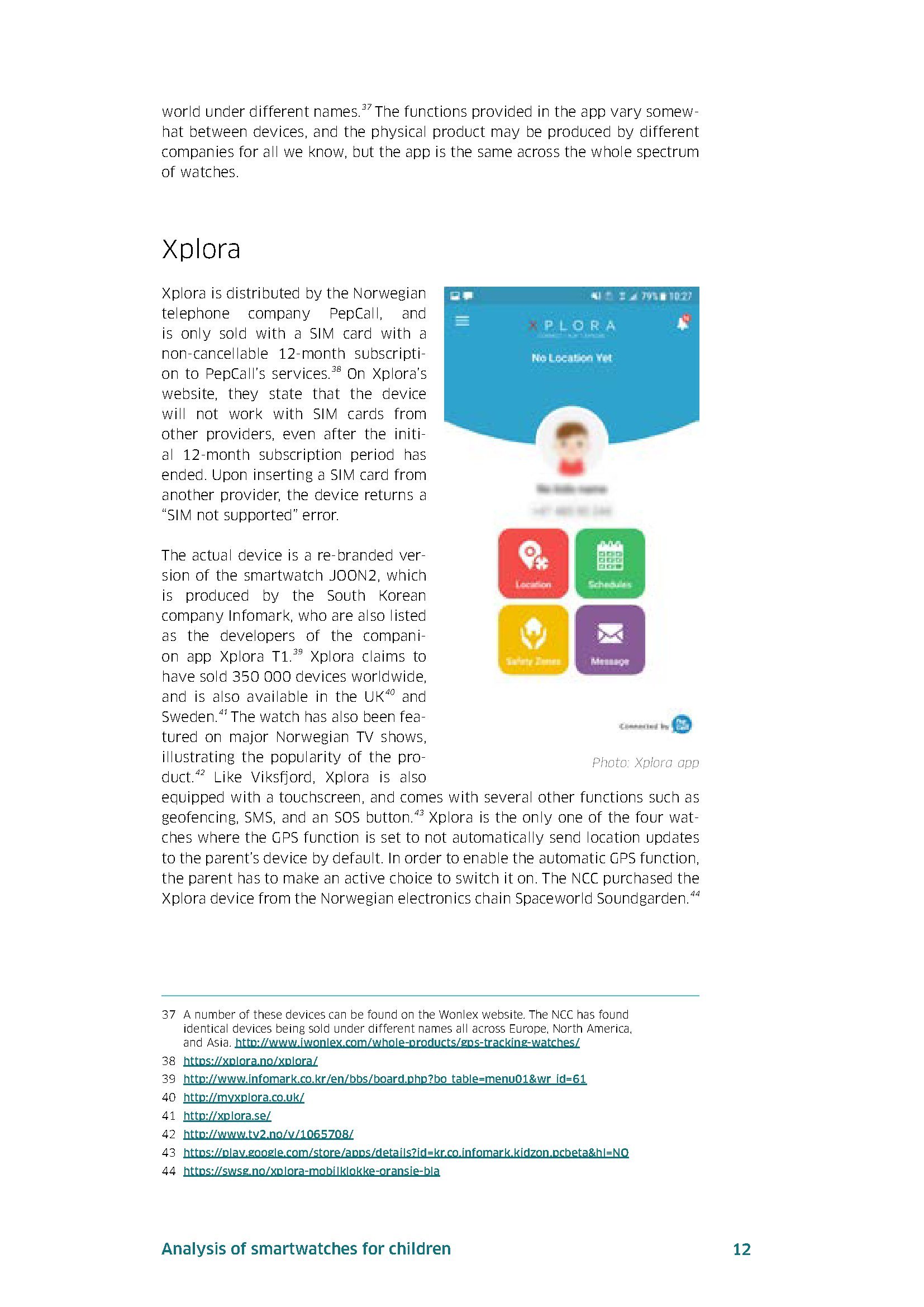 不足和不清楚的用户条款否认了消费者的基本权益,如隐私权。调查发现,只有一个服务在收集数据时征求同意,没有儿童智能手表承诺更改条款时予以告知,而且也无法从服务中删除用户帐户。Xplora上至少有一个应用允许将儿童个人数据用于营销目的。其他三个手表在如何使用儿童信息方面没有明确说明。