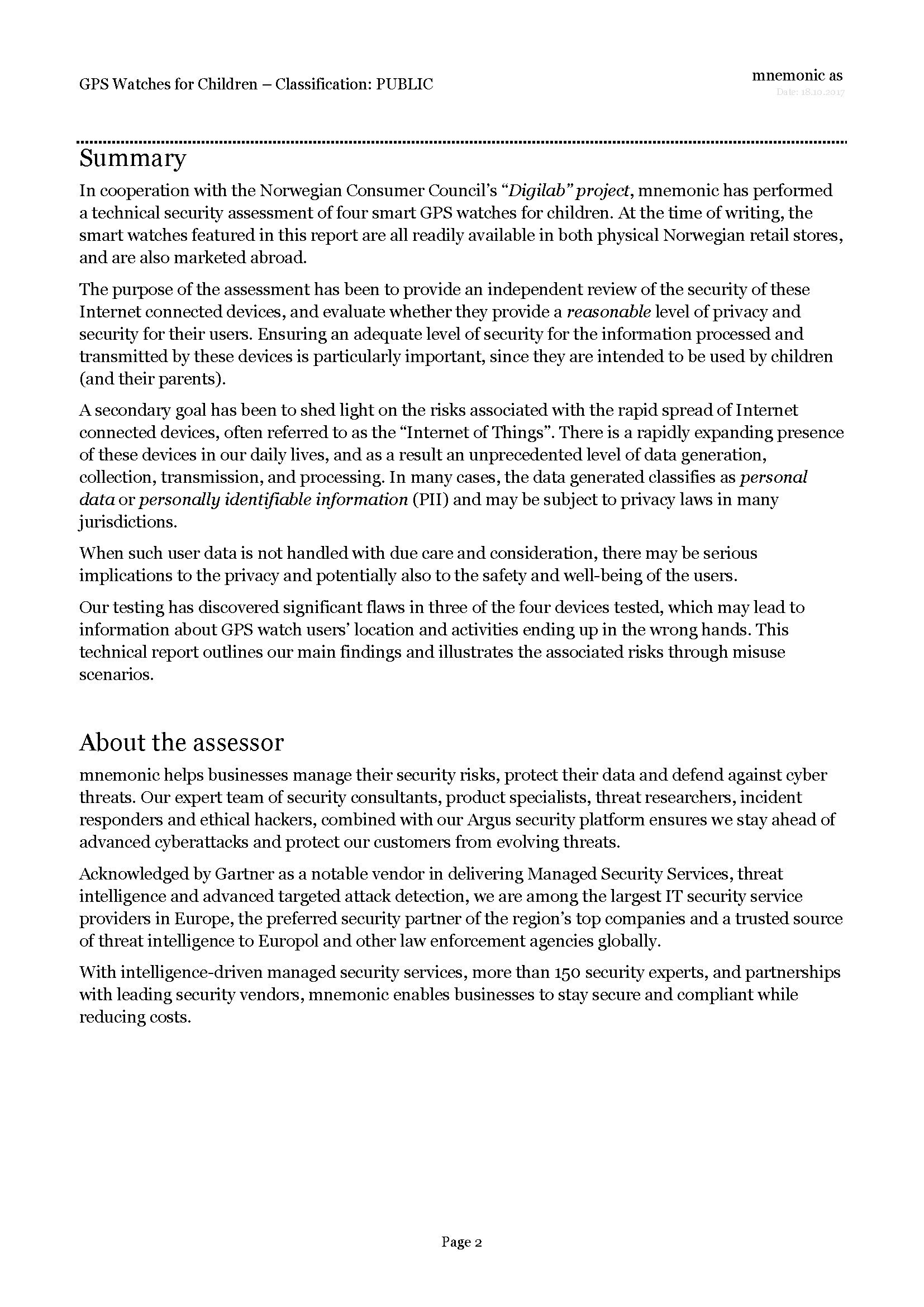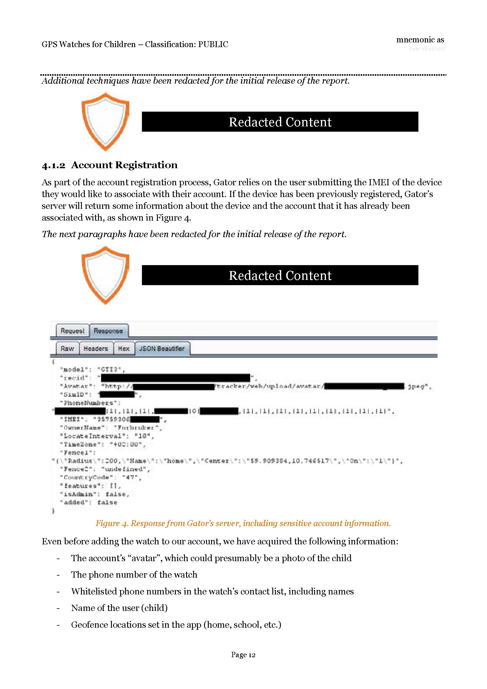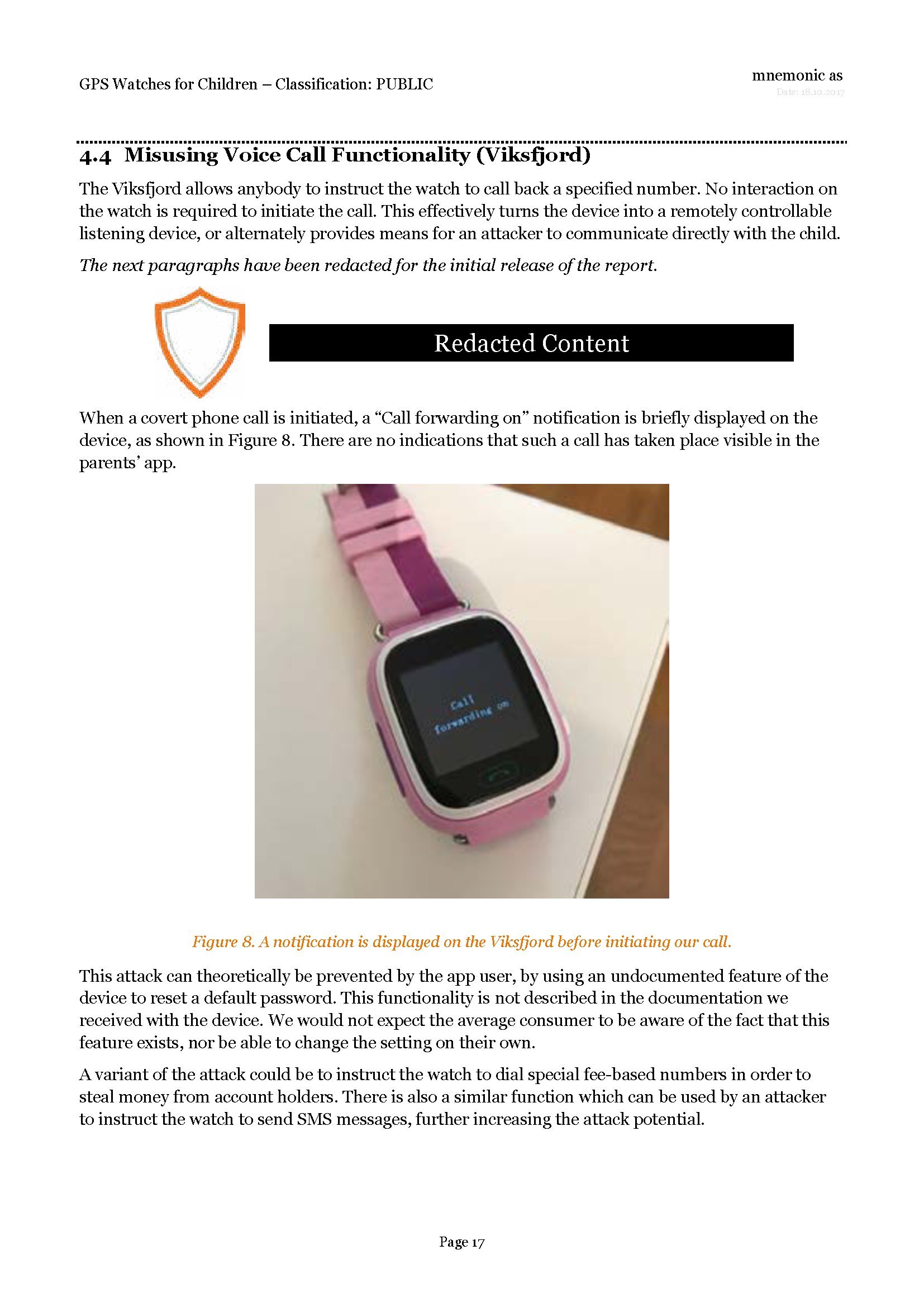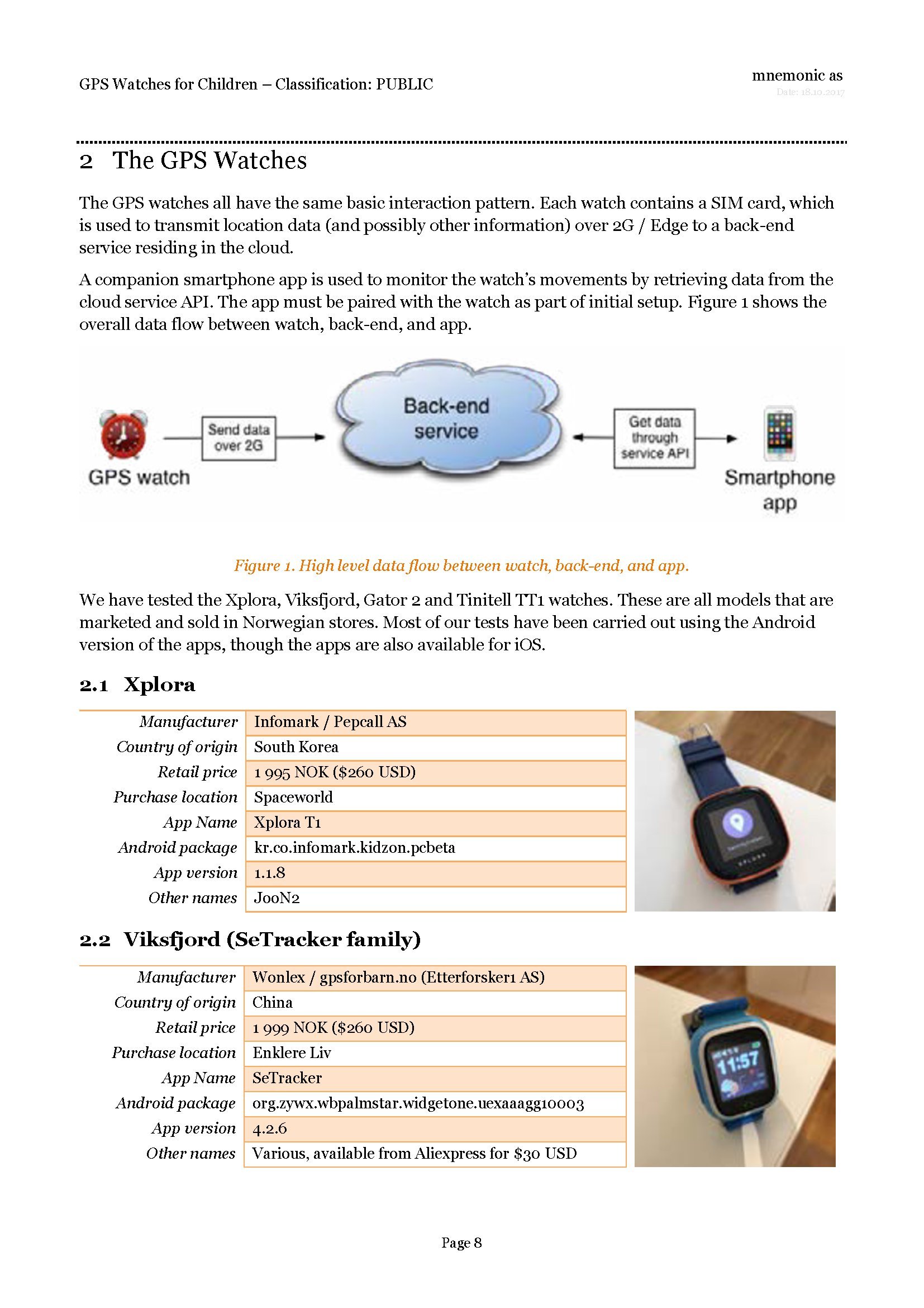 Mnemonic进行的测试发现了三个关键安全漏洞,包括应用和设备。两款儿童智能手表允许潜在攻击者控制应用、访问儿童实时和历史位置,以及其他个人隐私,甚至可以在父母不知道的前提下直接联系儿童。而且,有些设备还将儿童个人数据传输到北美和东亚的服务器,而没有任何加密。还有一款手表可以用作监听装置。