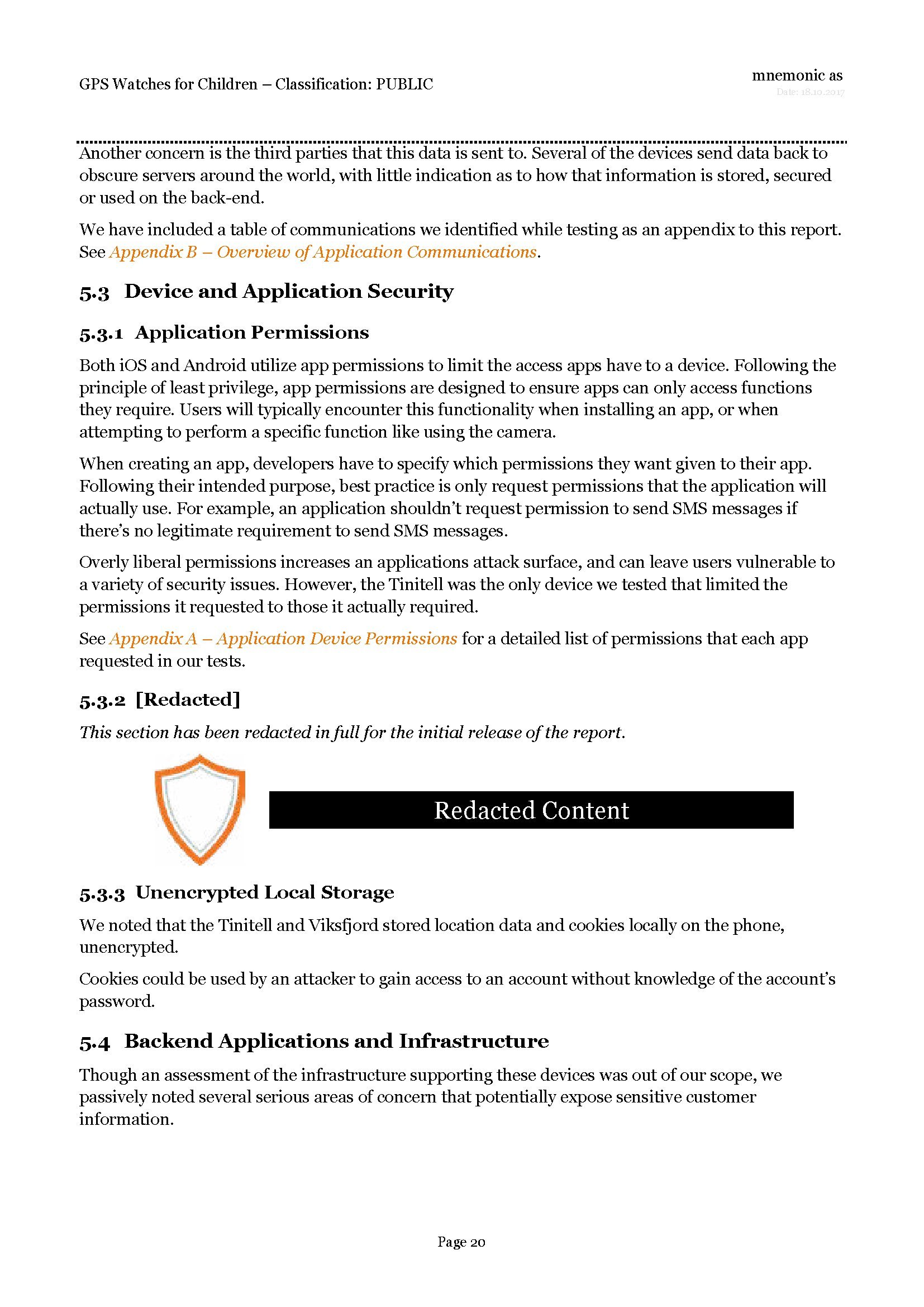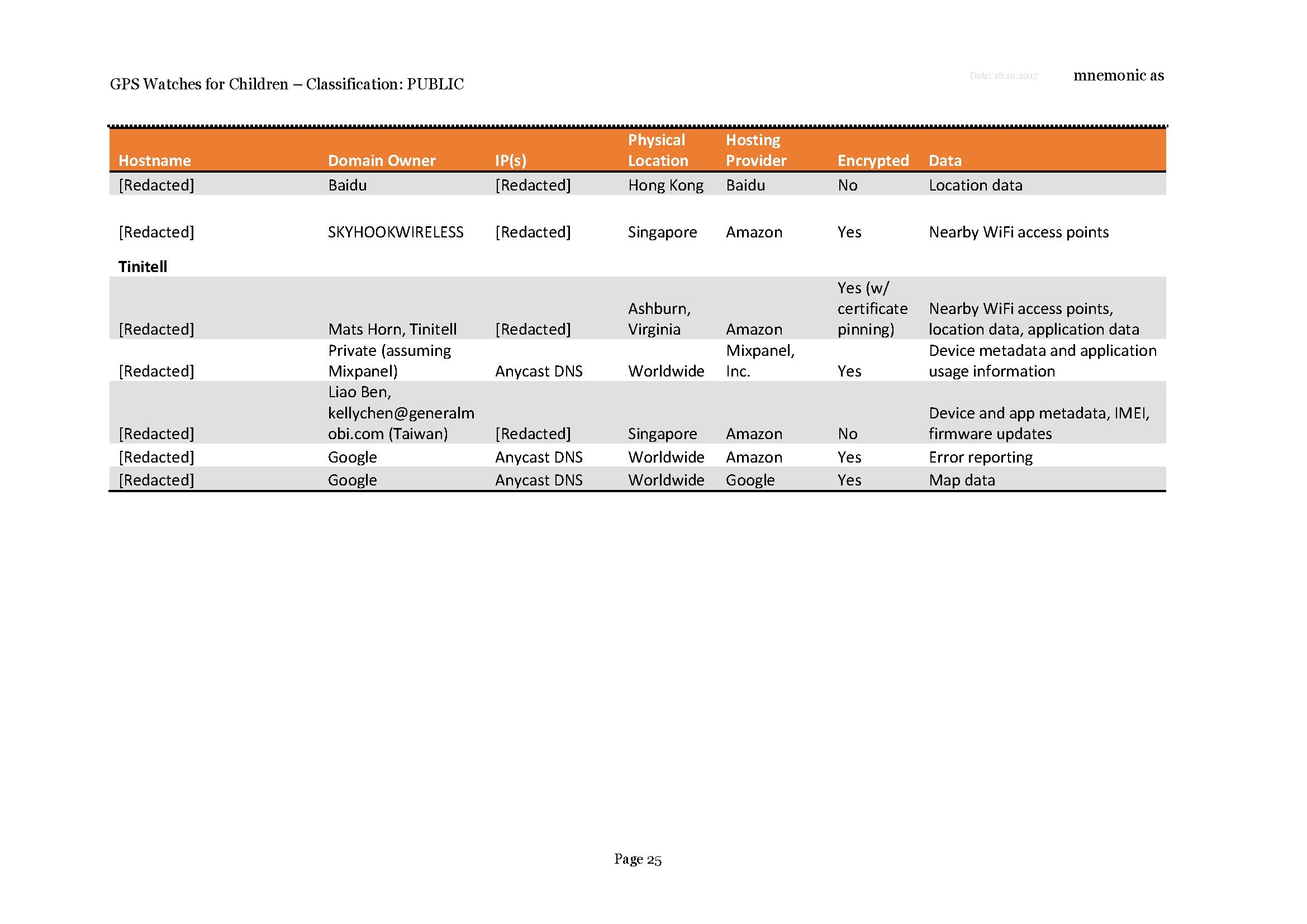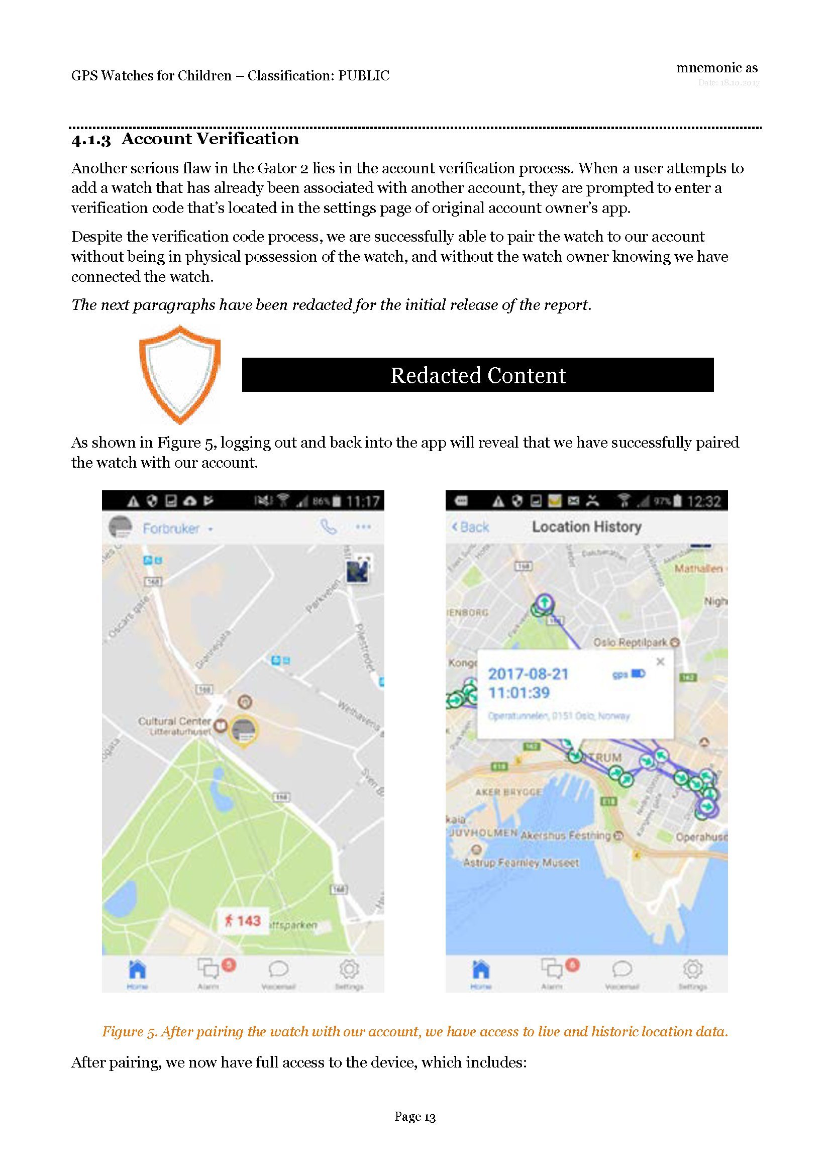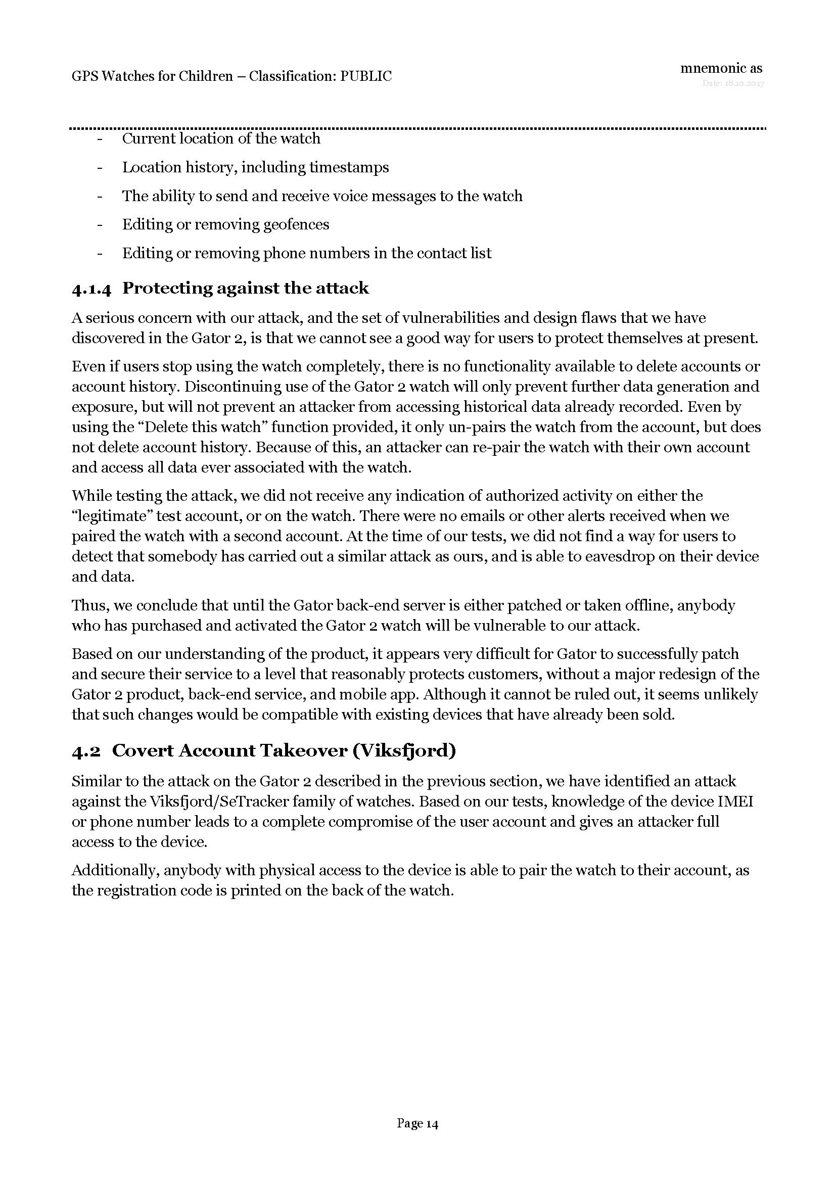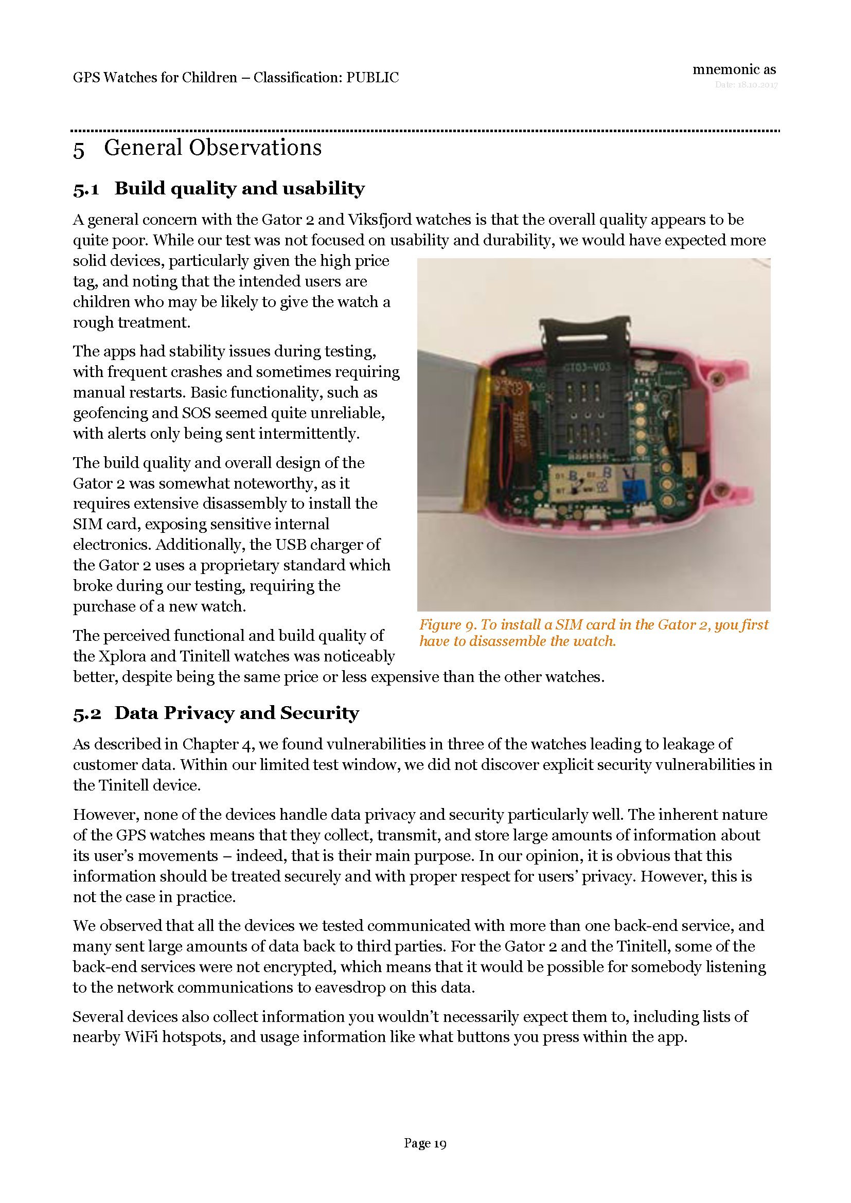 Mnemonic进行的测试发现了三个关键安全漏洞,包括应用和设备。两款儿童智能手表允许潜在攻击者控制应用、访问儿童实时和历史位置,以及其他个人隐私,甚至可以在父母不知道的前提下直接联系儿童。而且,有些设备还将儿童个人数据传输到北美和东亚的服务器,而没有任何加密。还有一款手表可以用作监听装置。