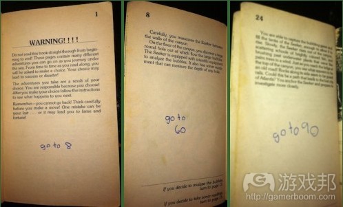 有些“选择你自己的冒险”书有太多结局了。这种书的结局有3到5个,甚至11个都OK。但这么多结局让阅读全书成了一件令人苦恼的事。比如,《Journey Under The Sea》有42个结局。在117页的书中,42个结局意味着有37%的页数都是关于故事结局的。读这本书很让人受挫,因为好像无论你怎么做,都是死路一条。
