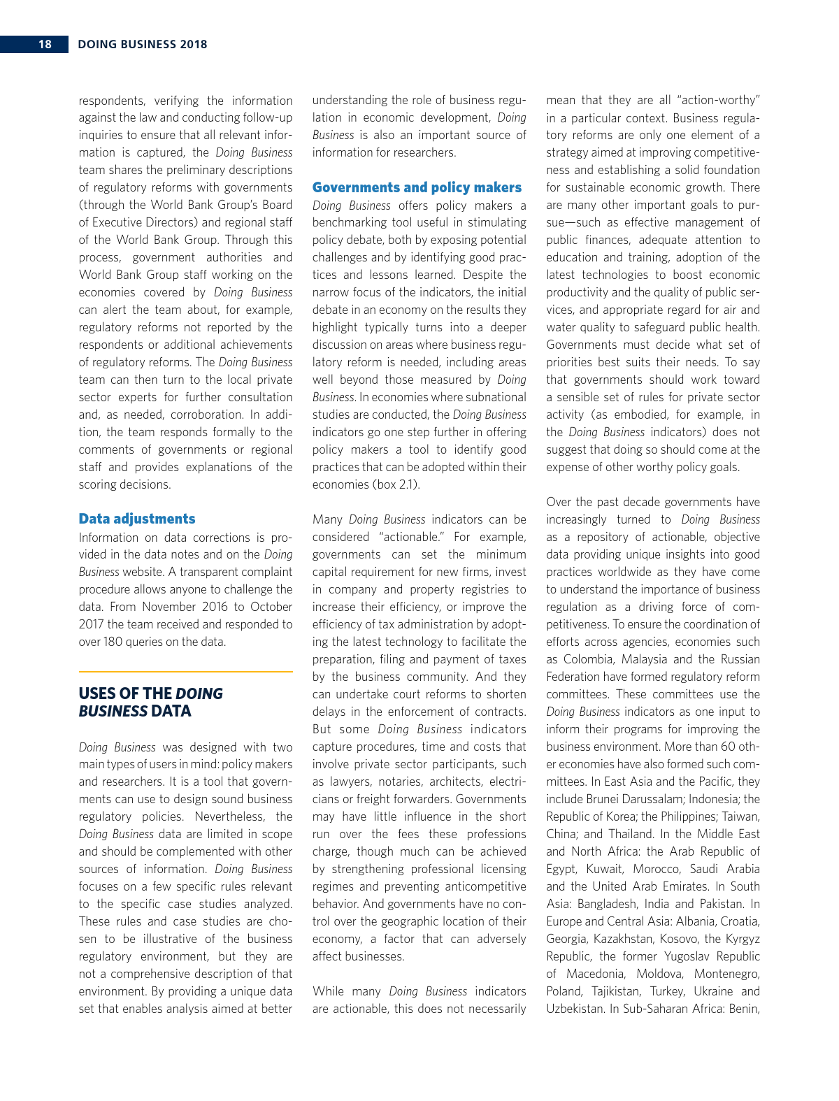 世界银行发展经济学局高级局长尚塔·德瓦拉扬说:“公共政策在赋能中小企业开办、运营和扩大规模方面起着决定性作用。世界各国政府日益寻求从《营商环境报告》获得客观的数据作为行动依据。更重要的是,《营商环境报告》的公开透明意味着,公民可以要求政府对有利于企业、居民和整个社会的改革承担责任。”