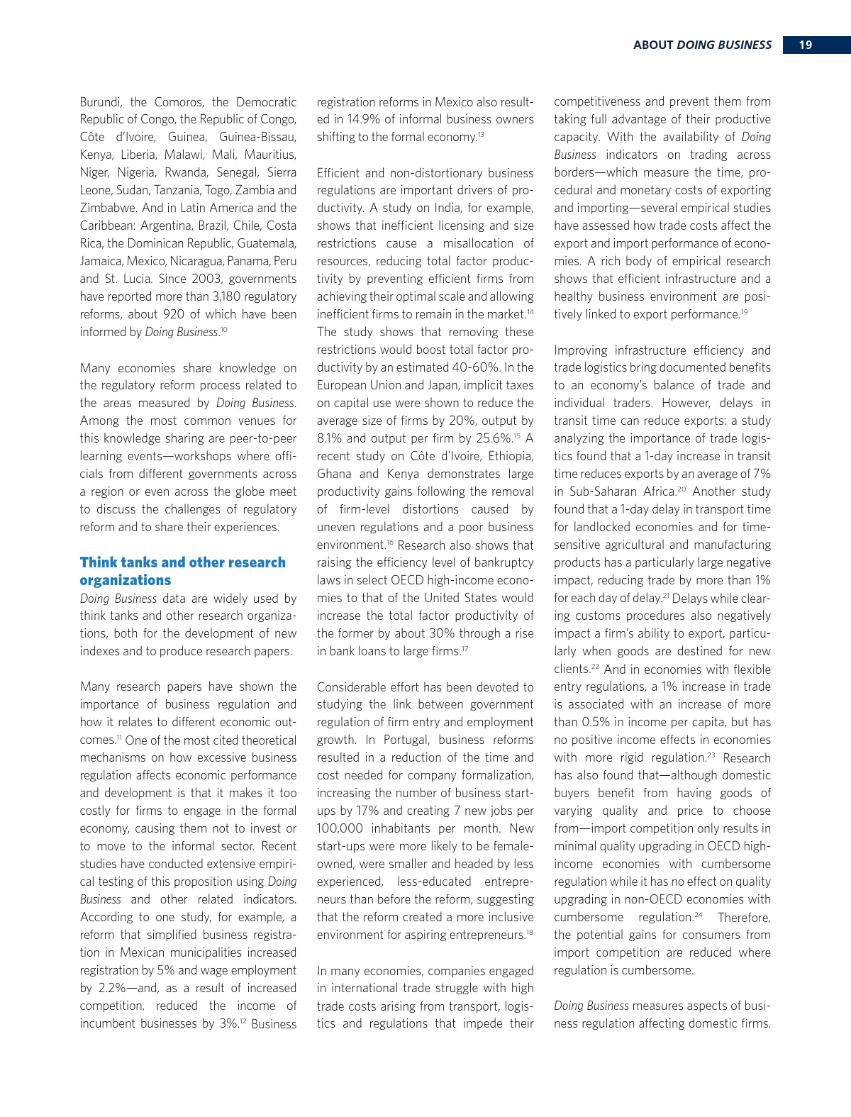 自问世以来,《营商环境报告》记录了目前监测的190个经济体中186个经济体的营商环境改革。在过去15年,卢旺达实施的营商改革数量最多,共计52项改革,其次是今年进入排名前10的格鲁吉亚(47项改革)、哈萨克斯坦和前南斯拉夫的马其顿共和国(各41项改革)。
