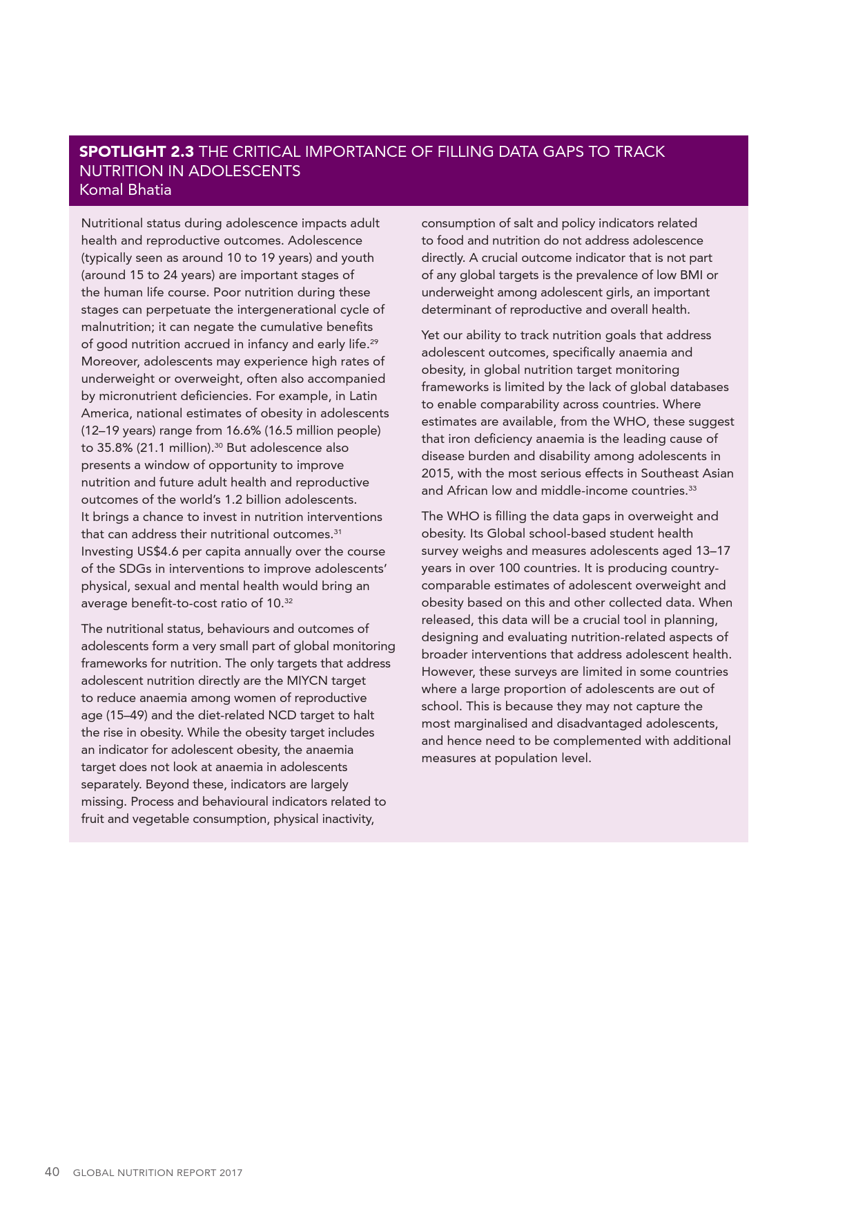 『全球营养报告』指出,差不多整个地球都在遭遇严重的饮食问题,这些问题包括肥胖症、营养过度或者恰恰相反:因缺乏饮食而导致的营养缺乏。饮食问题束缚着人类整体的发展。