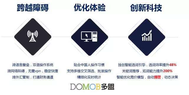 “从去年十月至今,多盟以跨境ASM代投放服务为业务切入点,已经服务了超过100个客户,积累了非常丰富的ASM投放数据和经验”,邓伟继续说,“另外,多盟的技术能力已经得到了全球化巨头媒体的认可,近两年陆续获得了国内首家Facebook Marketing Partner和Instagram Marketing Partner的Ad Technology牌照就是最好的见证。利用巨头媒体生态所开放的API构建增值工具已经成为多盟技术基因的一部分,团队也非常擅长基于成熟的方法论和领先的技术服务快速建立并不断扩大自己的竞争优势。”