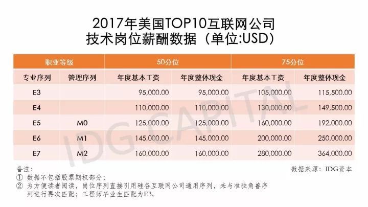 回流之前必将有准备期,IDG资本首次权威公布硅谷一线互联网公司的薪资情况,供读者参考。