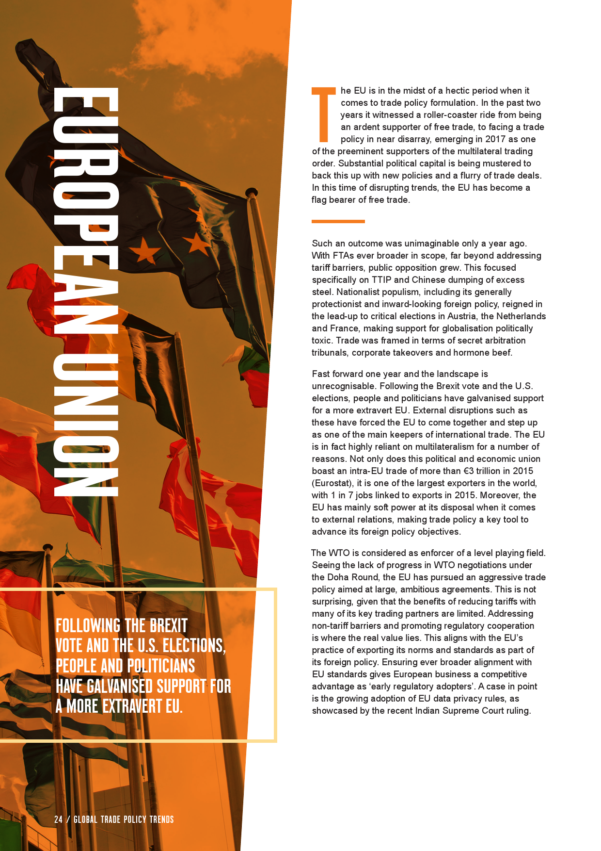 当前,愈来愈多的人群意识到自由贸易共识已经开始瓦解,全球化也随之风光不再。全球政治风险和政策风险日趋凸显,并将影响众多的发达国家和发展中国家。