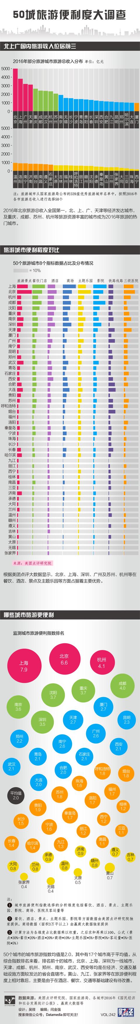 旅游时,景点、住宿、餐饮、交通等往往成为游客选择目的地时考虑的主要因素。《财经》数媒与美团点评研究院共同建立了包括餐饮、酒店、影院等要素在内的城市便利指数模型,对全国主要旅游城市的旅游便利情况进行了分析。