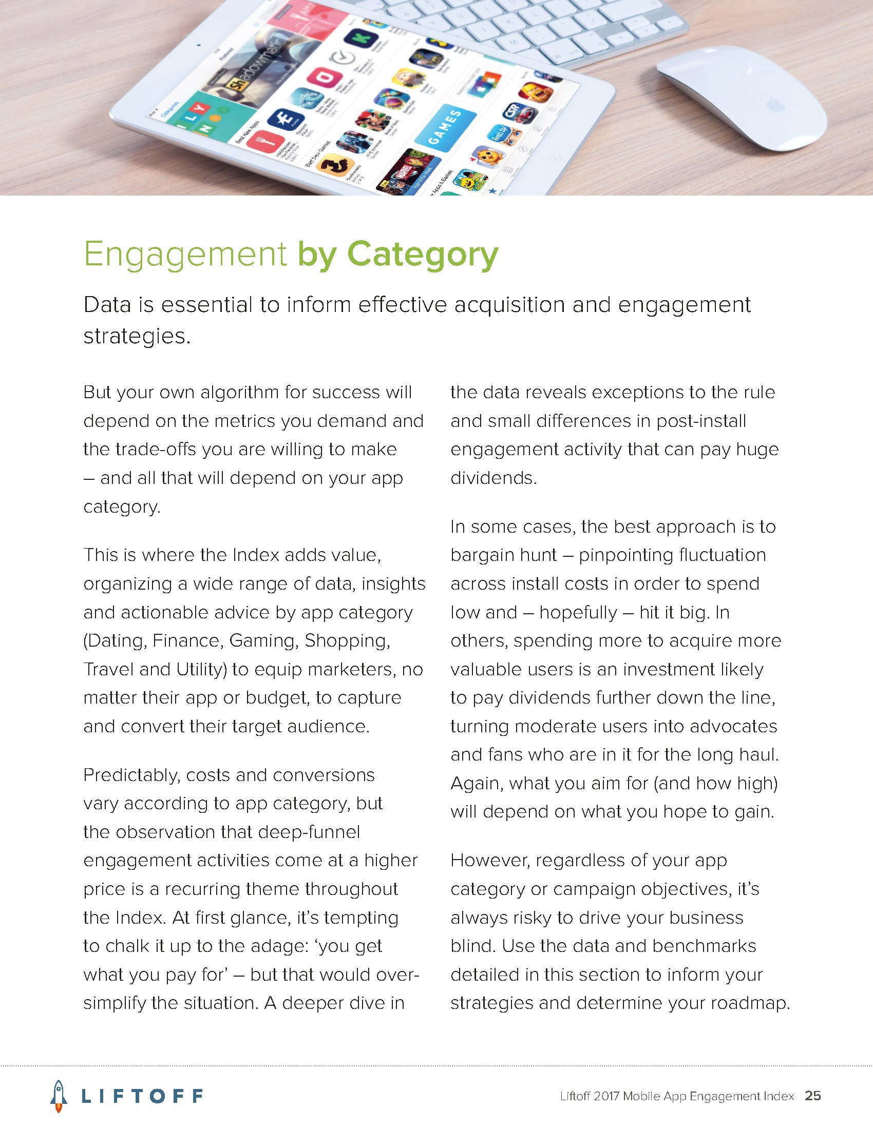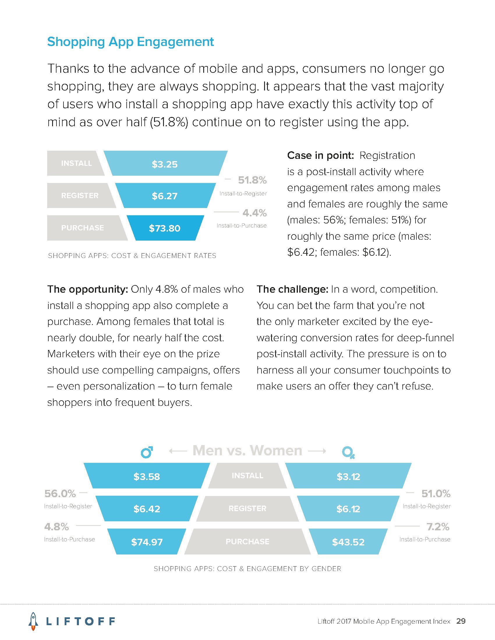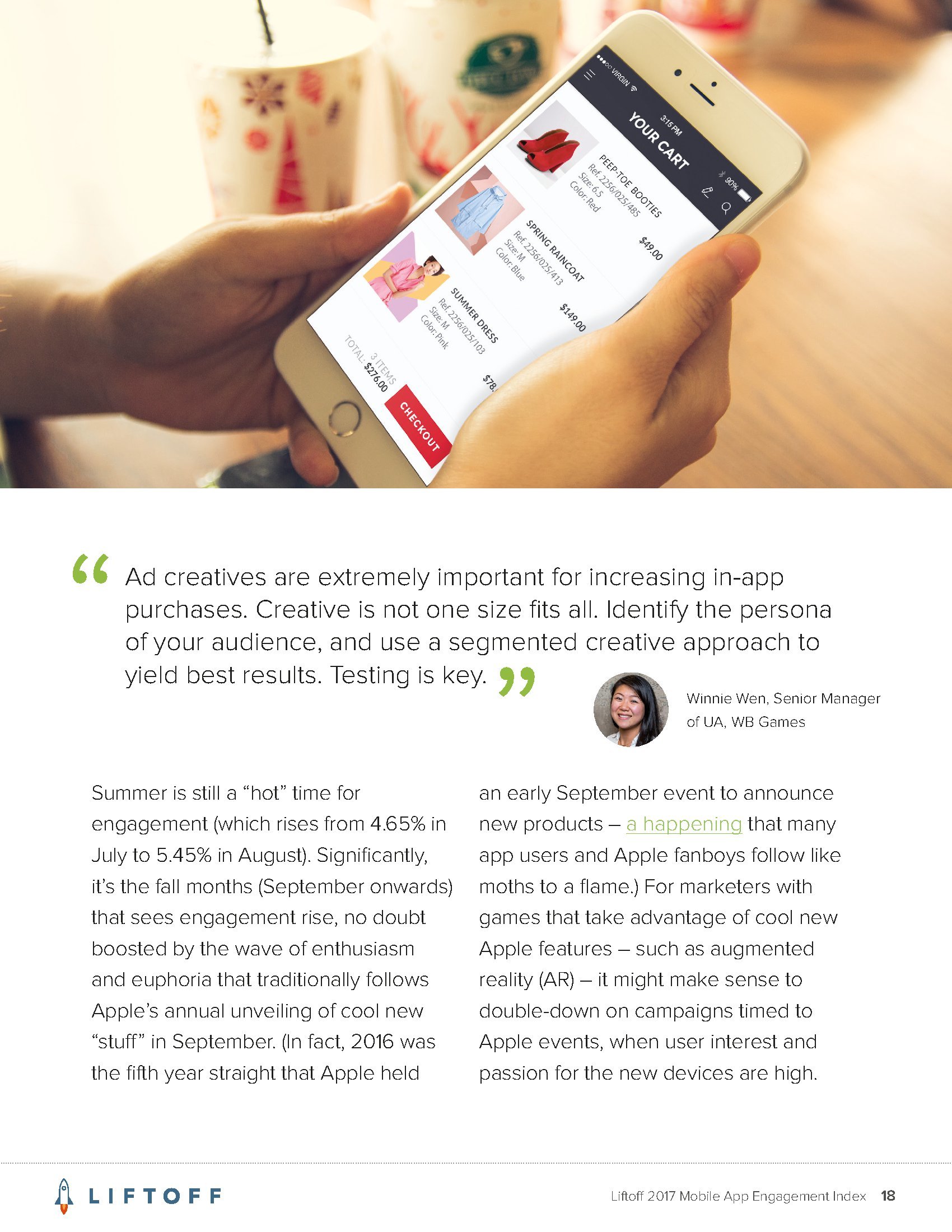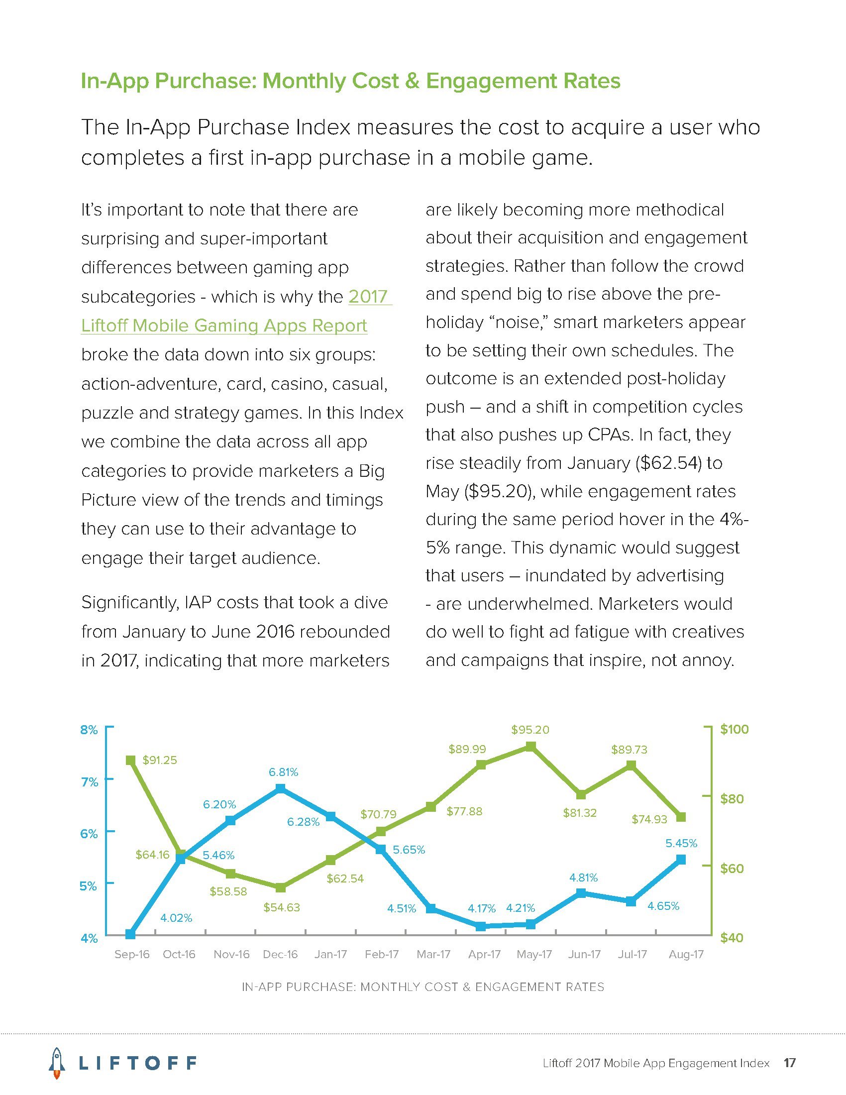 Liftoff分析了2016年9月1日至2017年8月30日3000万个应用安装量的1200亿广告展现量,13亿广告点击量和4170万个事件。这些应用包括约会、金融、游戏、购物、旅行和实用工具六大类。