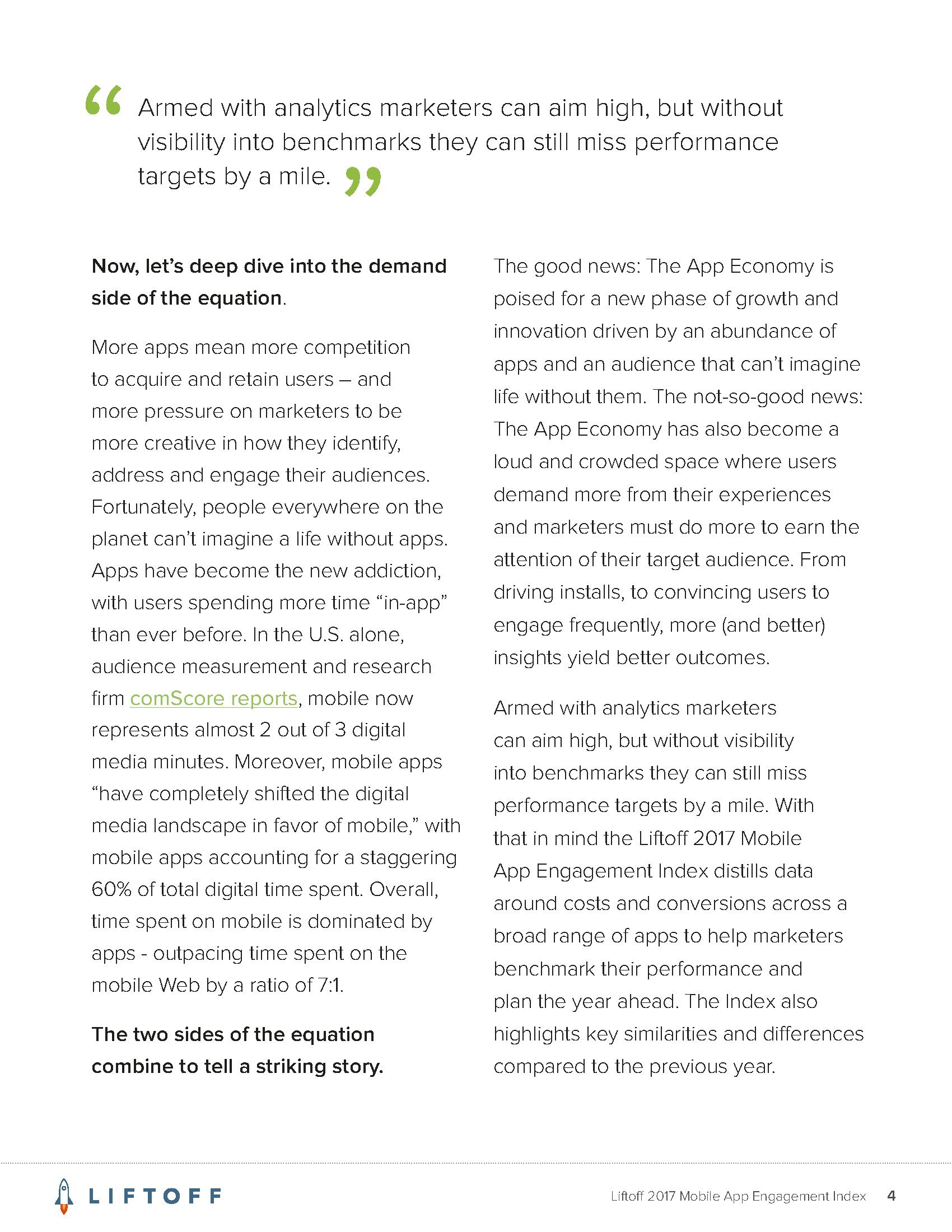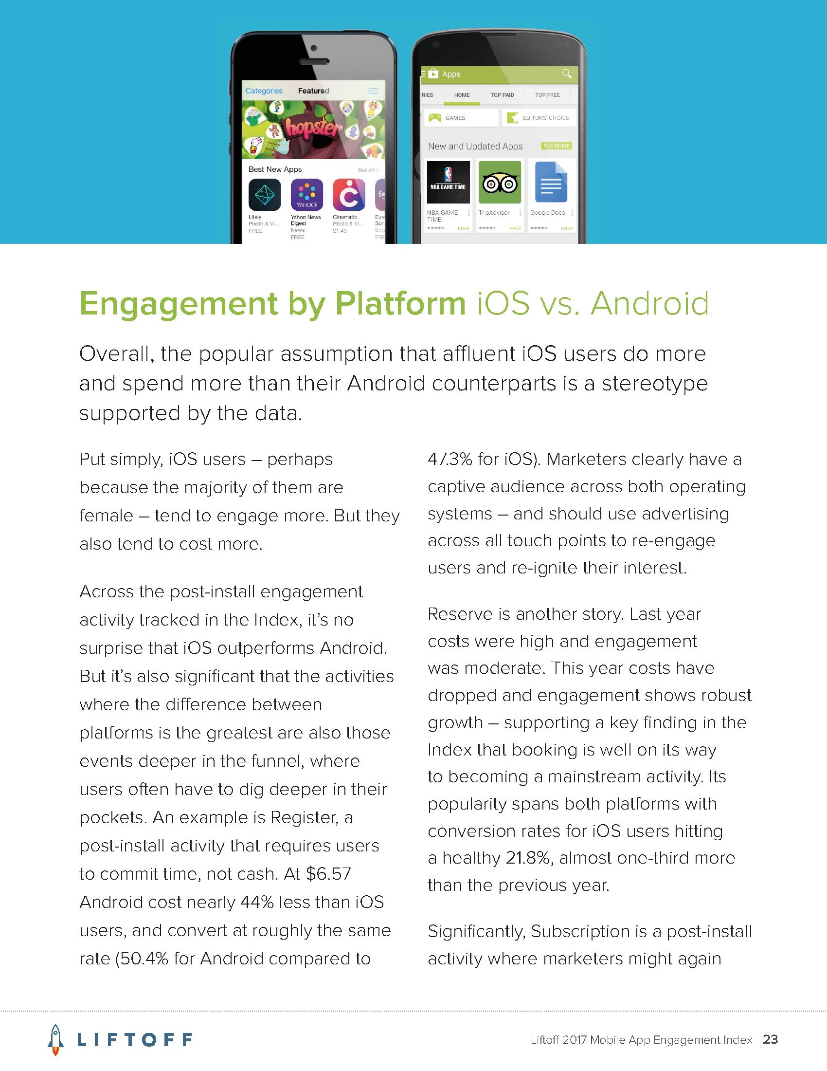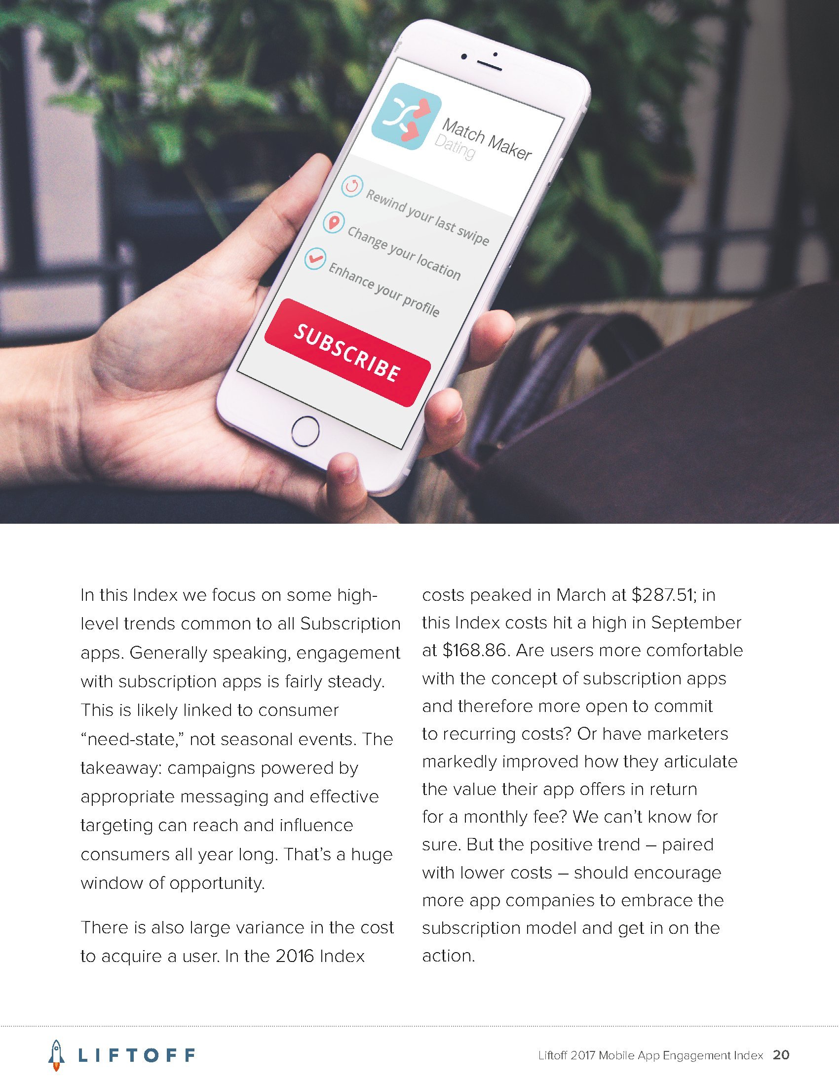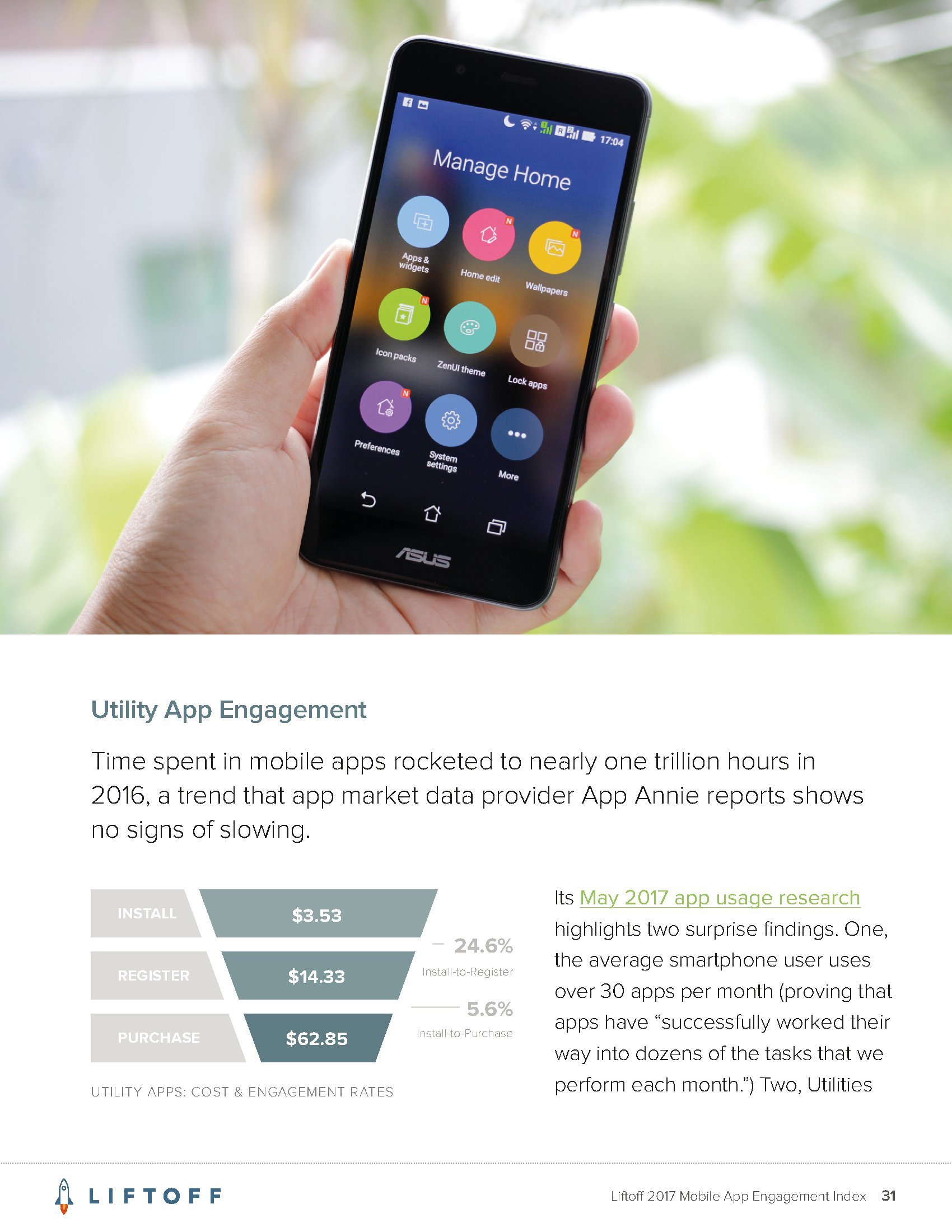 Liftoff分析了2016年9月1日至2017年8月30日3000万个应用安装量的1200亿广告展现量,13亿广告点击量和4170万个事件。这些应用包括约会、金融、游戏、购物、旅行和实用工具六大类。