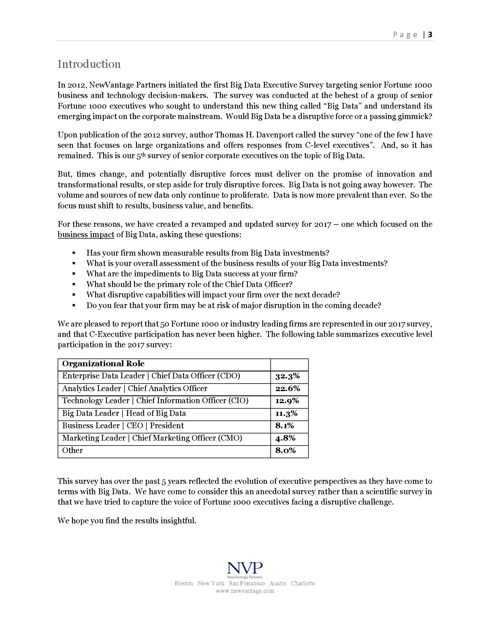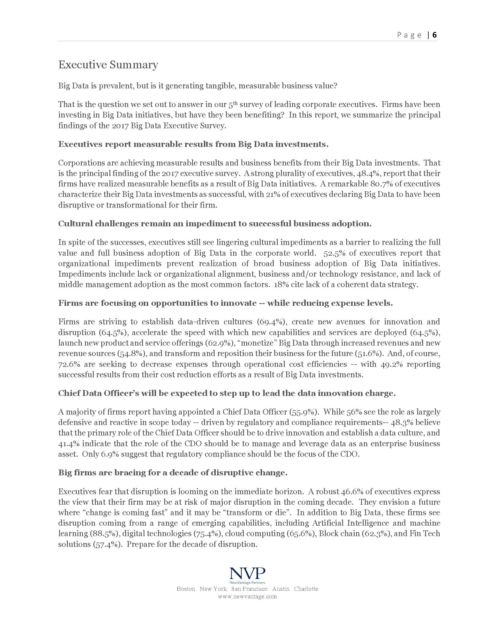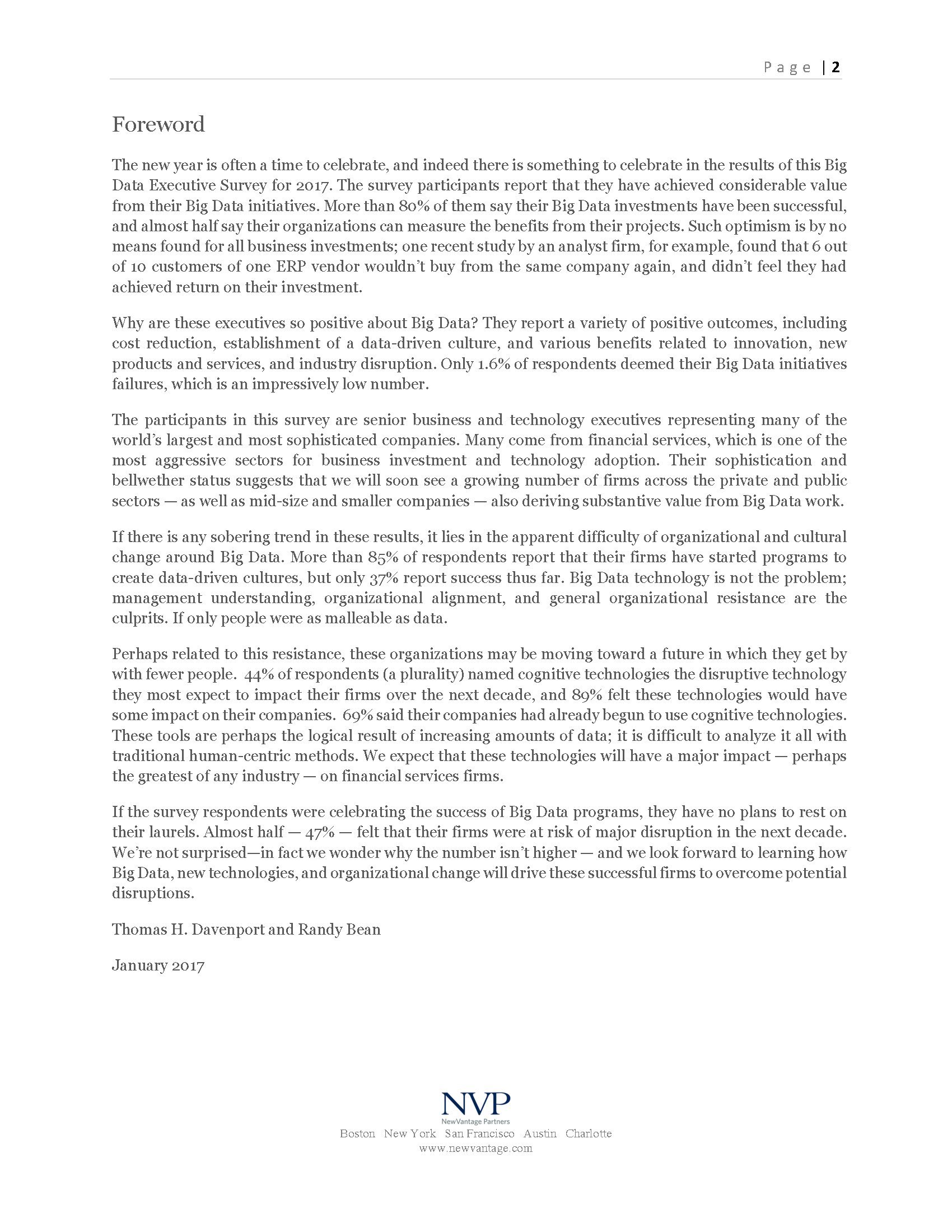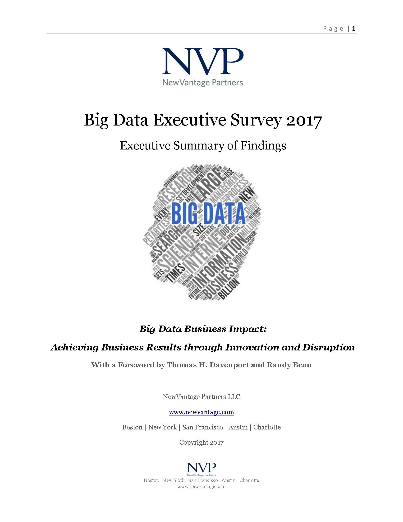 NewVantage Partners发布了“2017年大数据高管调查报告”。大数据很流行,但它是否产生了有形的、可衡量的商业价值?这一点仍然值得探讨。