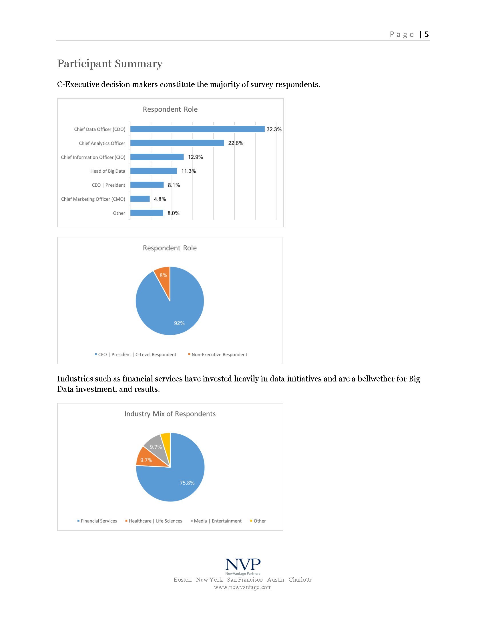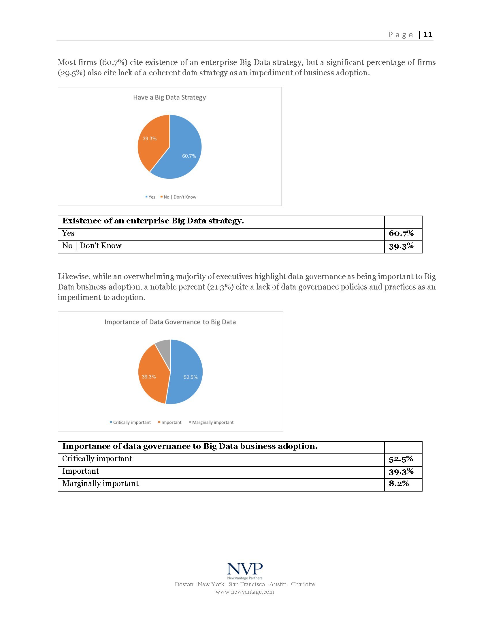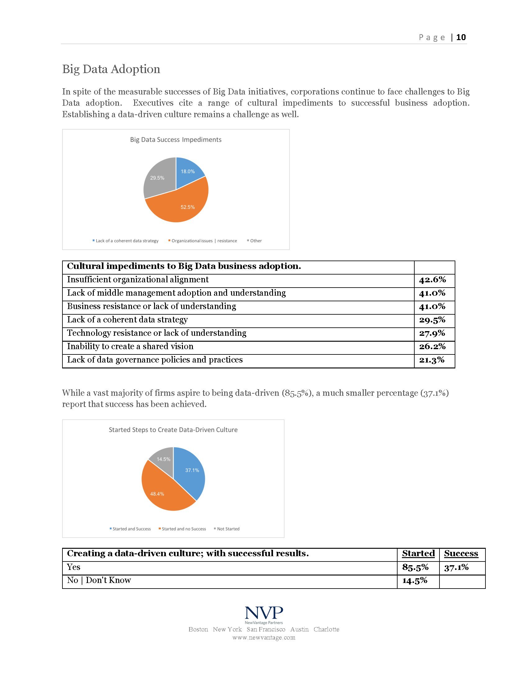 企业正在从大数据投资中获得可测量结果和业务收益。48.4%的高管表示公司已经通过大数据实现了可测量的收益。80.7%的高管认为公司的大数据投资是成功的,21%的高管表示大数据对公司具有颠覆性的意义。
