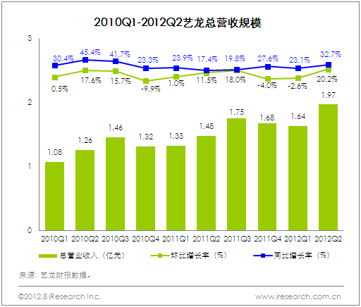 2012Q2艺龙总营收1.97亿,同比增长32.7%