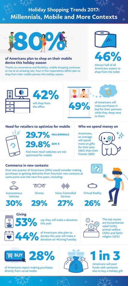 在大洋彼岸的美国,移动支付PayPal先通过一份最新消费习惯报告数据证实了这点:大约有80%的美国消费者表示,但他们用手机网购的时候,根本不会考虑自己所处的位置,而是真正的随时随地买买买。其中更有46%的消费者承认,他们有在厕所中手机网购的经历,比2016年的24%多了近一倍。