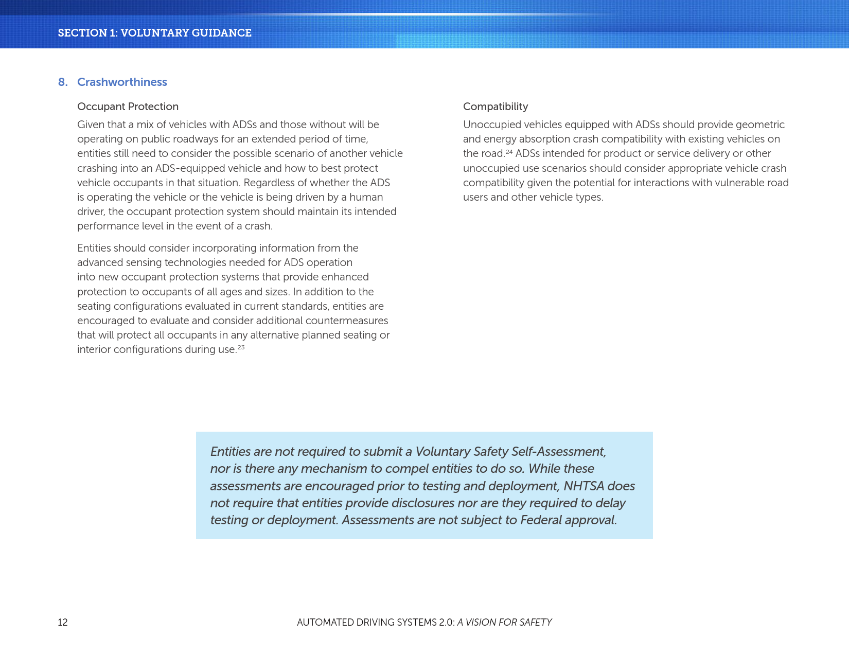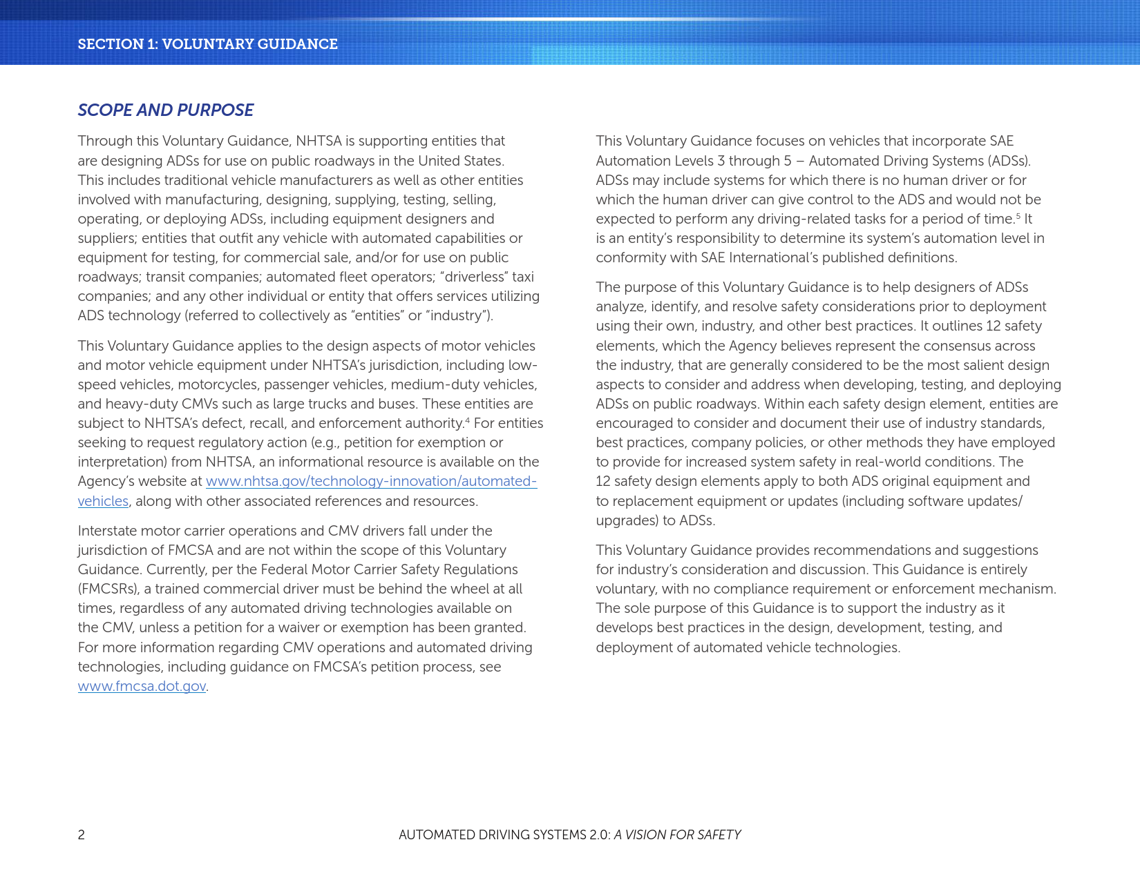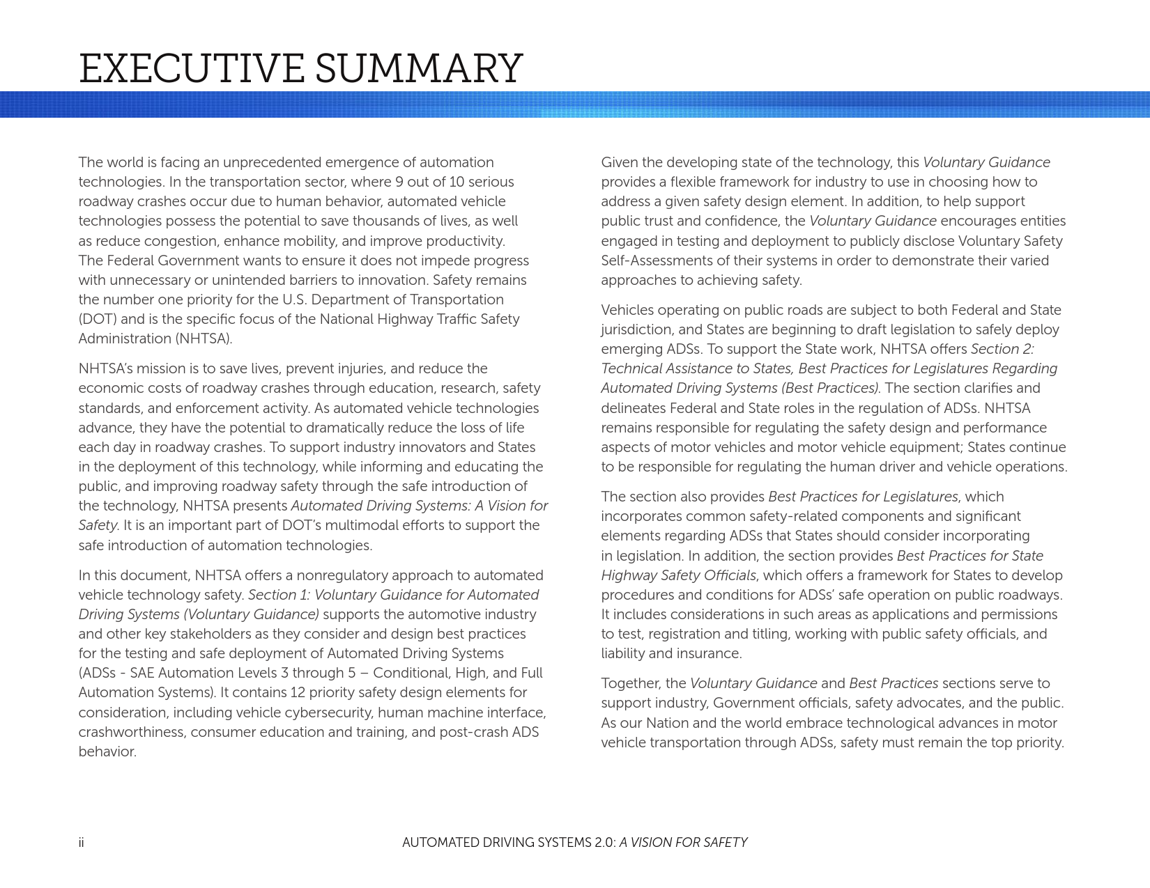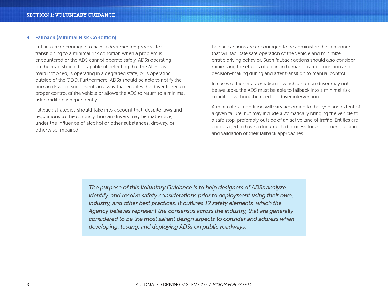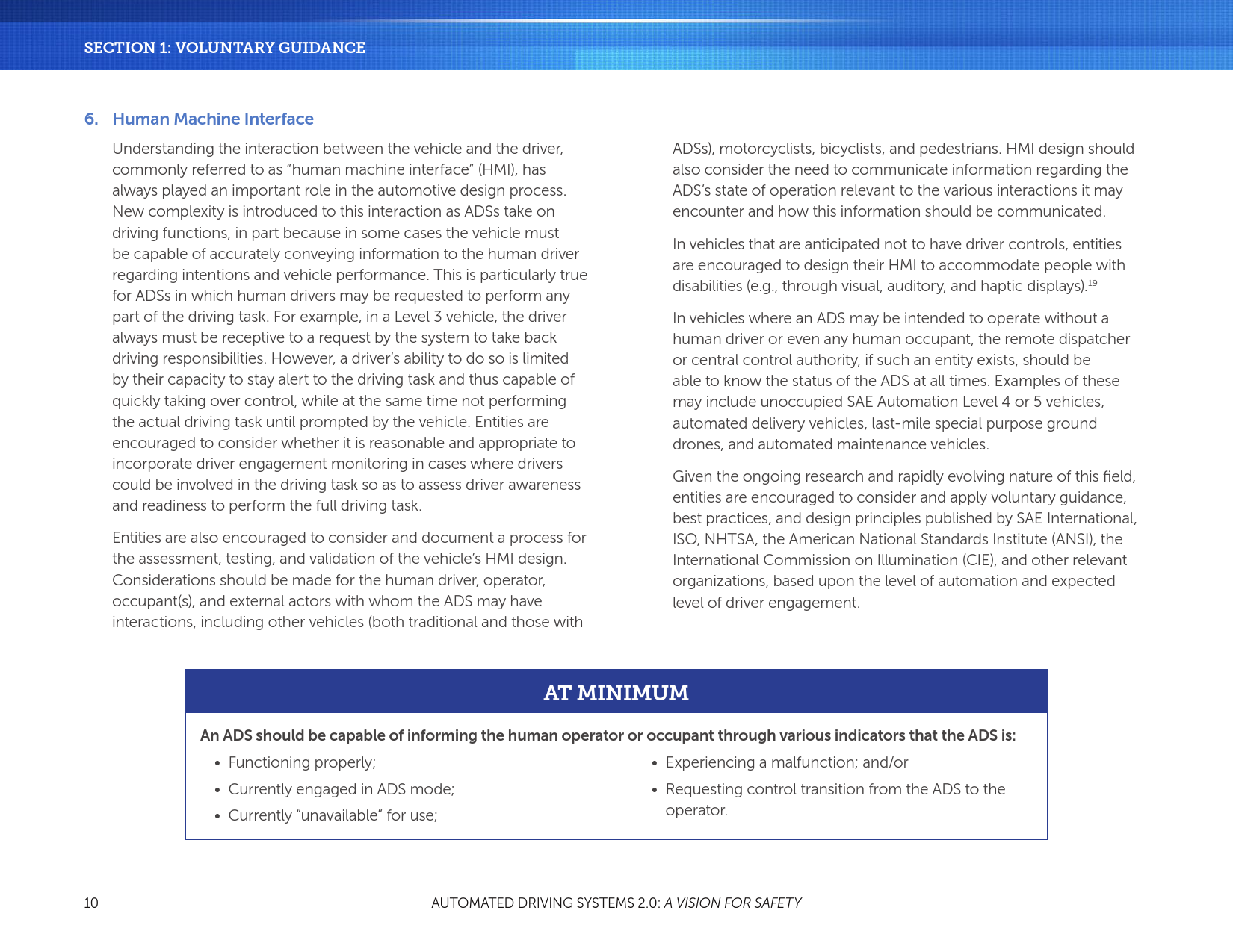 自愿指导和最佳实践两部分内容共同为行业、政府官员、安全倡导者和公众服务。为了通过ADSs使我们的国家和世界拥抱汽车运输技术的进步,必须优先考虑安全。