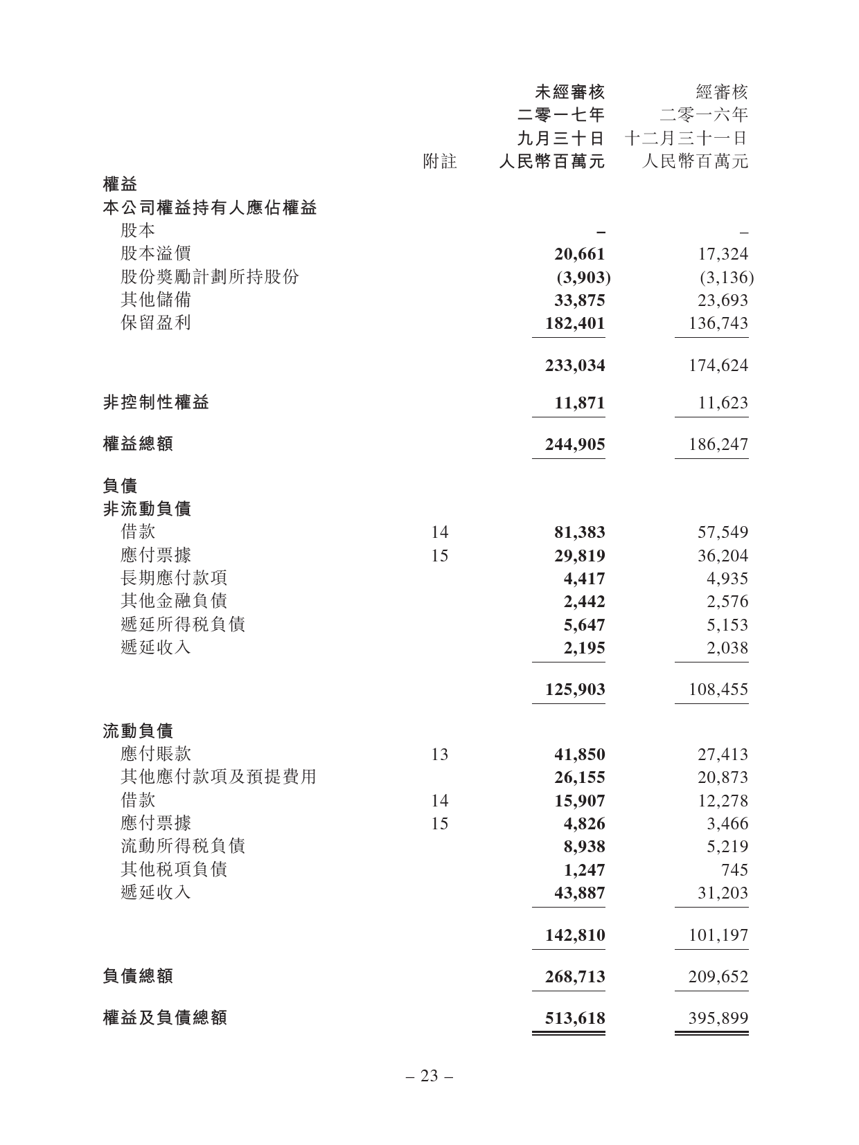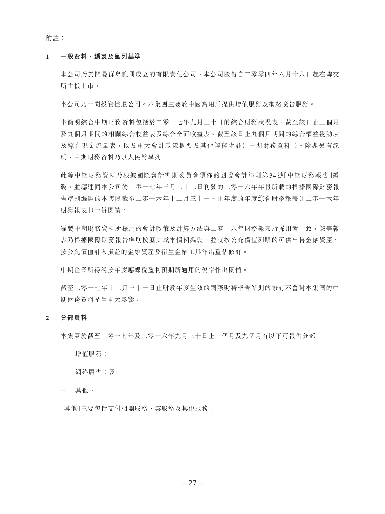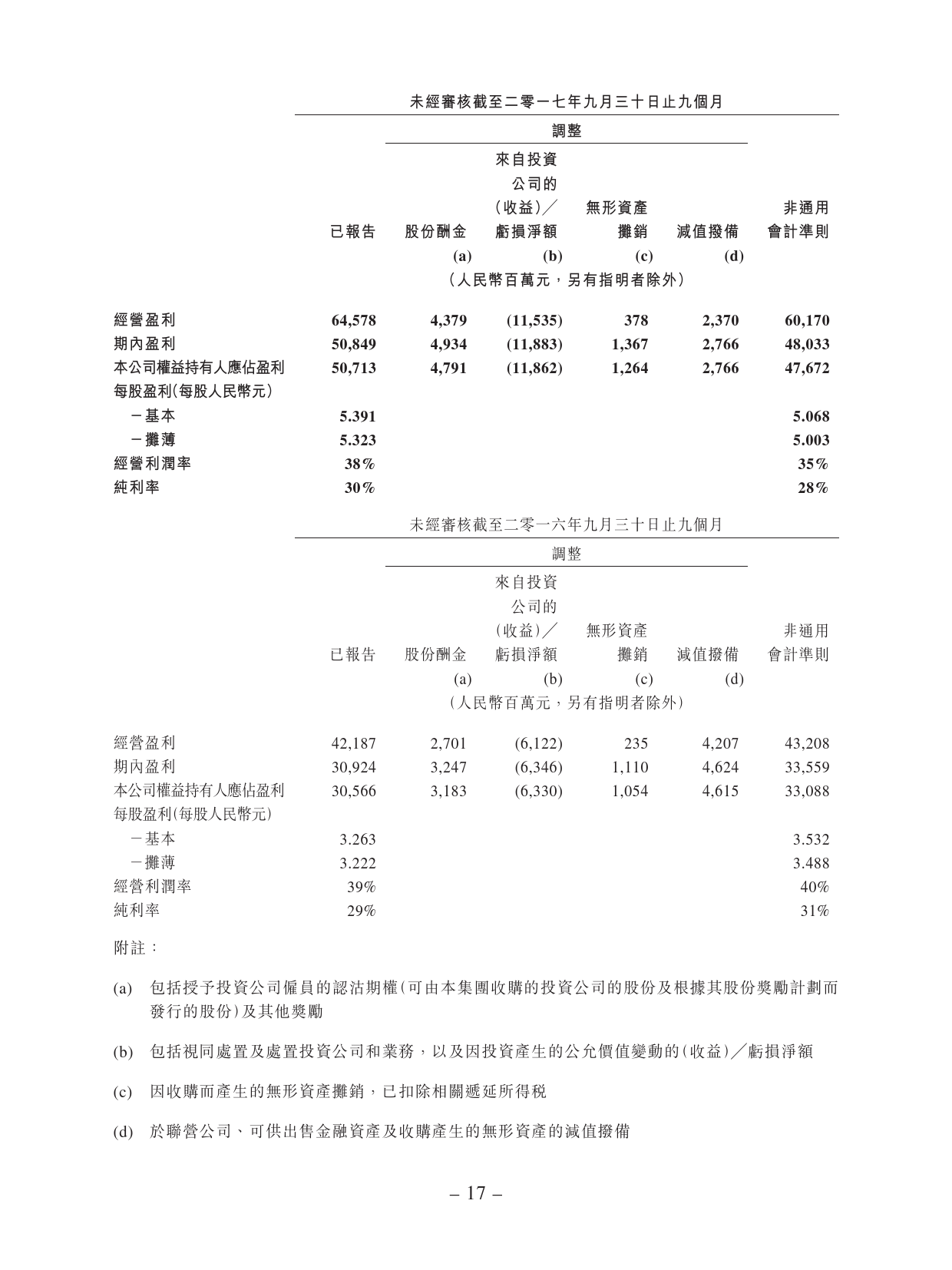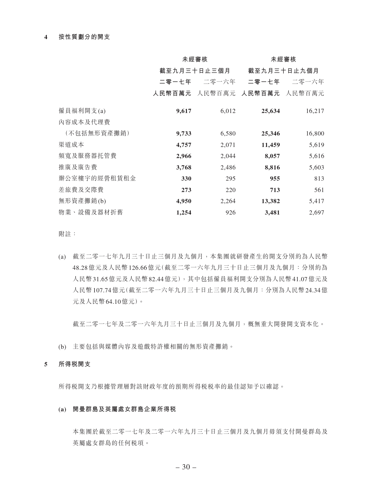 其他业务2017年第三季的收入同比增长143%至人民币120.44亿元。该项增长主要反映我们的支付相关服务及云服务收入的增长。