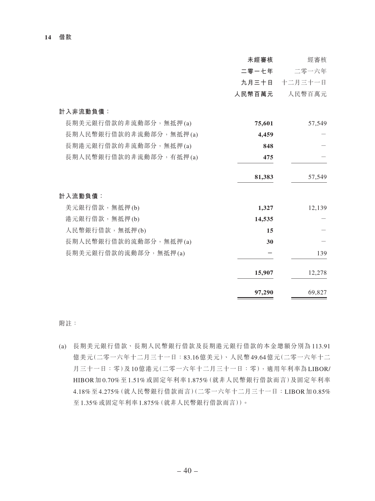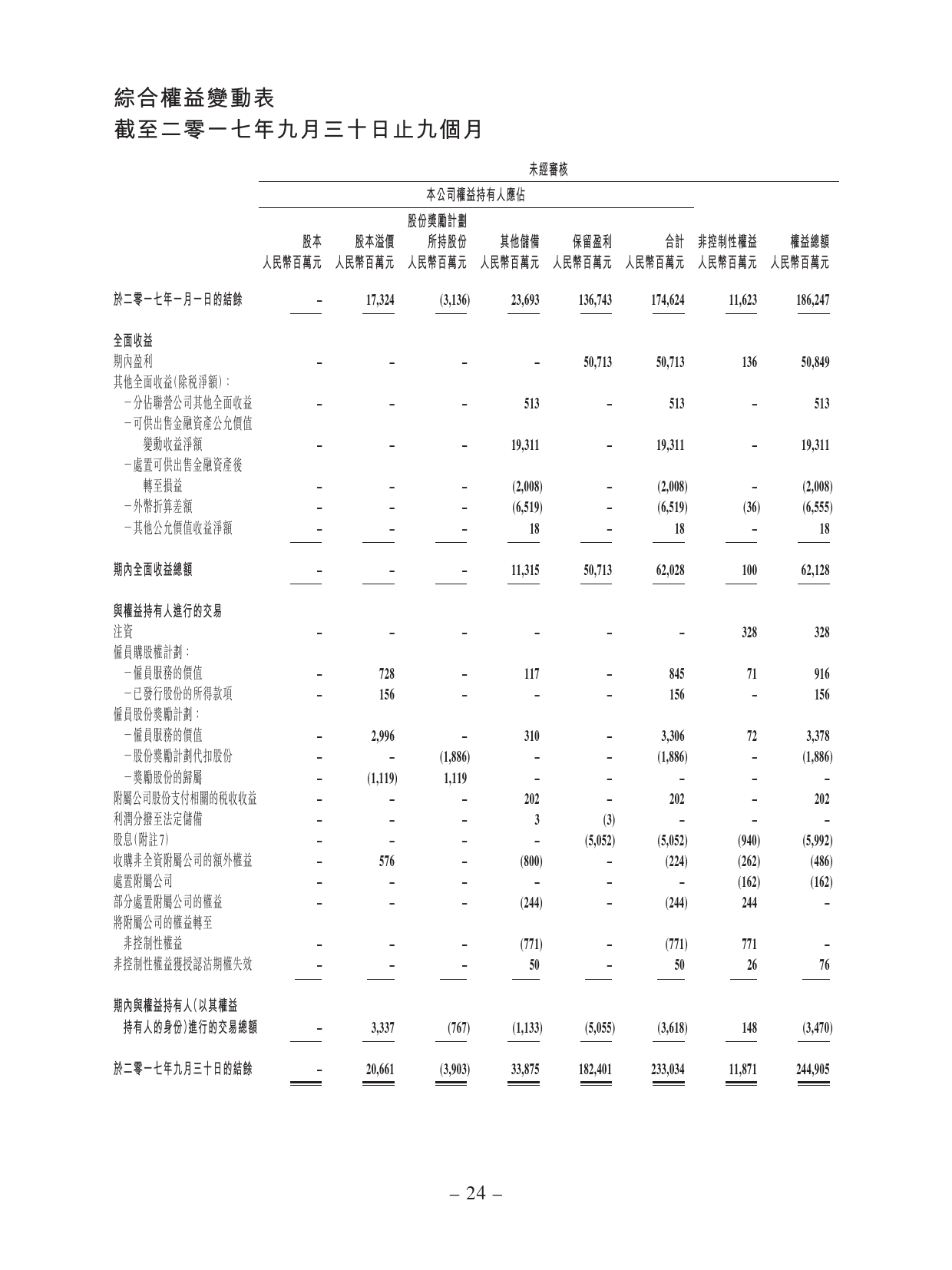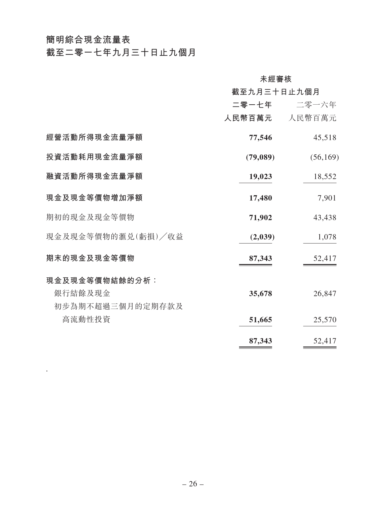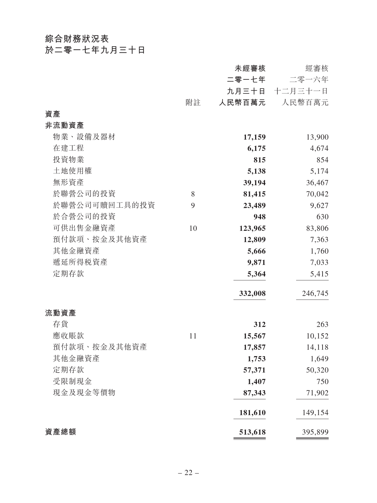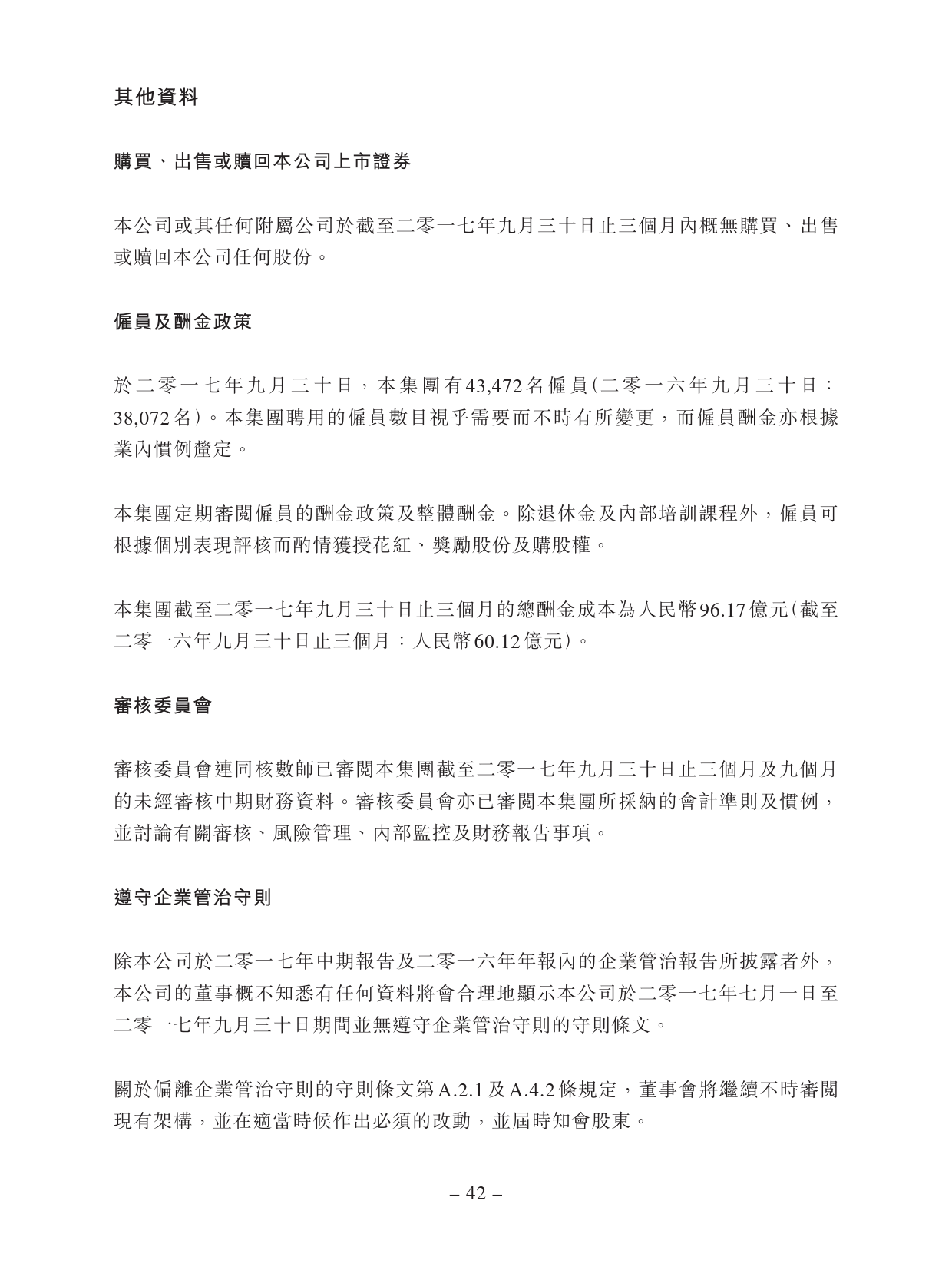 于2017年9月30日,本公司的现金净额为人民币188.62亿元。于2017年9月30日,我们于上市投资公司权益(包括联营公司以及可供出售金融资产)的公允价值合共为人民币1,711亿元。