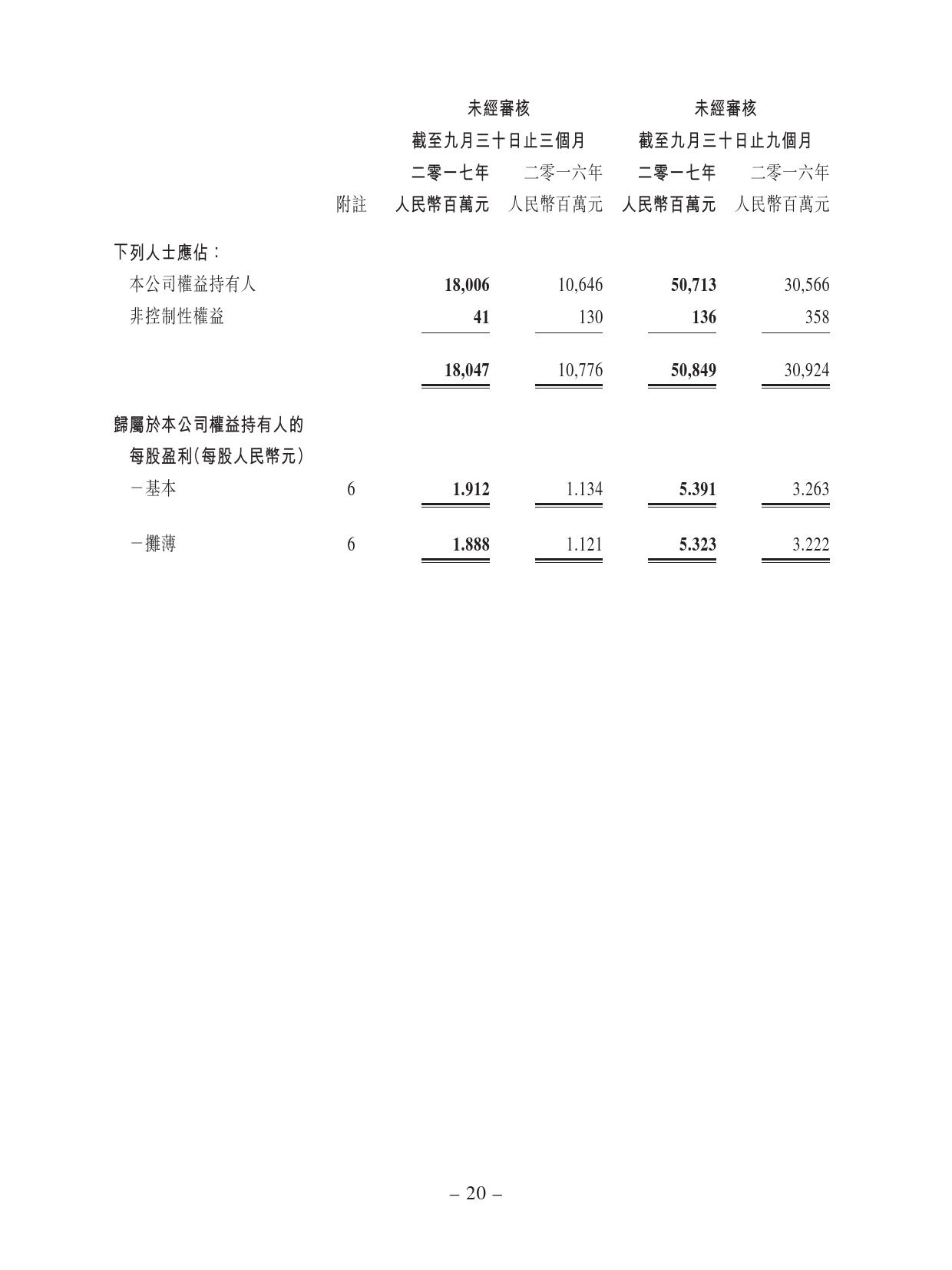 本公司权益持有人应占盈利为人民币170.70亿元(25.72亿美元),比去年同期增长45%。