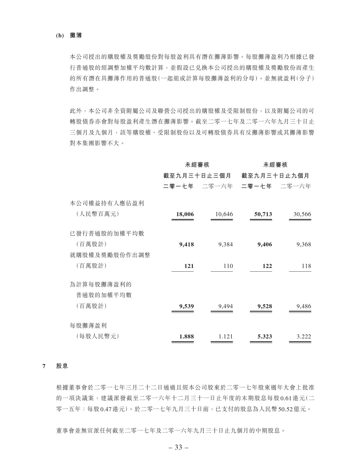 经营盈利为人民币216.14亿元(32.57亿美元),比去年同期增长44%;经营利润率由去年同期的37%下降至33%。