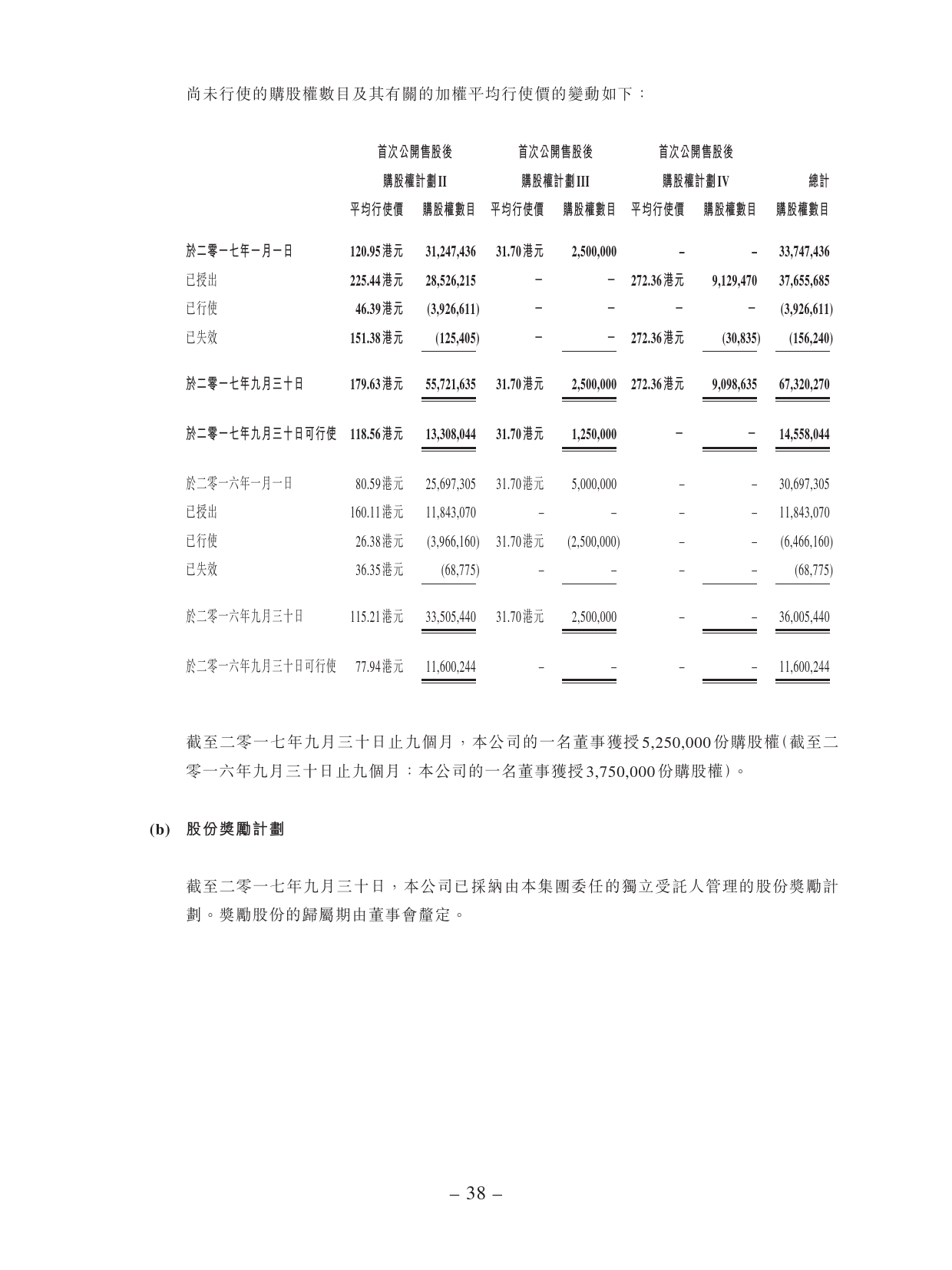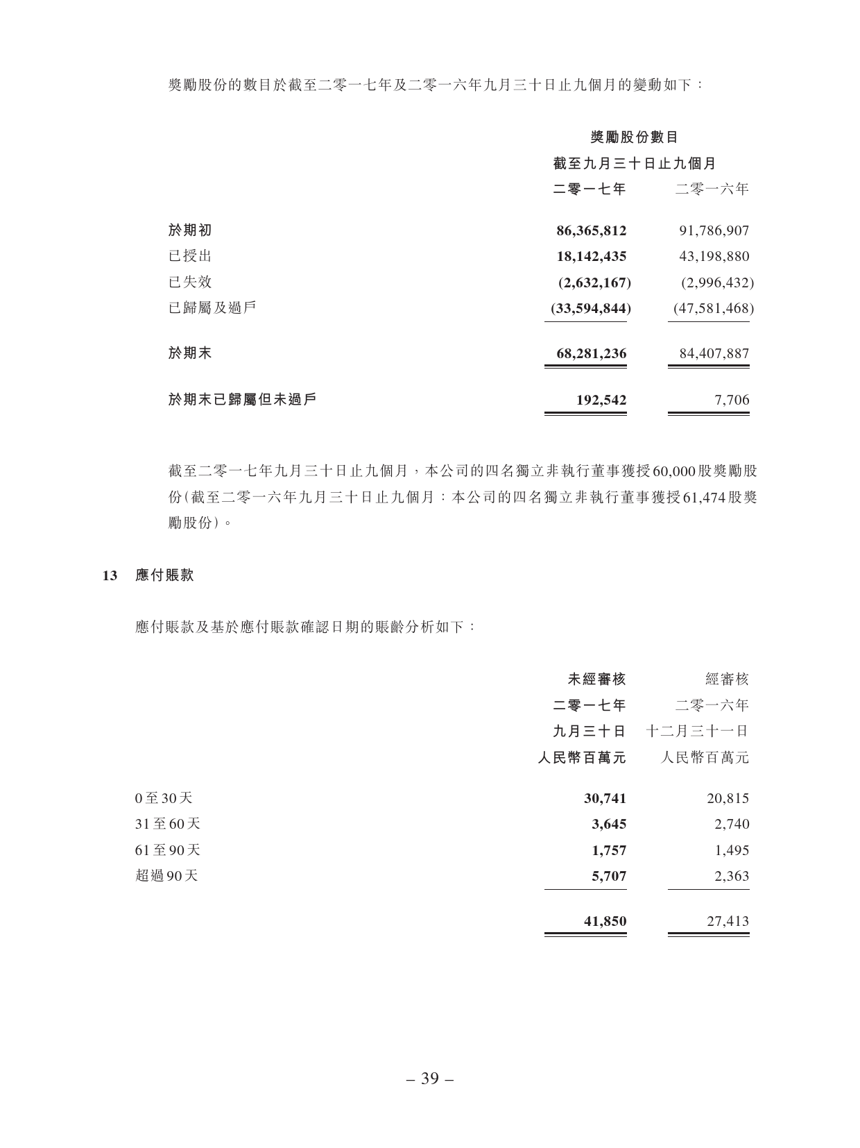 本季度股份酬金开支为人民币16.32亿元,较去年同期上升44%。