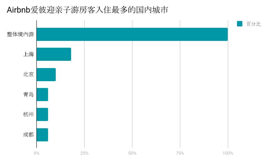 在国内游方面,上海和北京成为中国亲子游家庭的首选,青岛和杭州也吸引了中国家庭前往,且前往青岛入住 Airbnb 的家庭房客占总房客人数的比例达到了 17%,高于其他国内目的地。